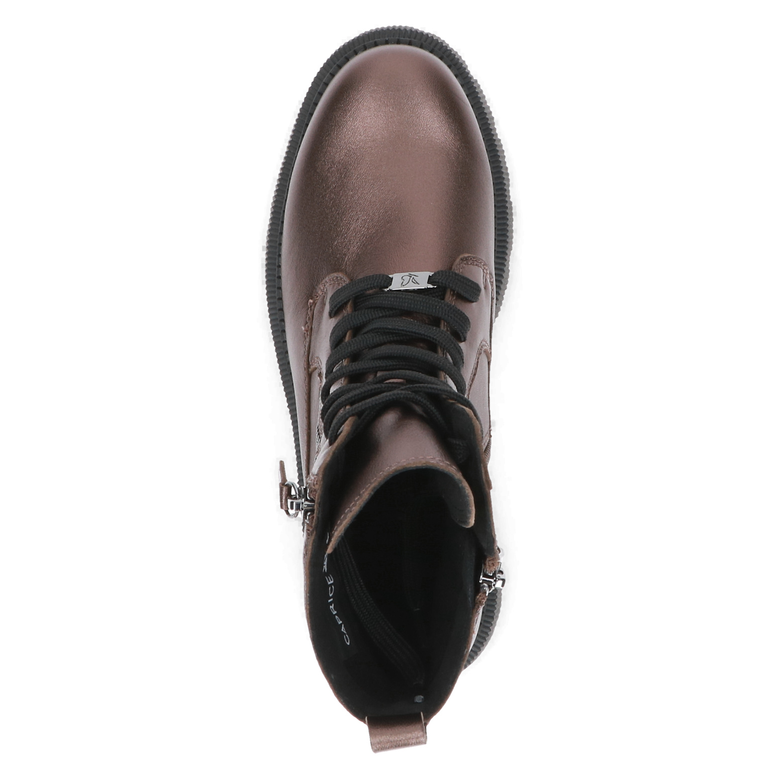 Dámská kotníková obuv na platformě značky Caprice. Hnědý metalový vzor vypadá elegantně. Z boku obuvi zip pro snadnější obouvání. Šněrováním lze obuv upravit dle Vašich požadavků. Lehce vyteplené textilní podšívkou.