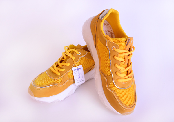 Dámské žluté tenisky mají pohodlně profilovanou svrchní část z přírodní kůže (useň). Podešev je vyrobena z kvalitního syntetického materiálu, stélka je textilní. Tato obuv je vhodná pro každodenní nošení.