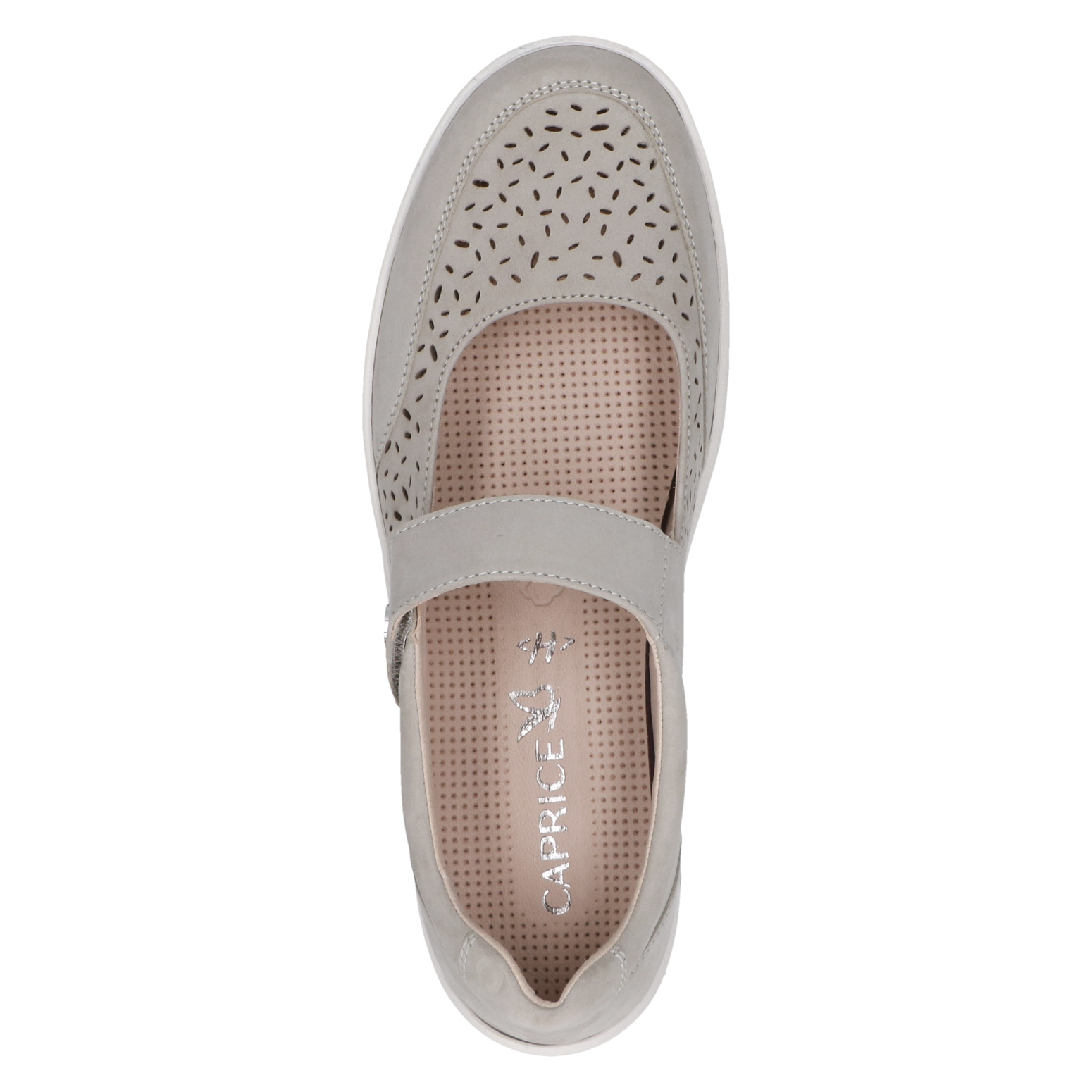 Dámské baleríny značky Caprice se zapínáním na suchý zip. Svrchním materiálem je kůže. Vnitřní stélka je kožená, vyjímatelná. Podešev je vyrobena z kvalitního syntetického materiálu.