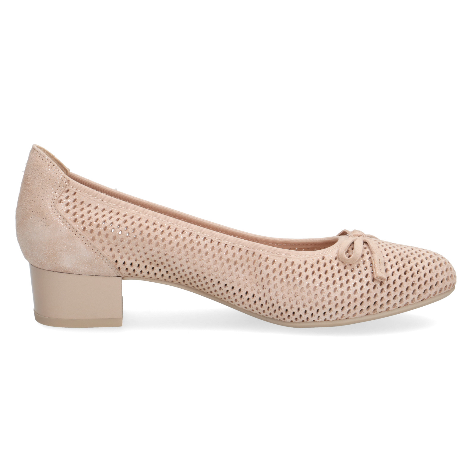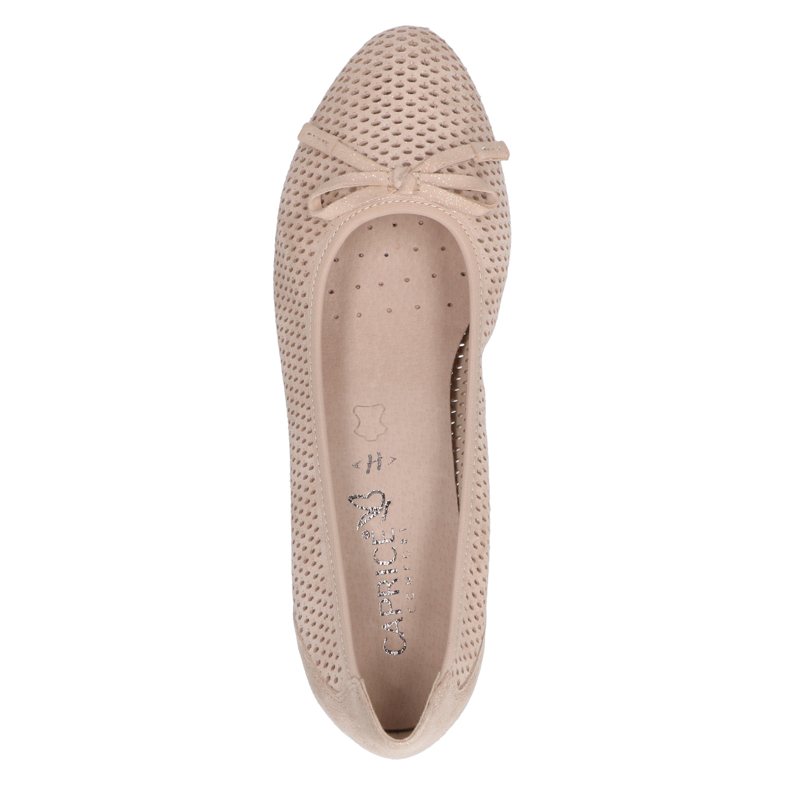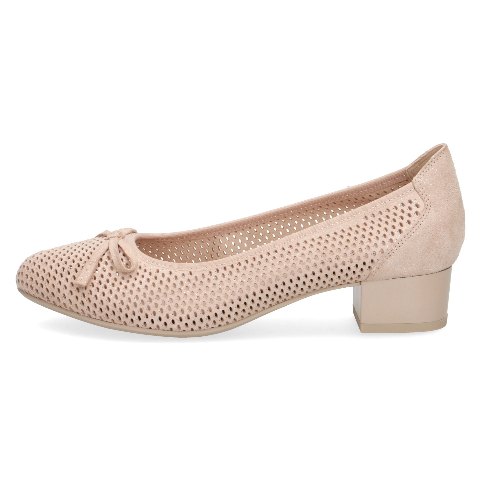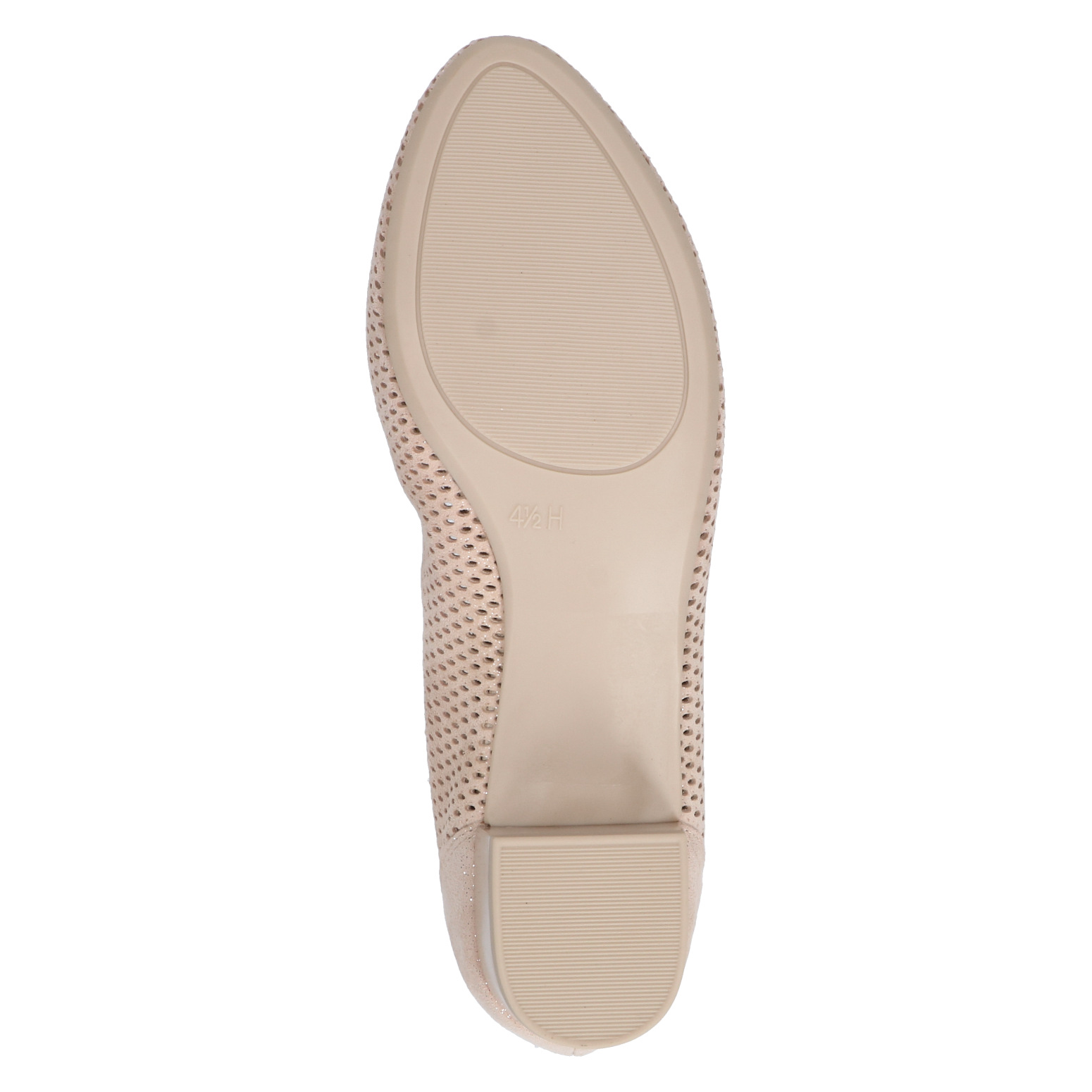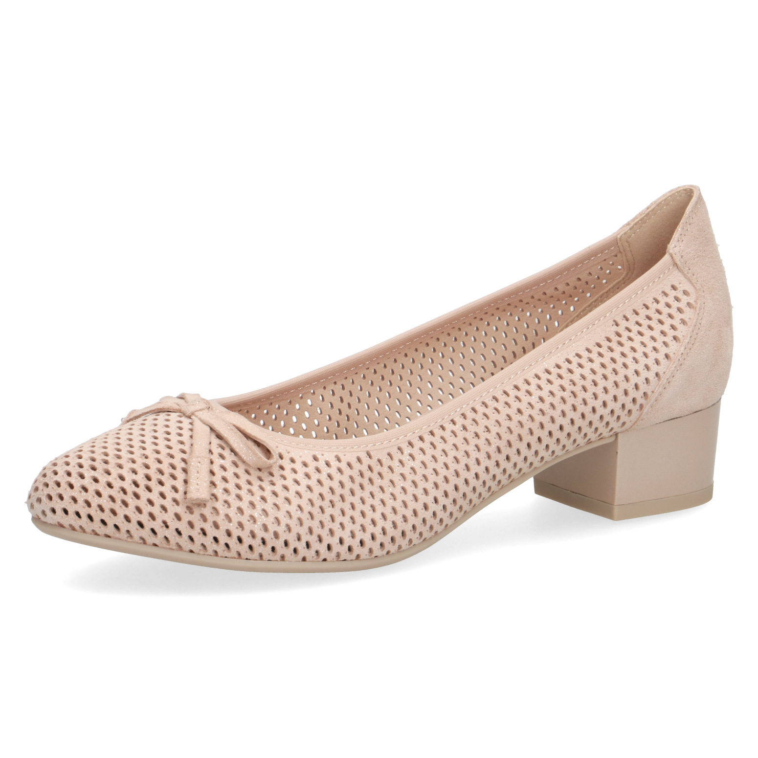 Dámské perforované béžové lodičky značky Caprice v šířce H (sedí i na širší chodidlo). Svrchní materiál tvoří kůže. Kožená stélka Vám zajistí maximální pohodlí při chůzi. Širší podpatek zaručuje pohodlné nošení. Podešev je vyrobena z velmi kvalitního syntetického materiálu.