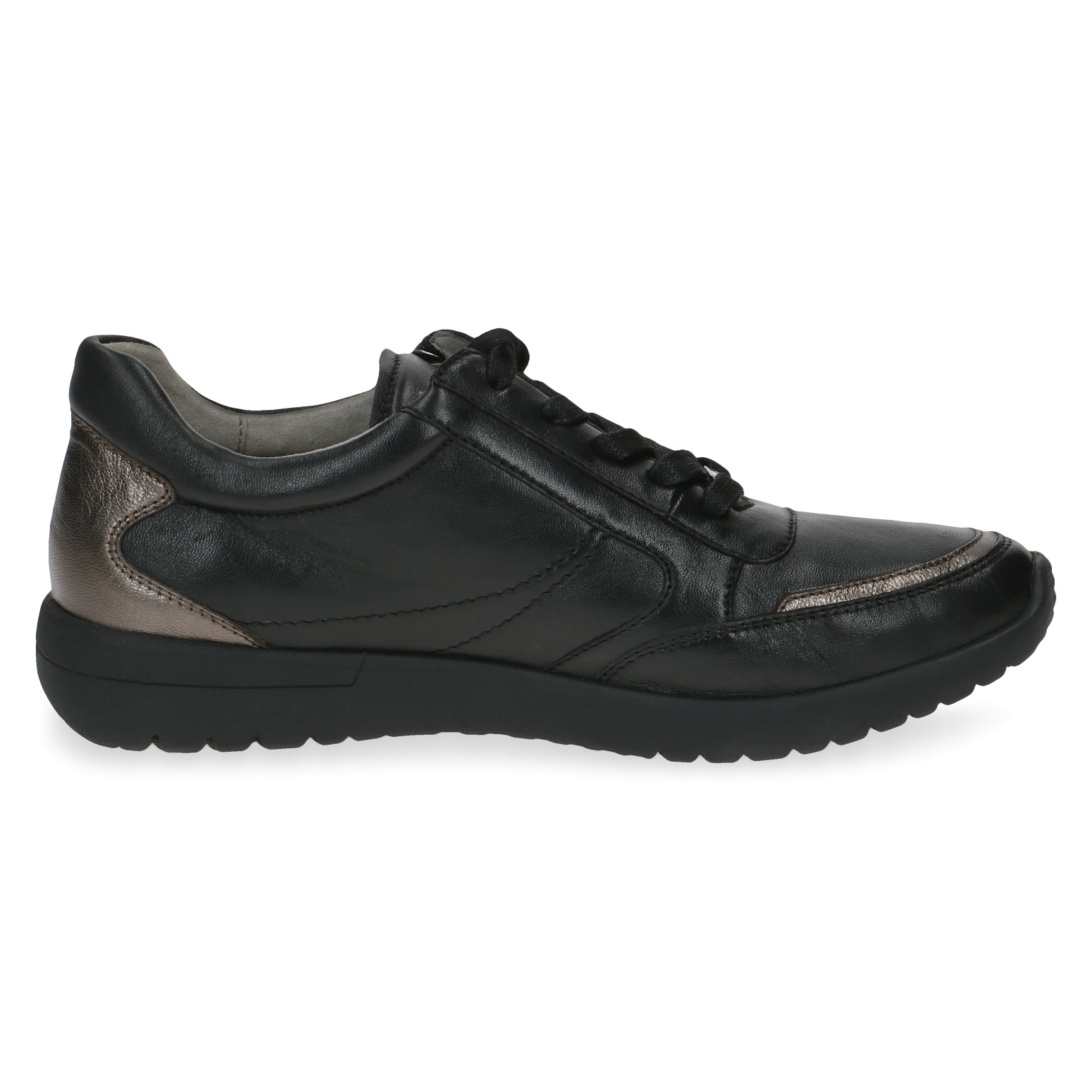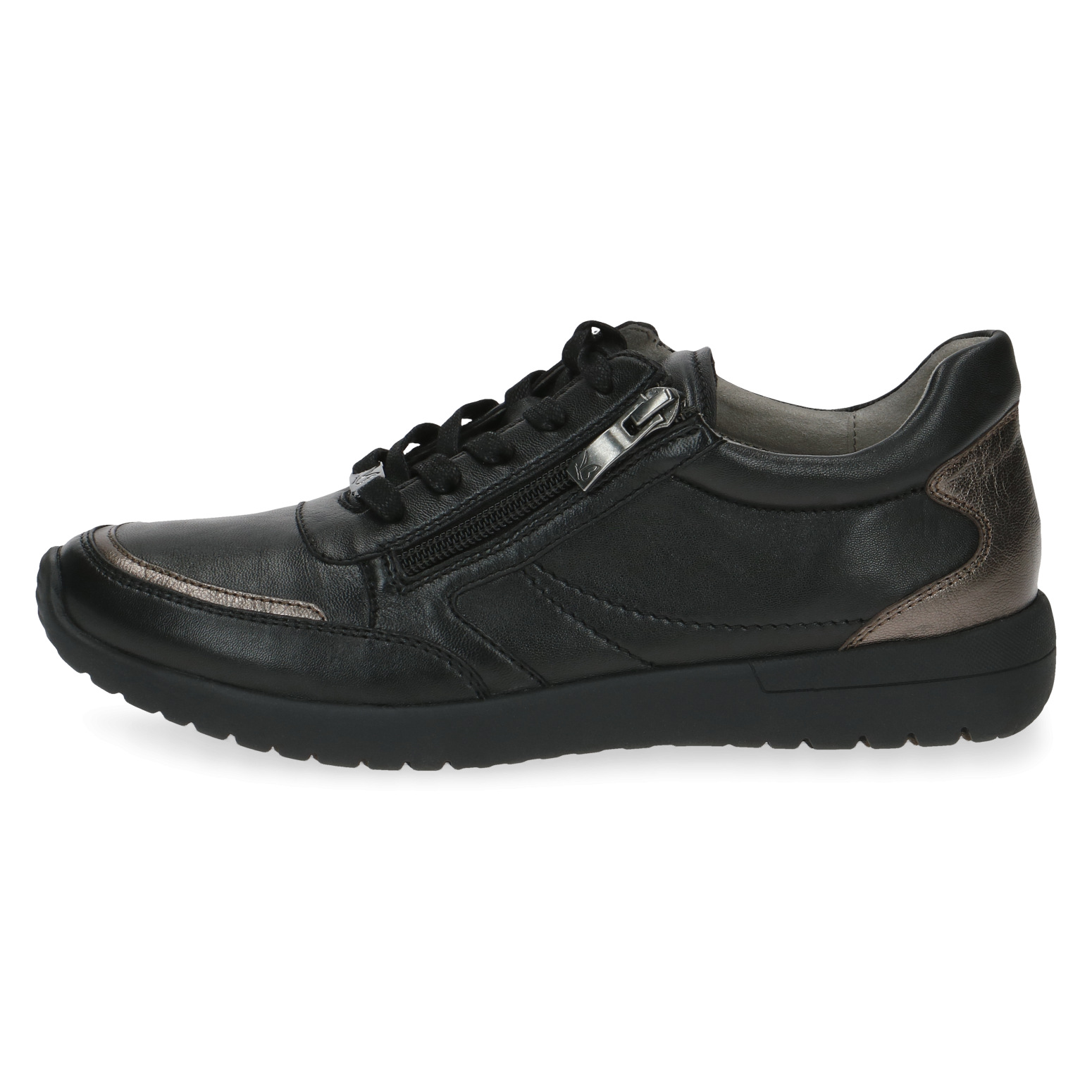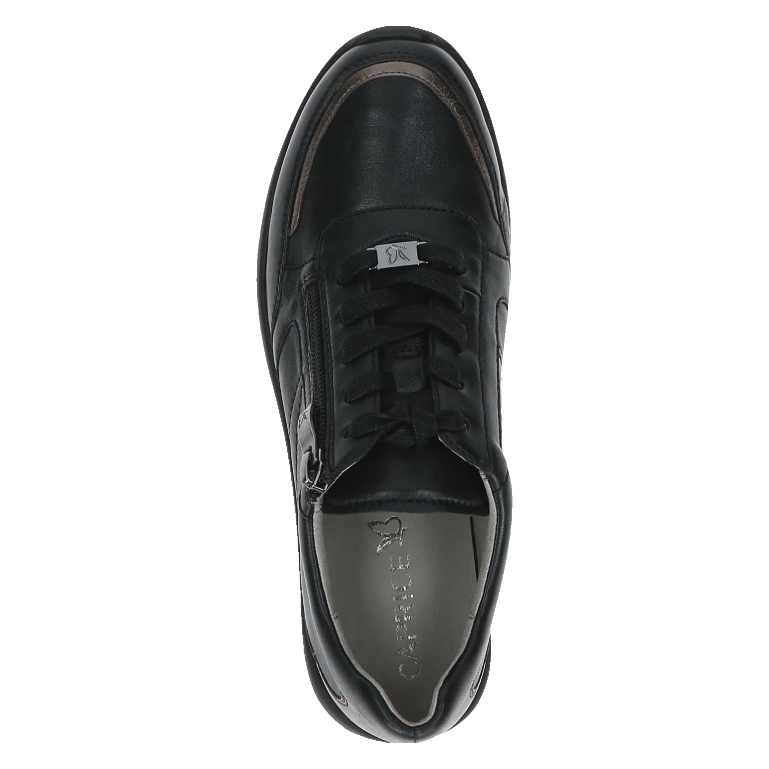 Dámské černé botasky značky Caprice. Svrchním materiálem je kůže. Pro snadnější obouvání je u šněrování funkční zip. Boty jsou měkké a krásně ohebné.