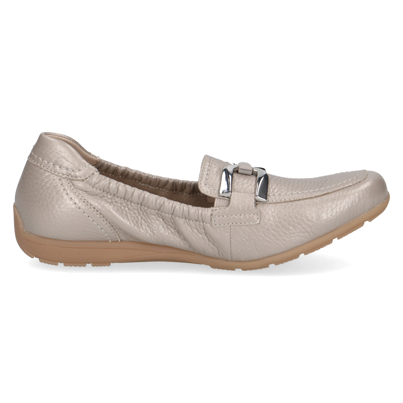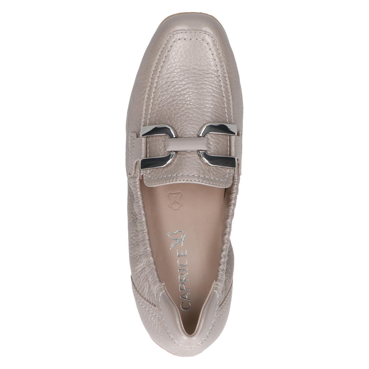 Dámské mokasíny v béžové lesklé barvě značky CAPRICE. Svrchním materiálem je kůže. Vnitřní stélka je kožená. Lehká a flexibilní podešev Vám zajistí komfort při chůzi.