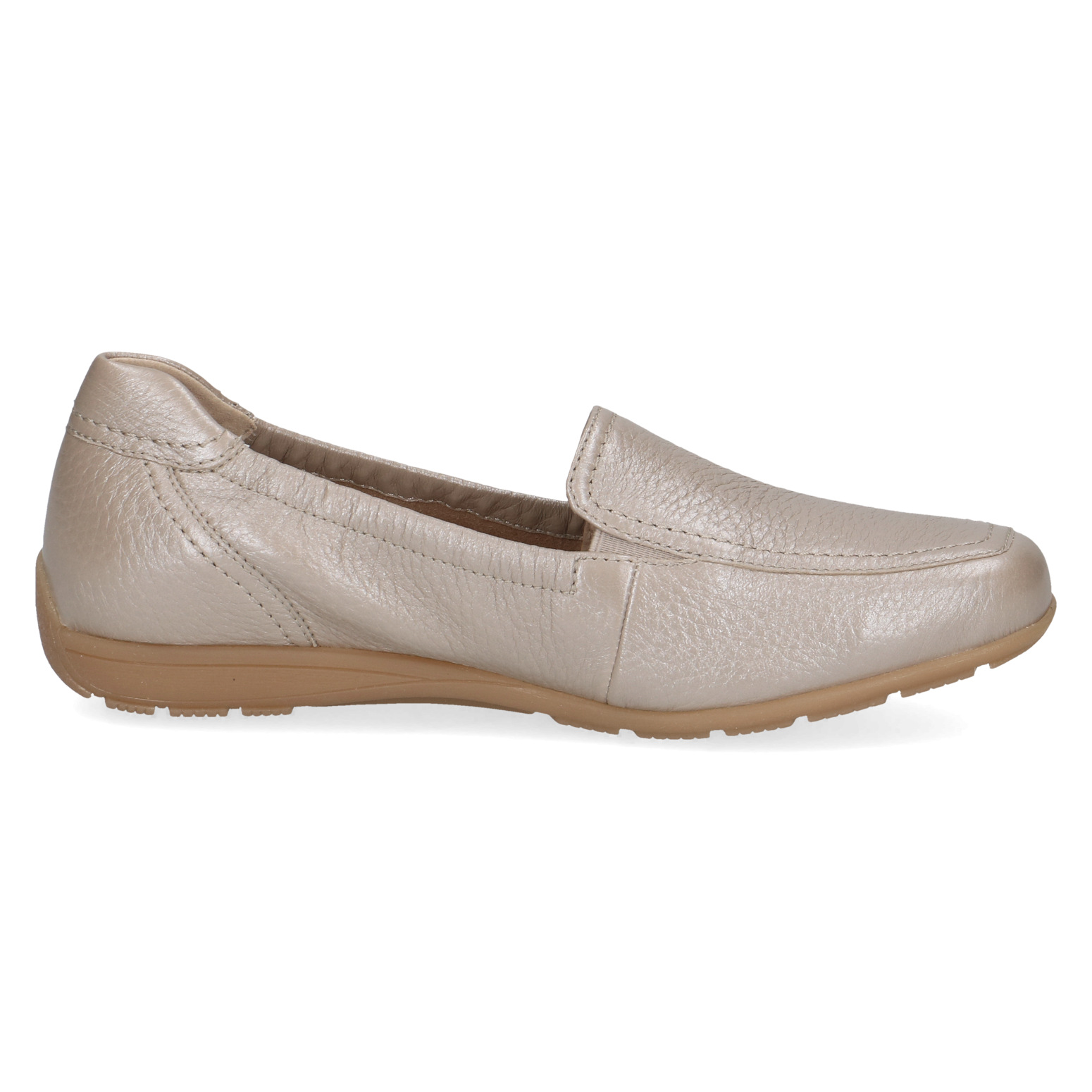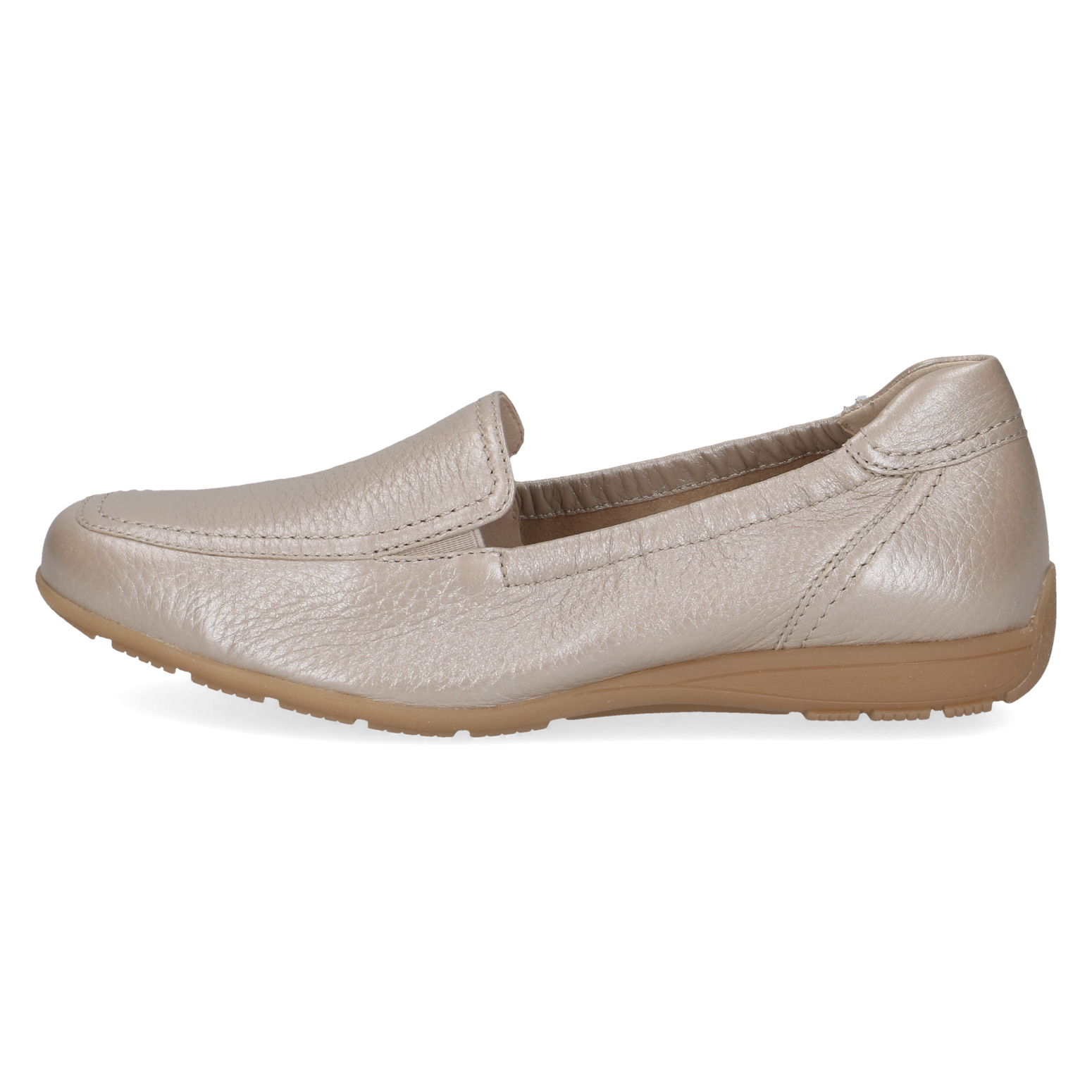 Dámské mokasíny v béžové lesklé barvě značky CAPRICE. Svrchním materiálem je kůže. Vnitřní stélka je kožená a je vyjímatelná. Lehká a flexibilní podešev Vám zajistí komfort při chůzi.