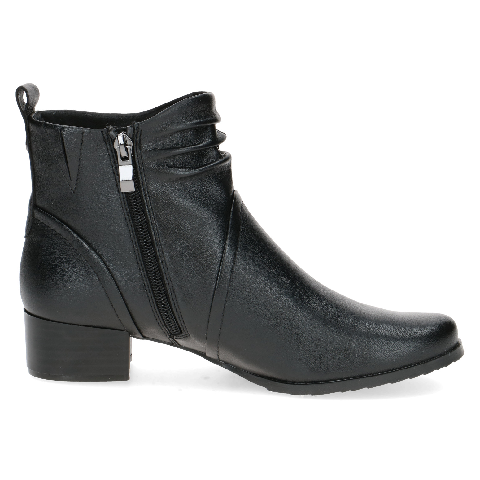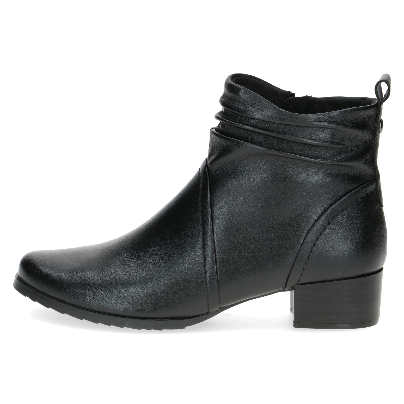 Dámská černá kotníková obuv od značky Caprice vyrobená z jemné kůže. Uvnitř lehce zateplené hřejivou textilní podšívkou. Obuv se snadno nazouvá díky bočnímu zipu. Vyjímatelná stélka umožňuje její výměnu a zvyšuje tím pohodlí při nošení bot. Vzduchové bublinky umístěné zespod stélky tlumí nárazy při chůzi a zajišťují lepší odvětrávání boty.