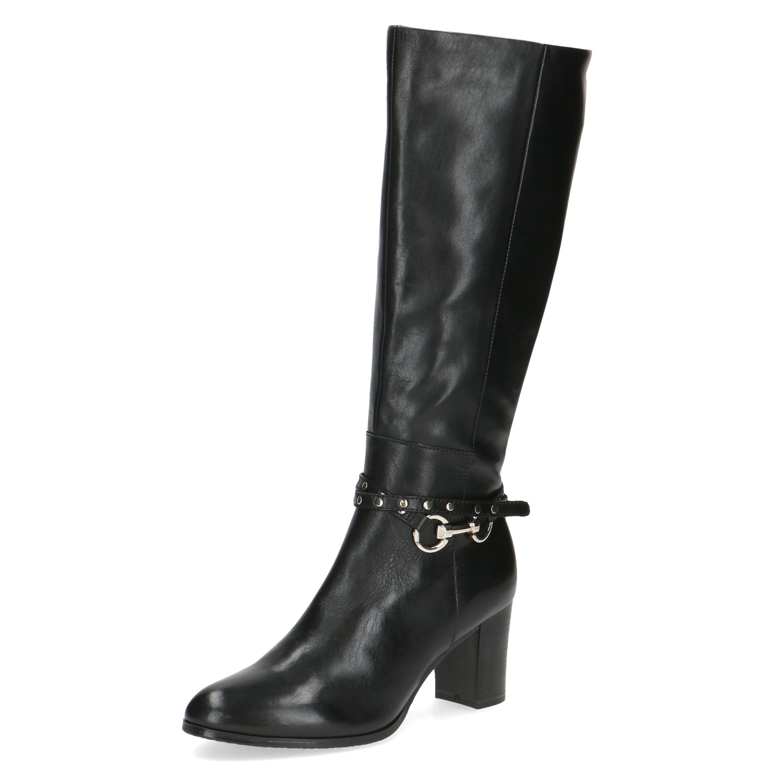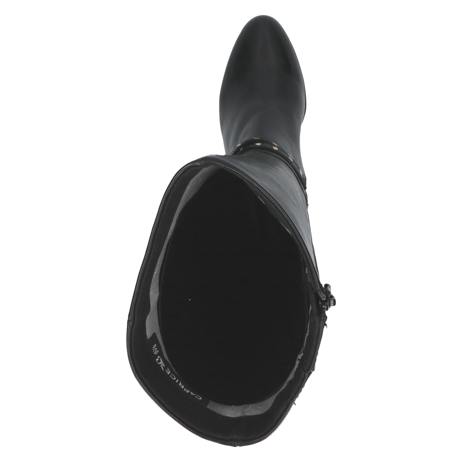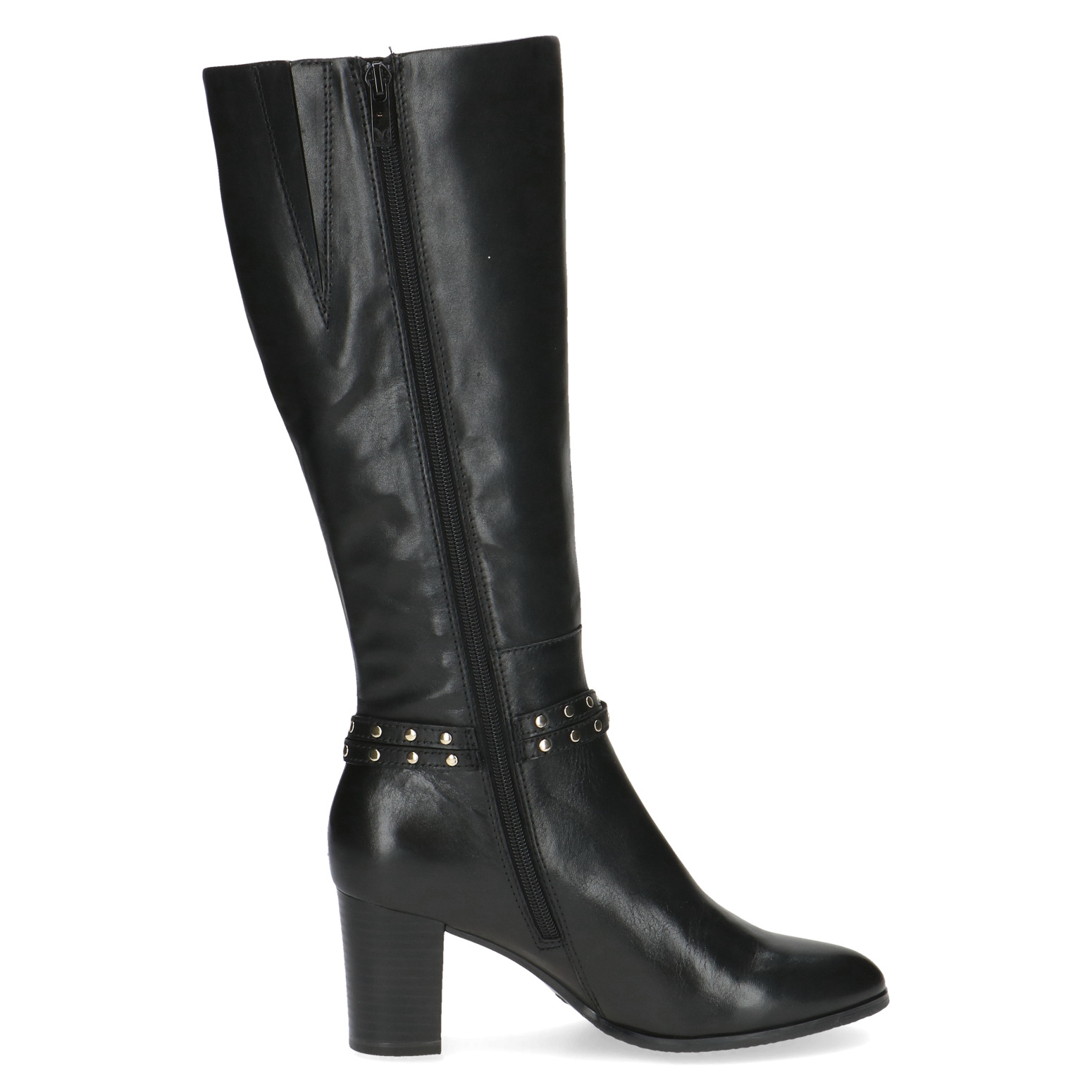 Nadčasové dámské vysoké kozačky Caprice. Svrchním materiálem je hladká kůže. Z boku obuvi zip pro snadnější obouvání. Vnitřek kozaček je lehce zateplen, včetně nášlapné stélky. Podešev je vyrobena z kvalitního syntetického materiálu. Tahle obuv se dokonale hodí k legínám i k šatům.