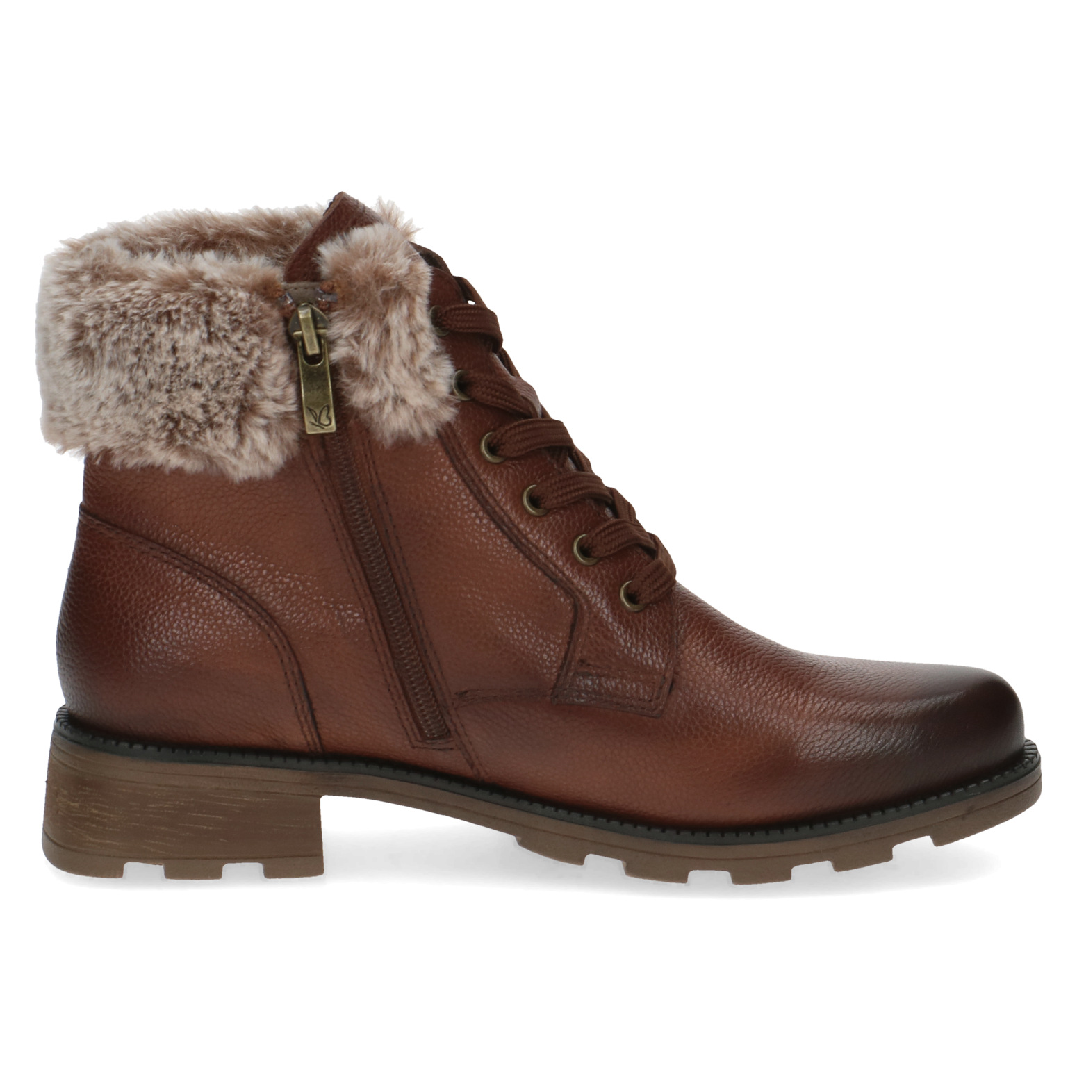 Dámská kotníková zimní obuv v hnědé barvě značky CAPRICE. Svrchním materiálem je kůže. Z boku obuvi zip pro snadnější obouvání. Vnitřní stélka je vyjímatelná. Vzduchové bublinky umístěné zespod stélky tlumí nárazy při chůzi a zajišťují lepší odvětrávání boty. Obuv je zateplená hřejivým kožíškem. Obuv je vybavena voděodpudivou membránou.
