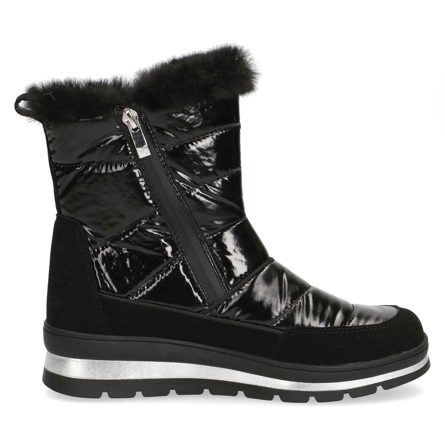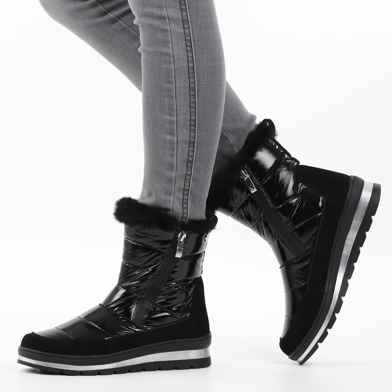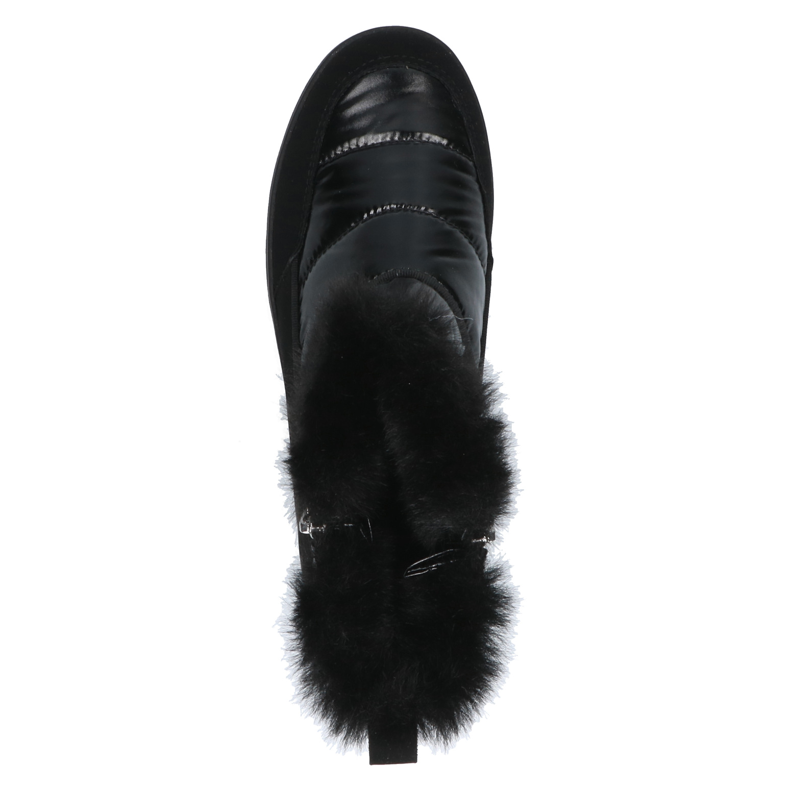 Dámské černé sněhule ze syntetiky, jsou vyteplené kožíškem a mají vodoodpudivou membránu. Díky vyměkčené stélce, jsou pohodlné při došlapu. Vyjímatelná stélka umožňuje její výměnu a zvyšuje tím pohodlí při nošení bot. Vzduchové bublinky umístěné zespod stélky tlumí nárazy při chůzi a zajišťují lepší odvětrávání boty. Silná gumová podrážka izoluje a chrání před mrazem.