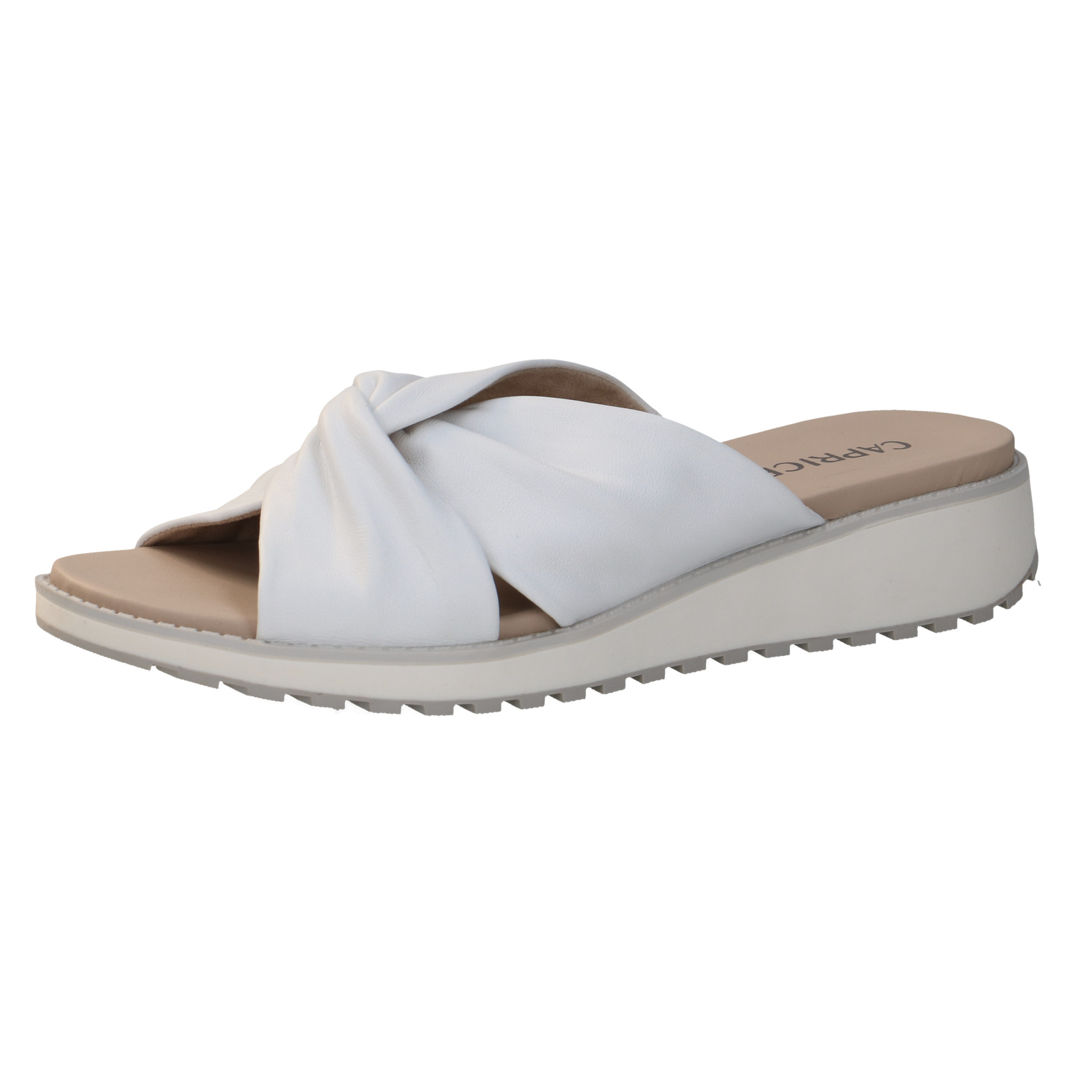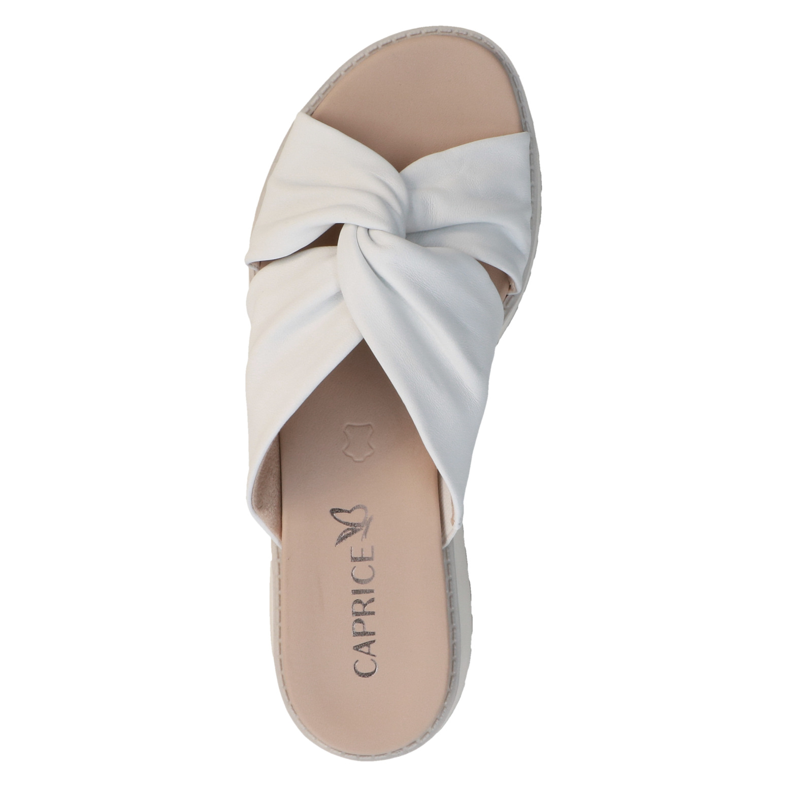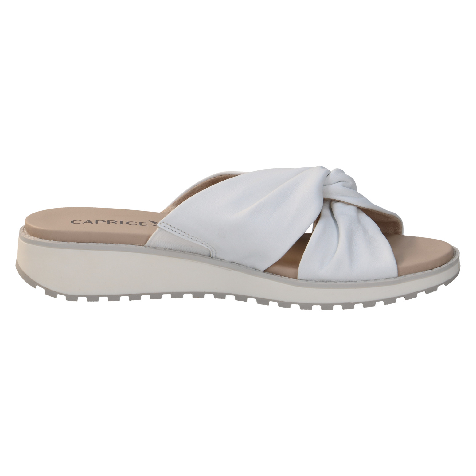 Dámské pantofle na klínku v bílé barvě, která dodavá obuvi eleganci a šmrnc. Svršek obuvi je vyroben z kůže. Vnitřní stélka je kožená. Obuv vhodná ke kalhotům i k sukni.