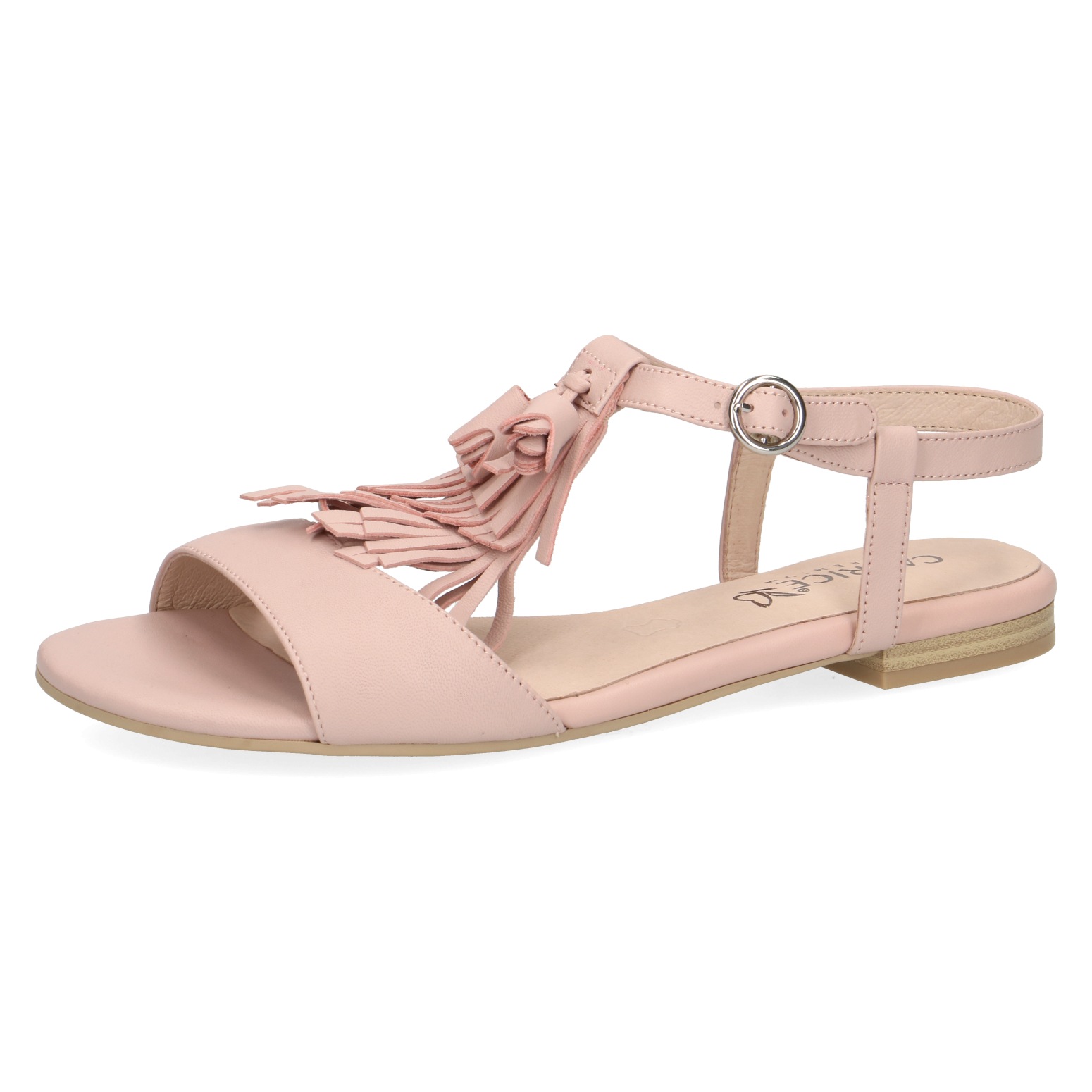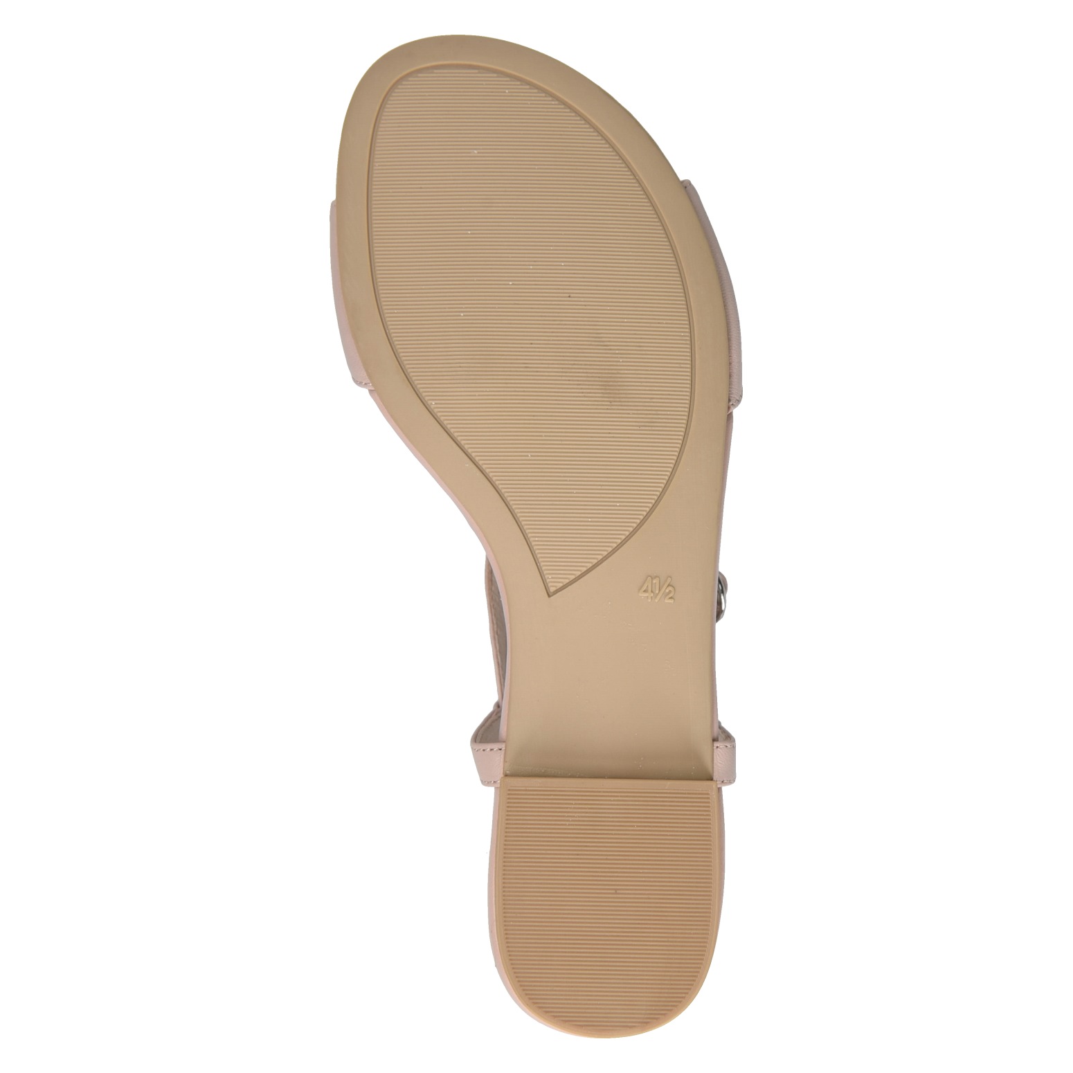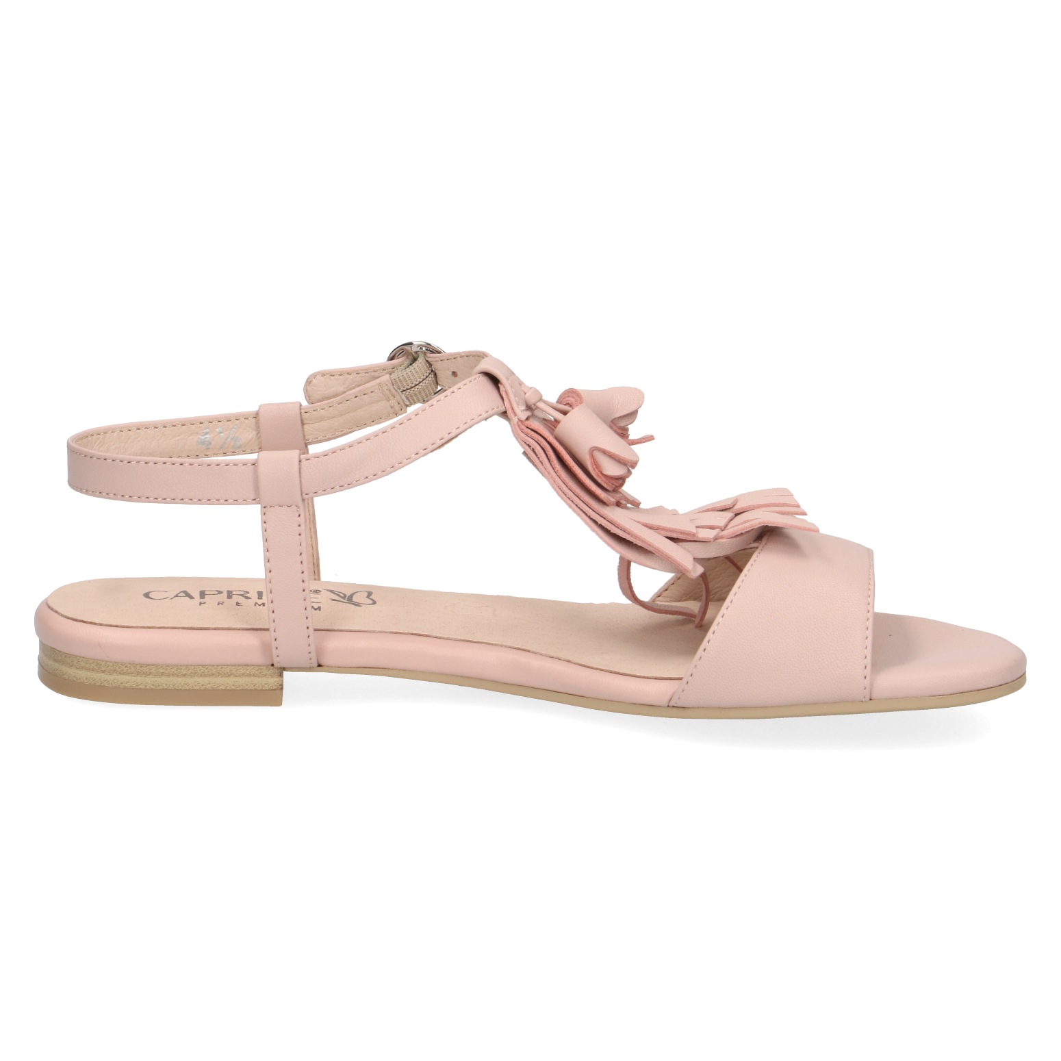 Dámské růžové sandály z pravé kůže. Vrchní materiál tvoří hladká useň. Vnitřek obuvi je také usňový, včetně vyměkčené nášlapné stélky. Podešev je flexibilní, vyrobená z kvalitního syntetického materiálu. Tato obuv je příjemná na nošení.