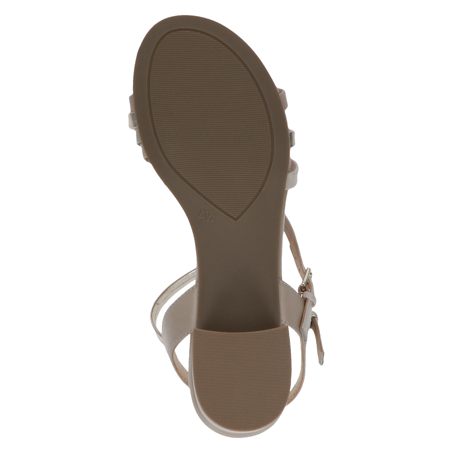 Dámské elegantní béžovo - zlaté sandály na podpatku od značky Caprice. Kožená stélka poskytuje chodidlům vysoký komfort při nošení. Obuv je stabilní díky nižšímu pohodlnému podpatku. Podešev je vyrobená z kvalitního syntetického materiálu.