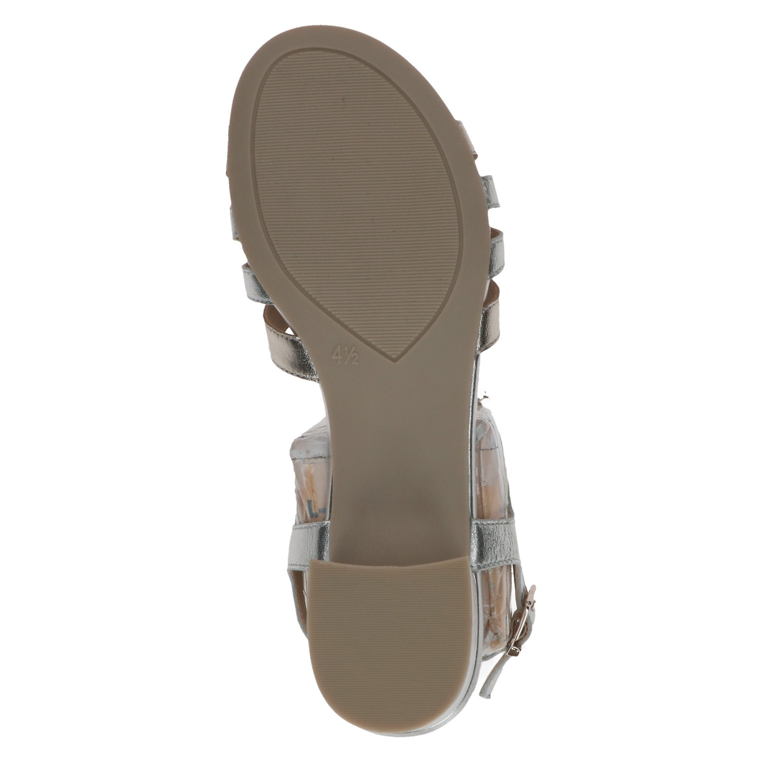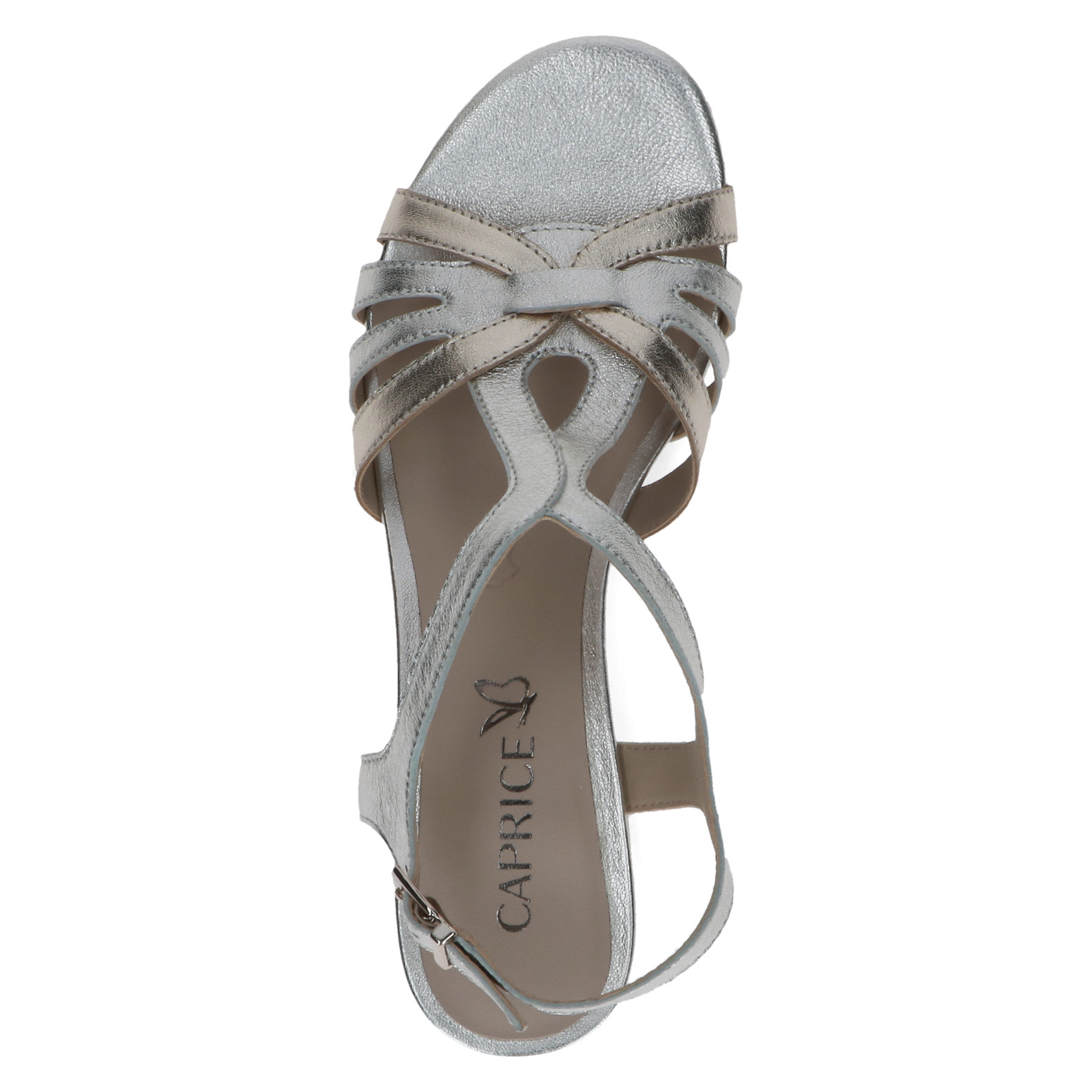 Dámské elegantní béžovo - zlaté sandály na podpatku od značky Caprice. Kožená stélka poskytuje chodidlům vysoký komfort při nošení. Obuv je stabilní díky nižšímu pohodlnému podpatku. Podešev je vyrobená z kvalitního syntetického materiálu.
