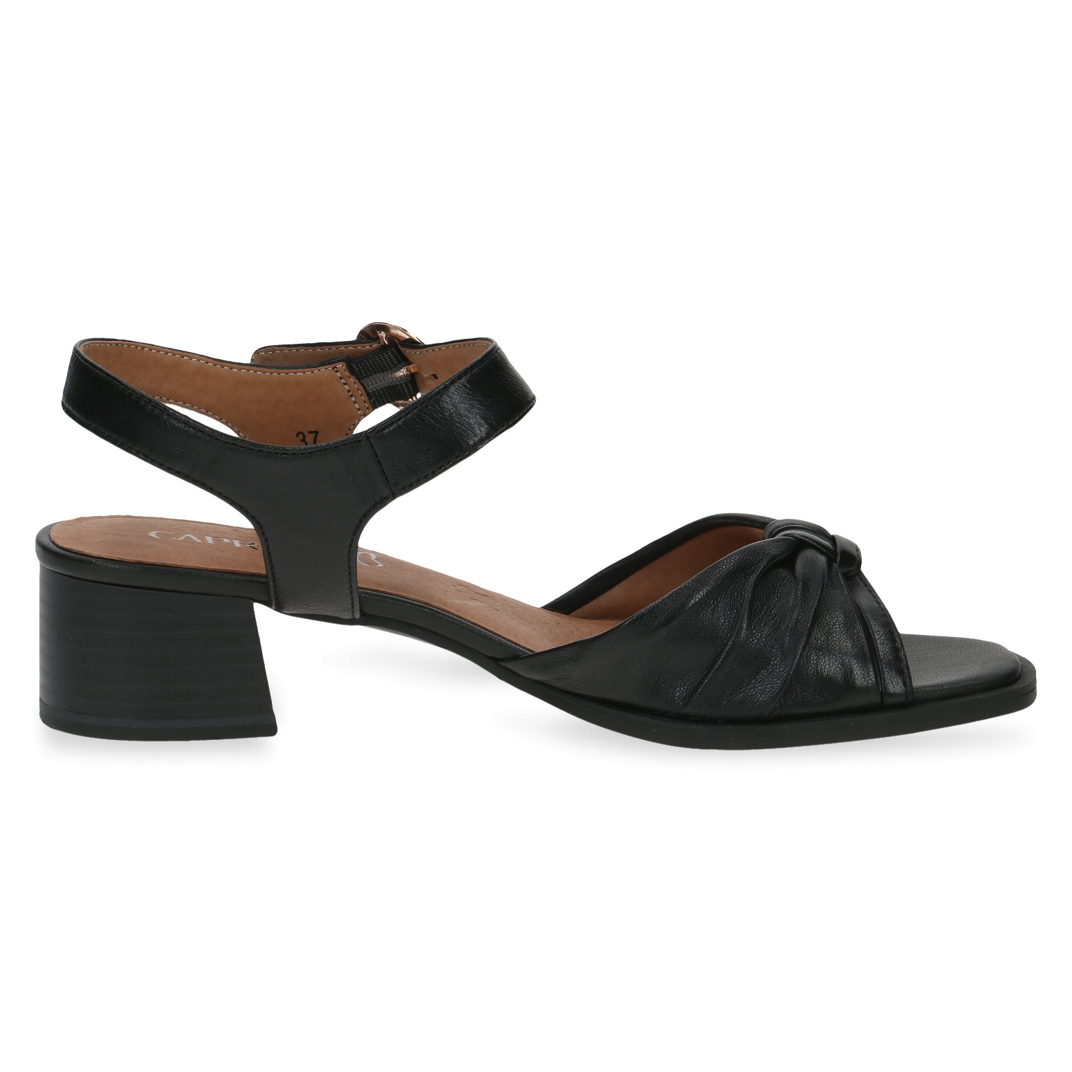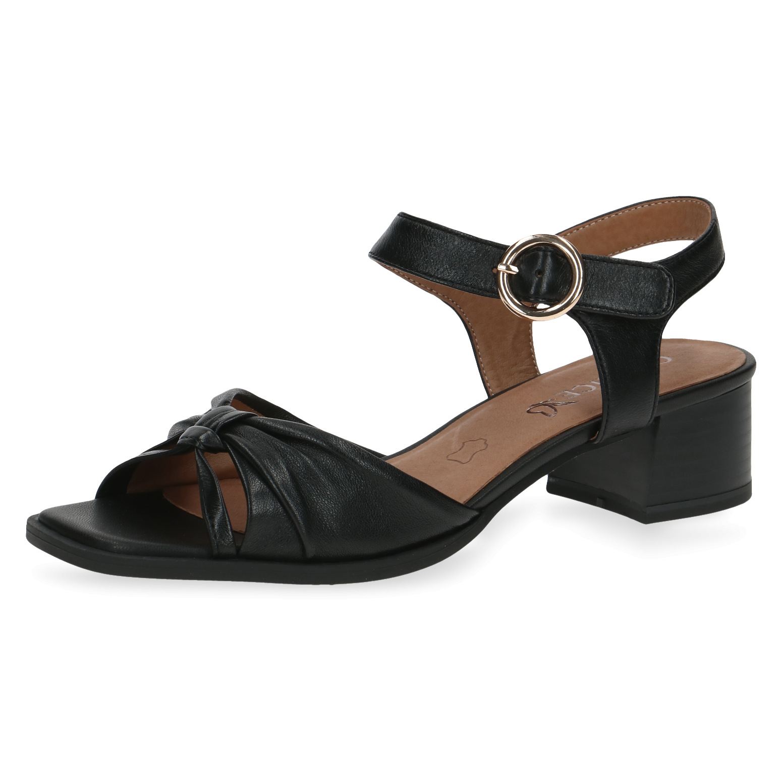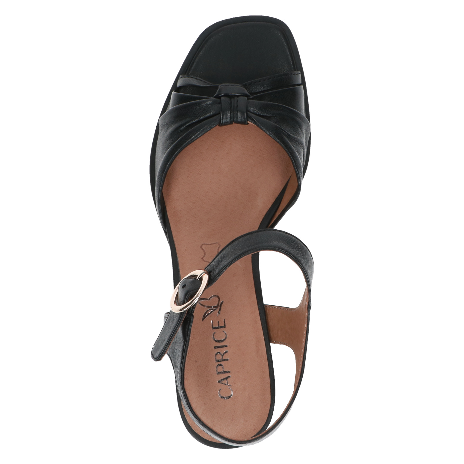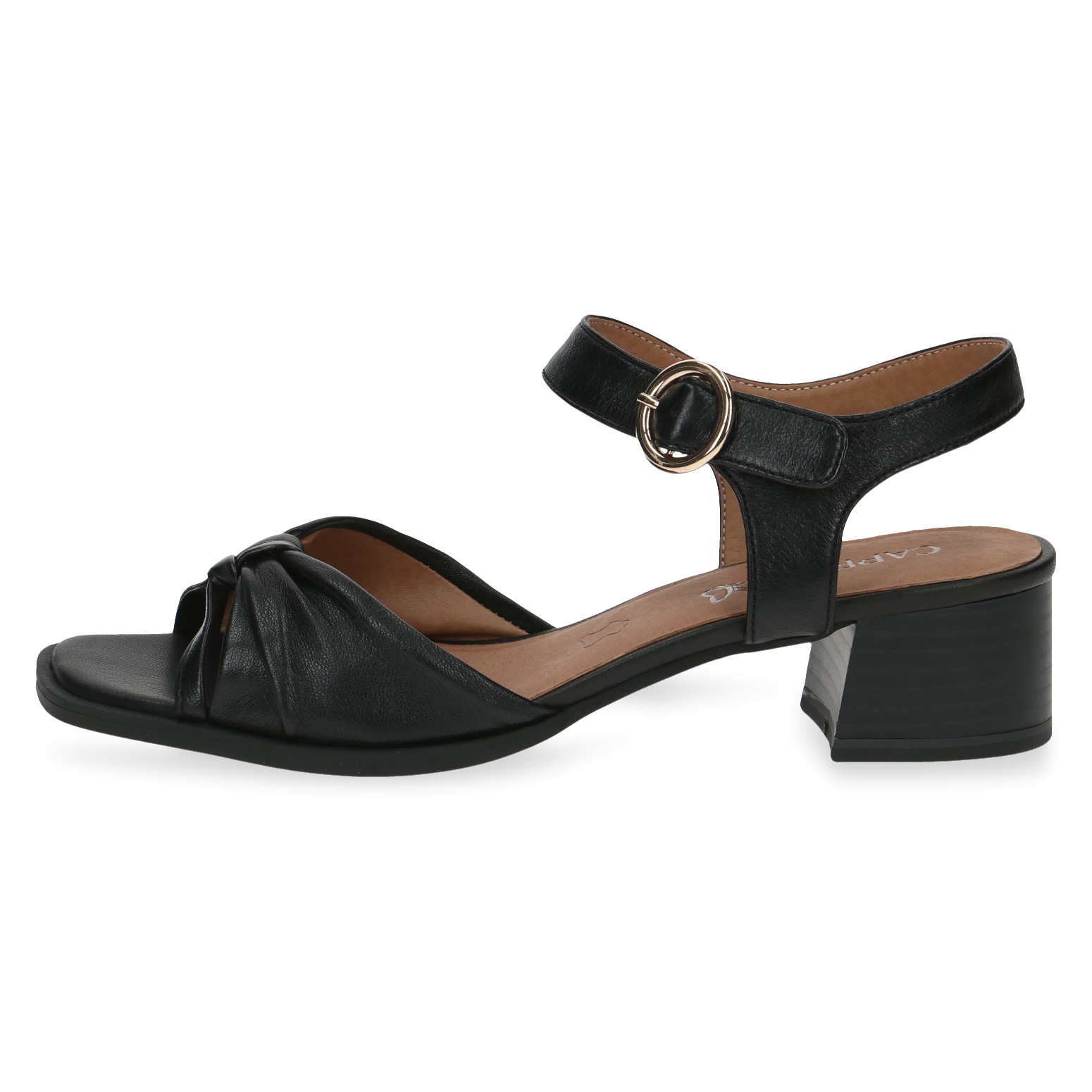Dámské černé sandály na podpatku CAPRICE. Snadno udržovatelným svrchním materiálem je kůže. Široký podpatek zajišťuje perfektní stabilitu.