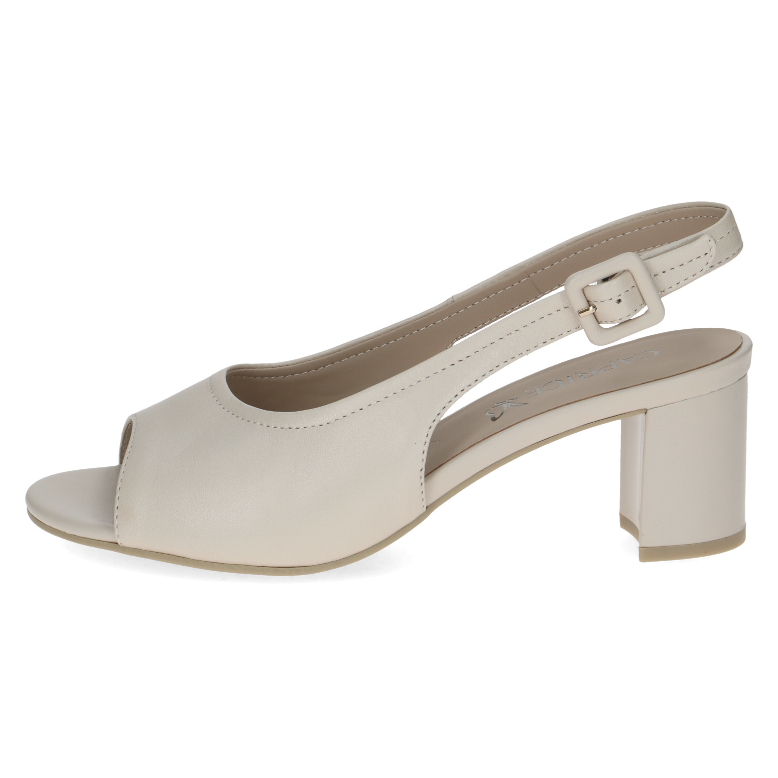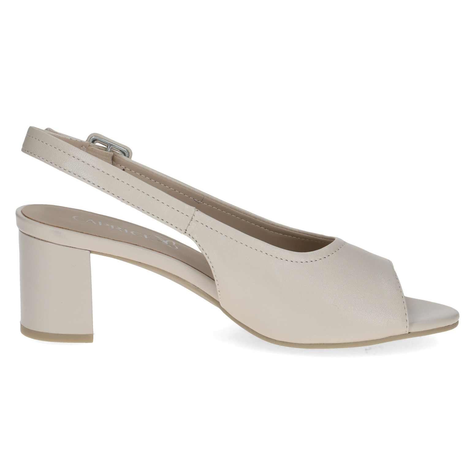 Dámské sandály na podpatku v béžové barvě značky Caprice. Svrchním materiálem je kůže. Kožená stélka poskytuje chodidlům vysoký komfort při nošení. Obuv je stabilní díky širšímu pohodlnému podpatku. Podešev je vyrobená z kvalitního syntetického materiálu.