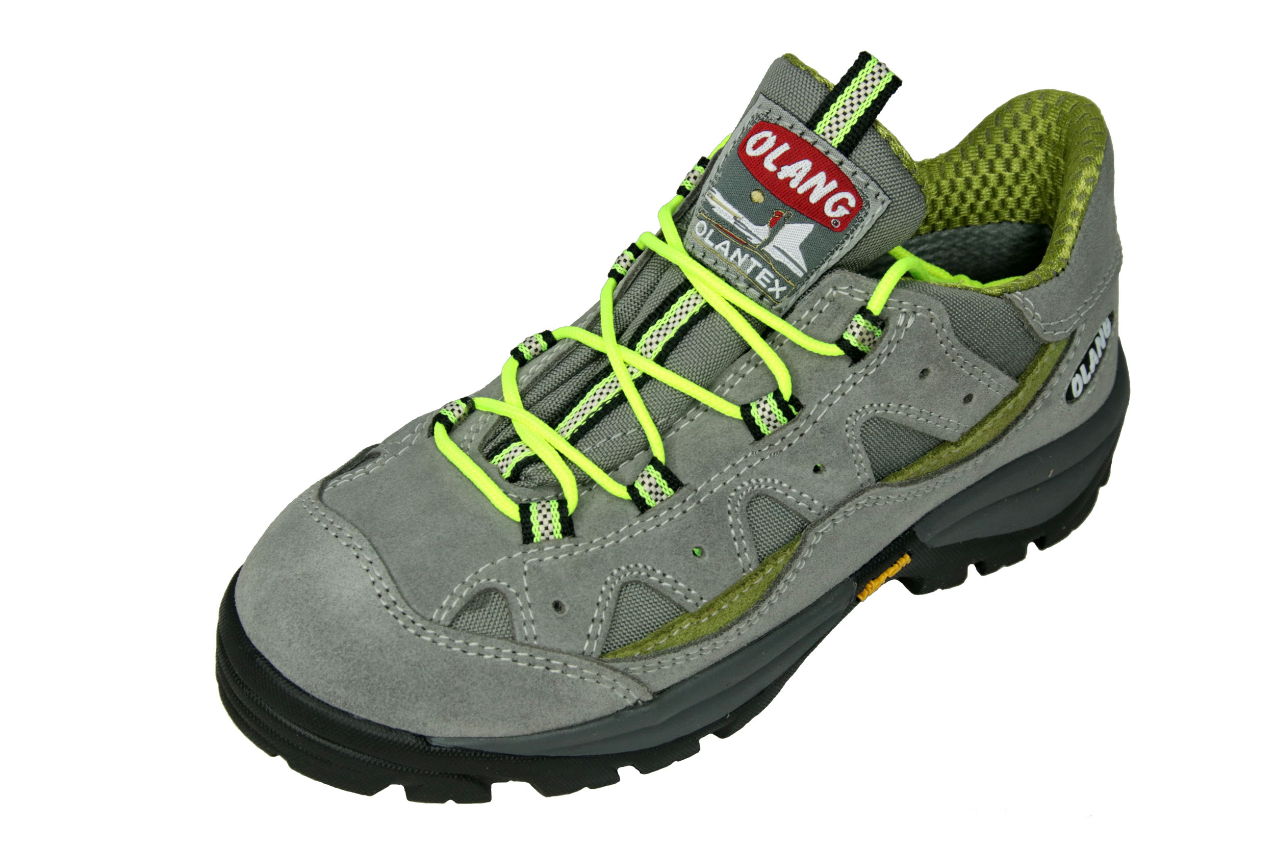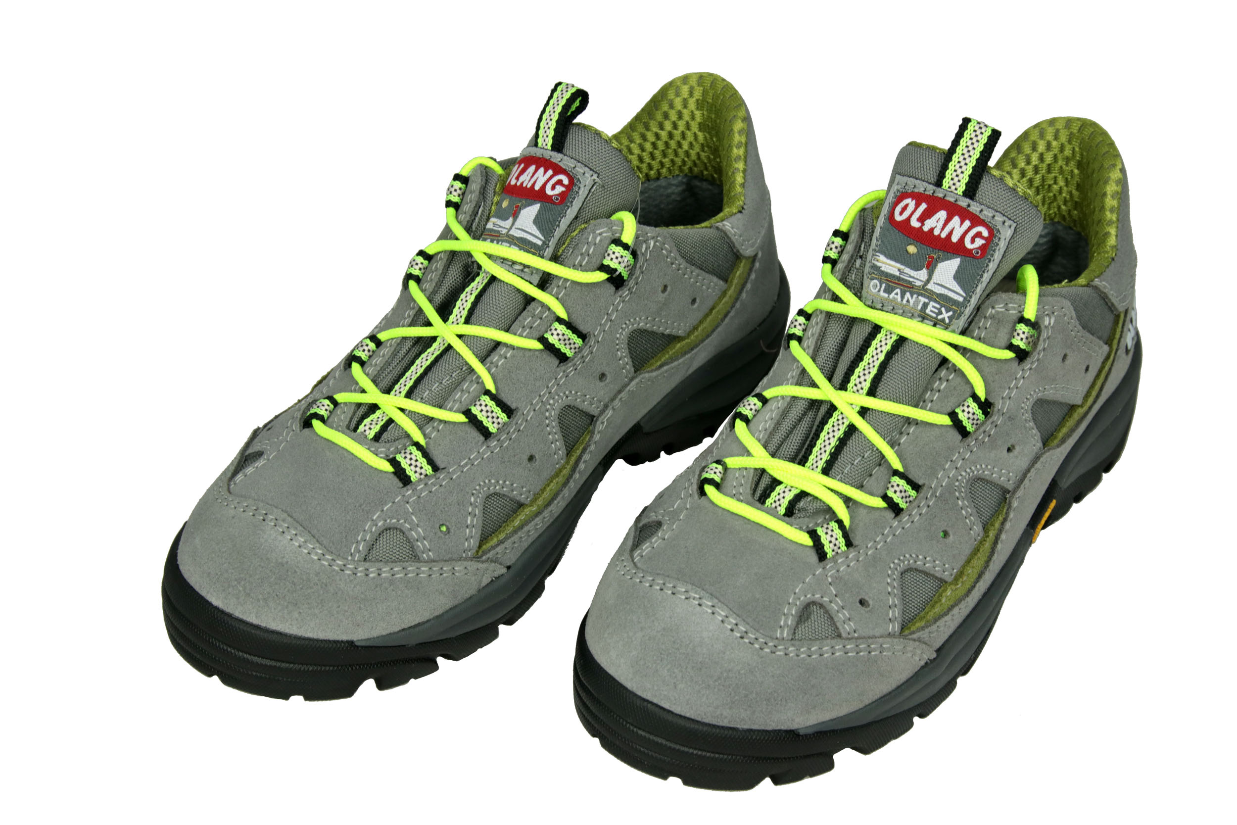 Dětská treková kožená obuv šedé barvy se zelenými prvky má zpevněnou patu a špičku. Je voděodolná a prodyšná díky membráně Olantex. Svrchní část obuvi tvoří kombinace kůže a textilu Cordura (oděru odolný). Kvalitní Vibram podešev vyniká odolností, životností a hrubším vzorkem a je vhodná do jakéhokoliv terénu.