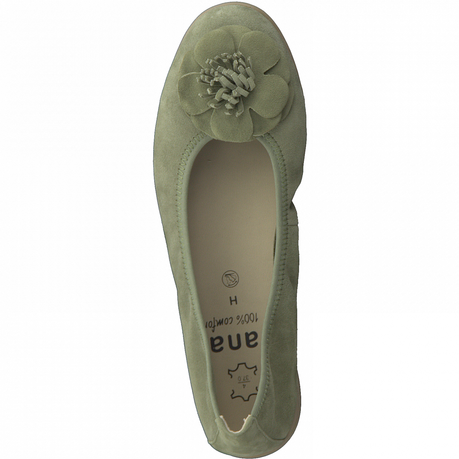 Dámské kožené baleríny Jana. Obuv je v šíři H. Měkčená kožená stélka zajištˇuje pohodlný došlap. Díky použití speciálního materiálu a jedinečného složení je podešev lehká, měkká a flexibilní.