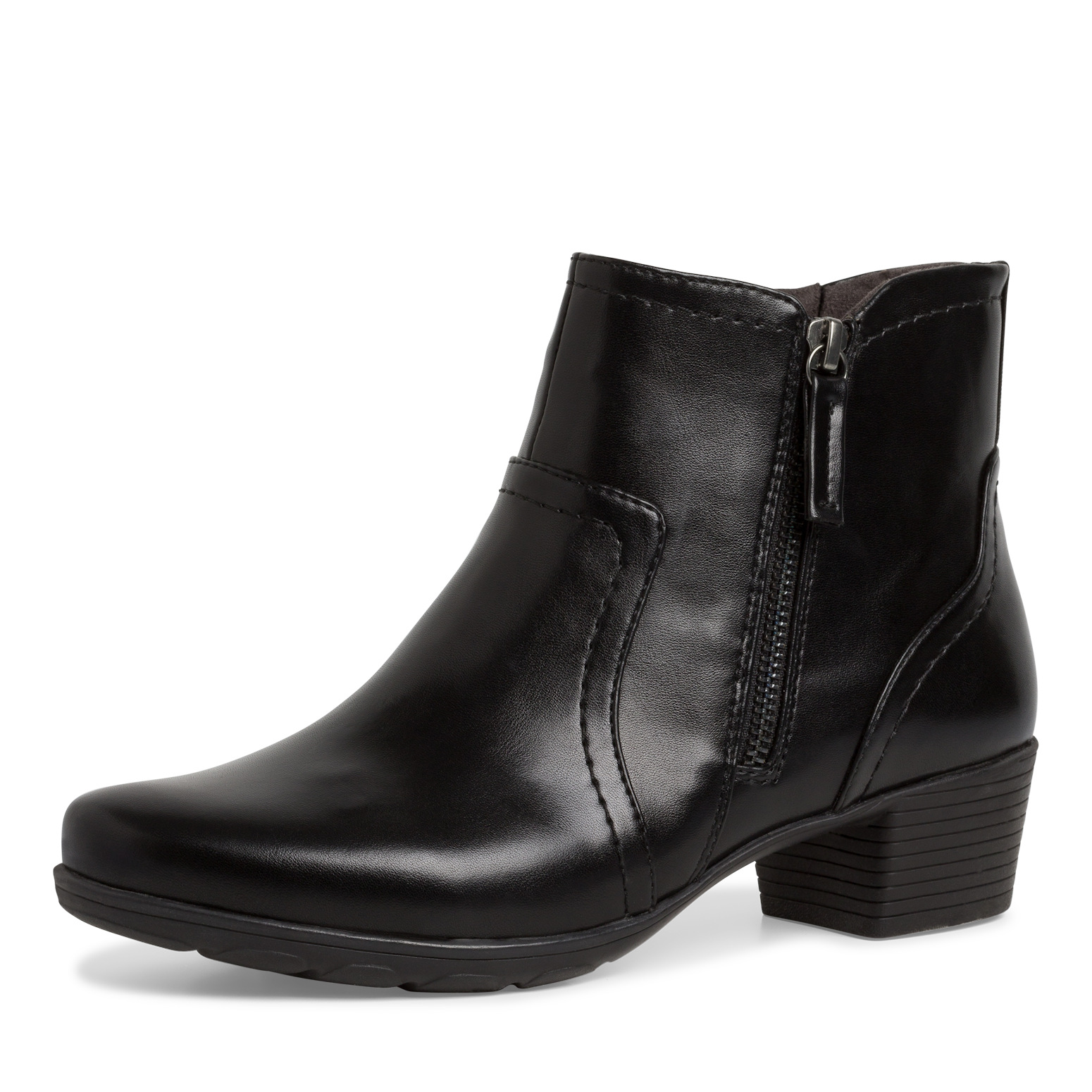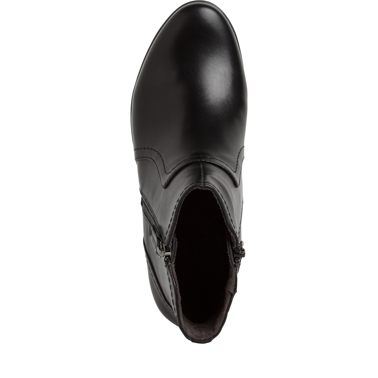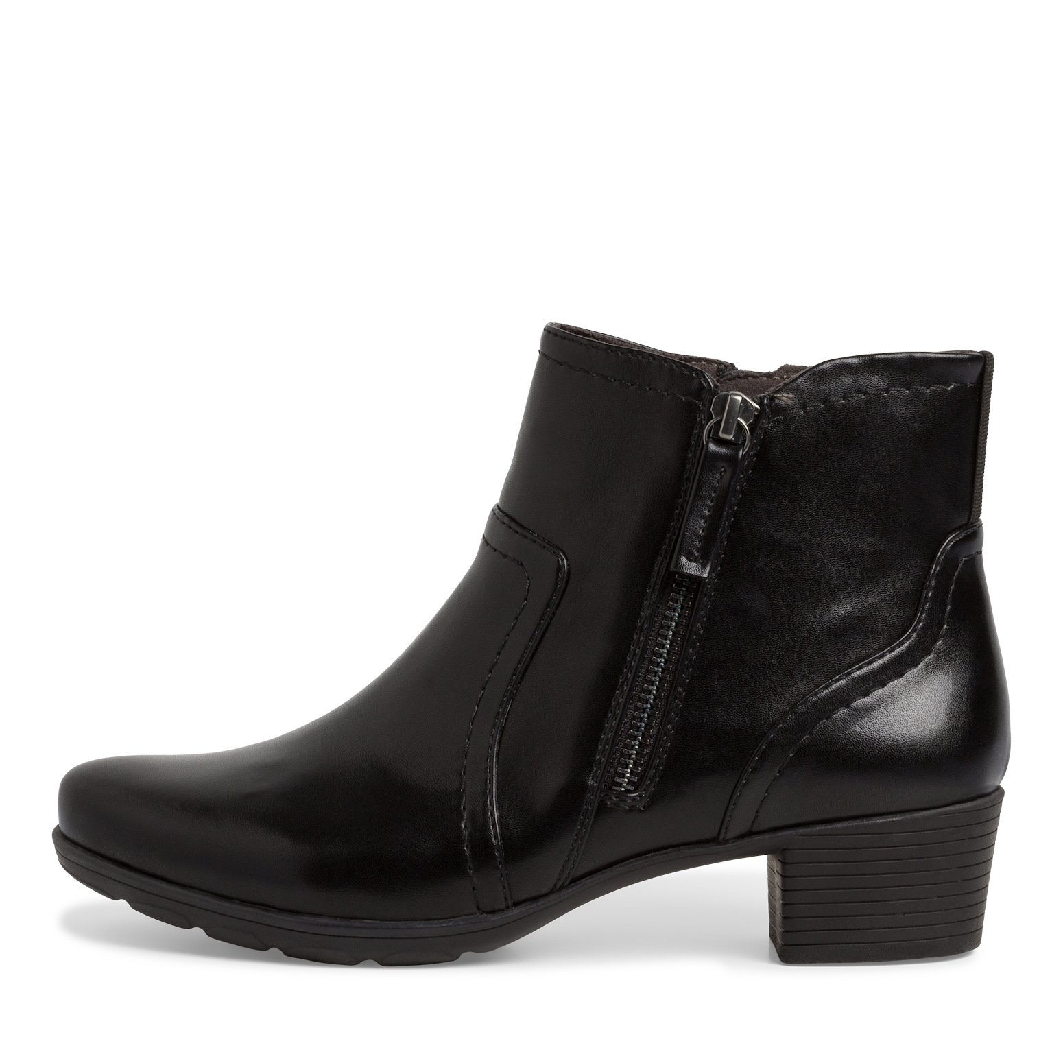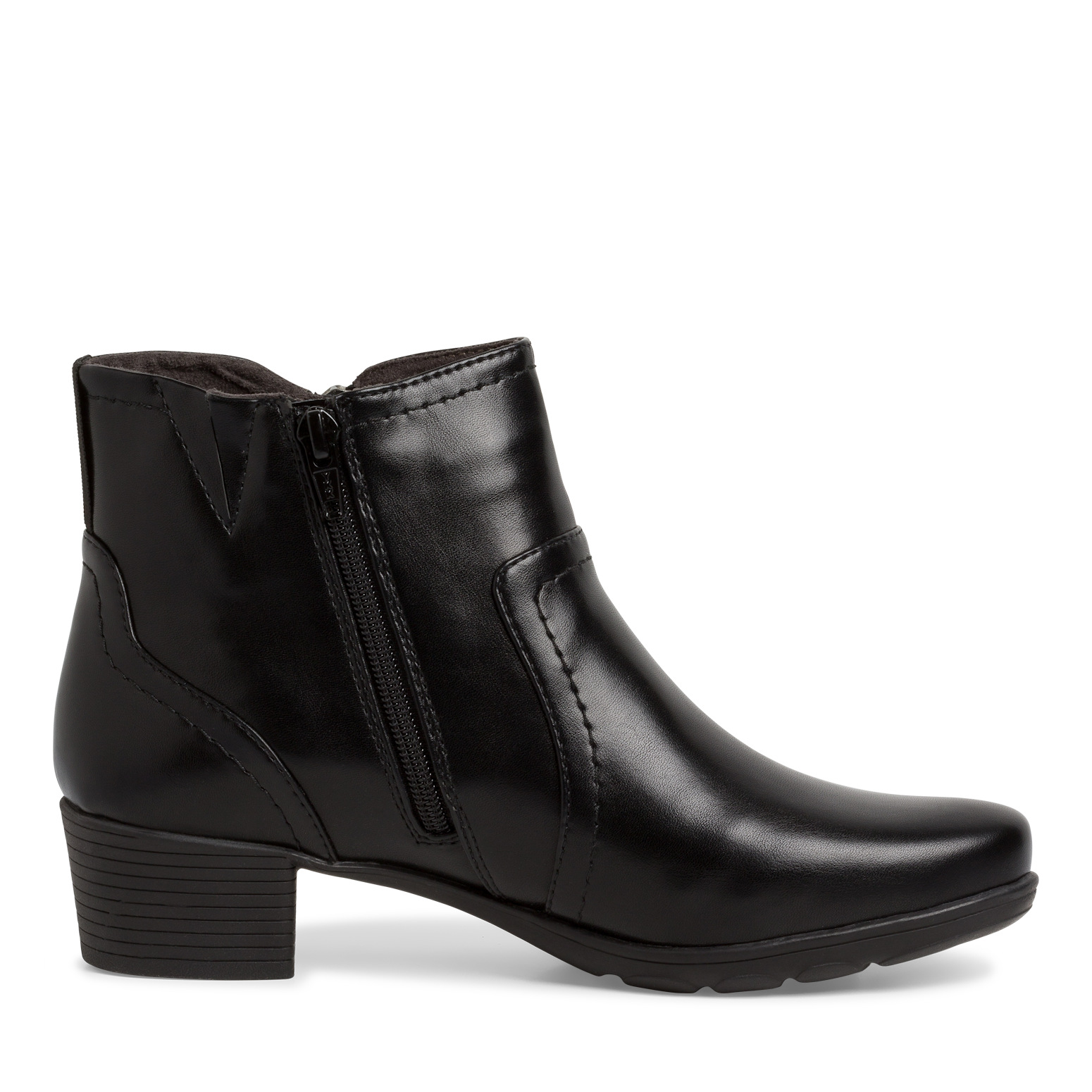 Dámská kotníková obuv v černé barvě značky JANA. Z boku zip pro snadnější obouvání. Vnitřek je vyteplen textilní semišovou podšívkou. Obuv je v šíři H - vhodná i na širší chodidlo.
