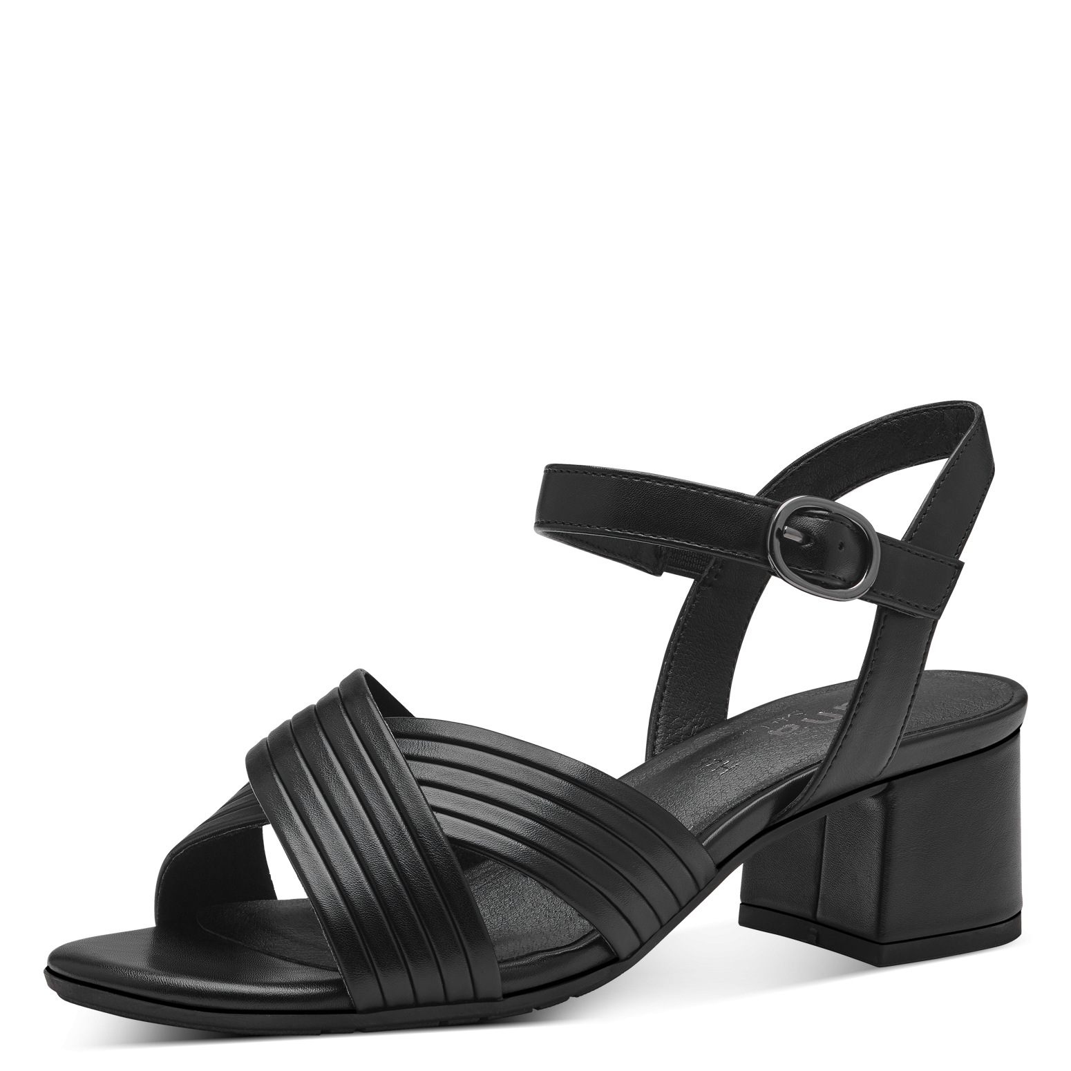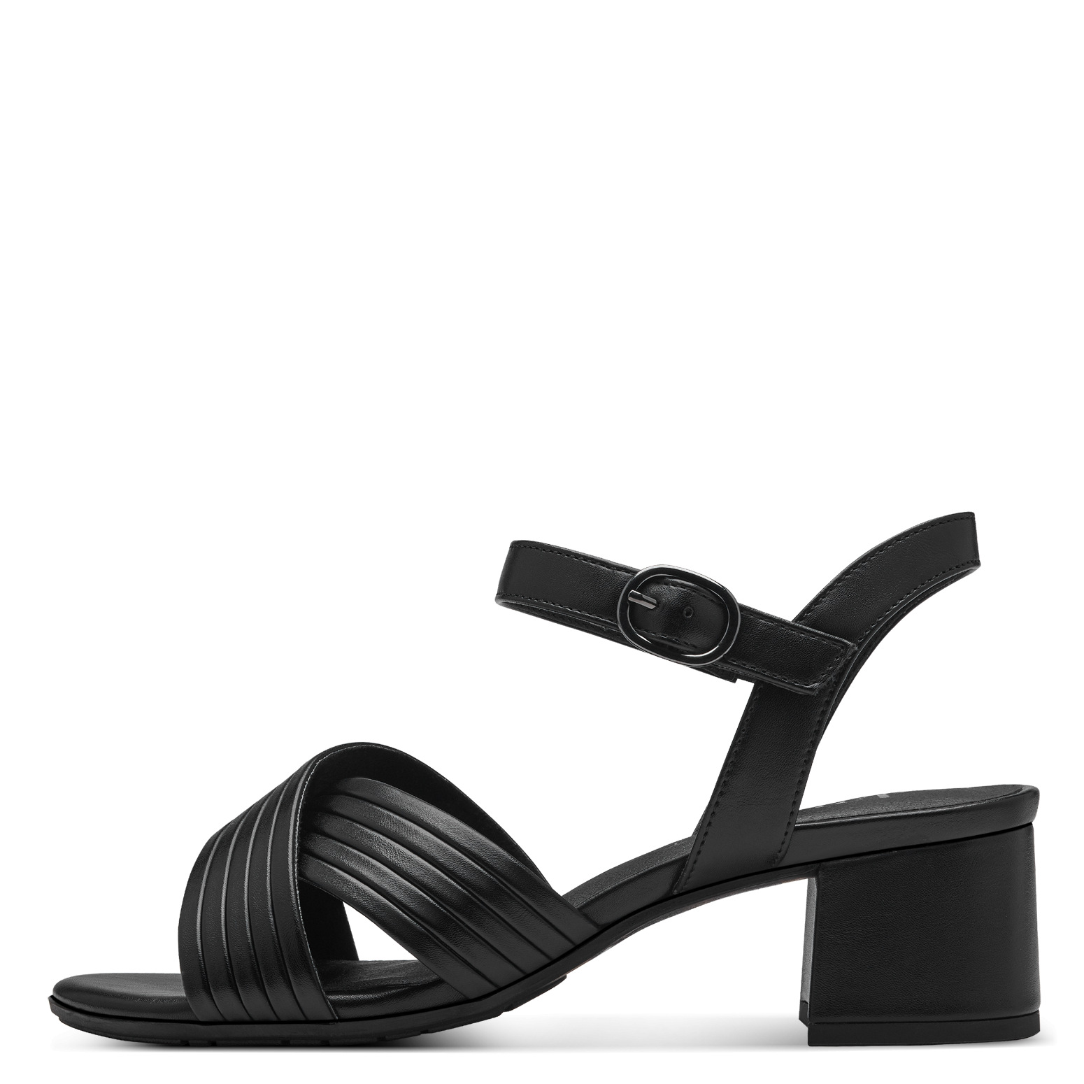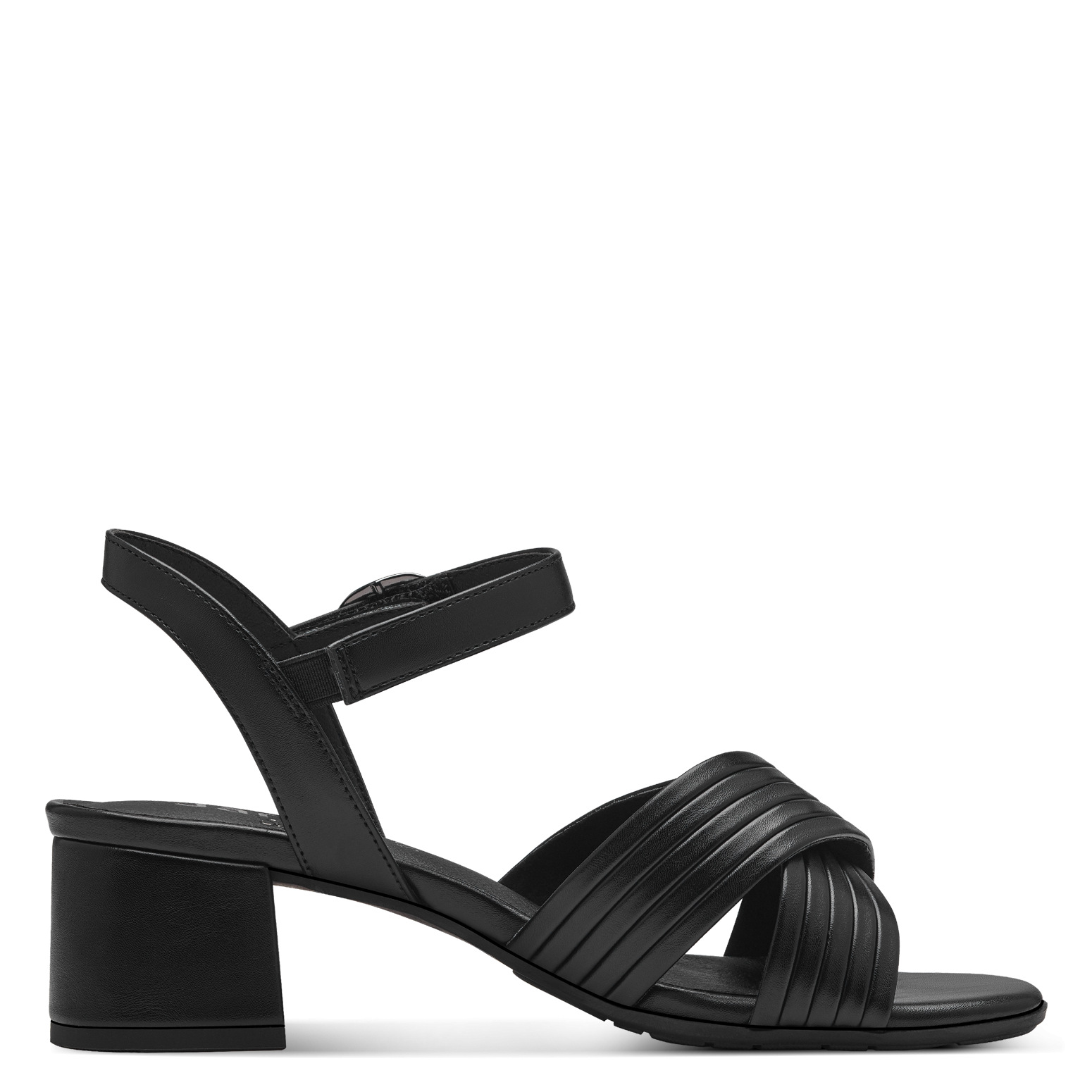 Dámské sandály v černé barvě značky Jana. Svrchním materiálem je syntetika. Zapínání na suchý zip. Obuv je stabilní díky širšímu pohodlnému podpatku a je v šíři H - vhodná i na širší chodidlo.