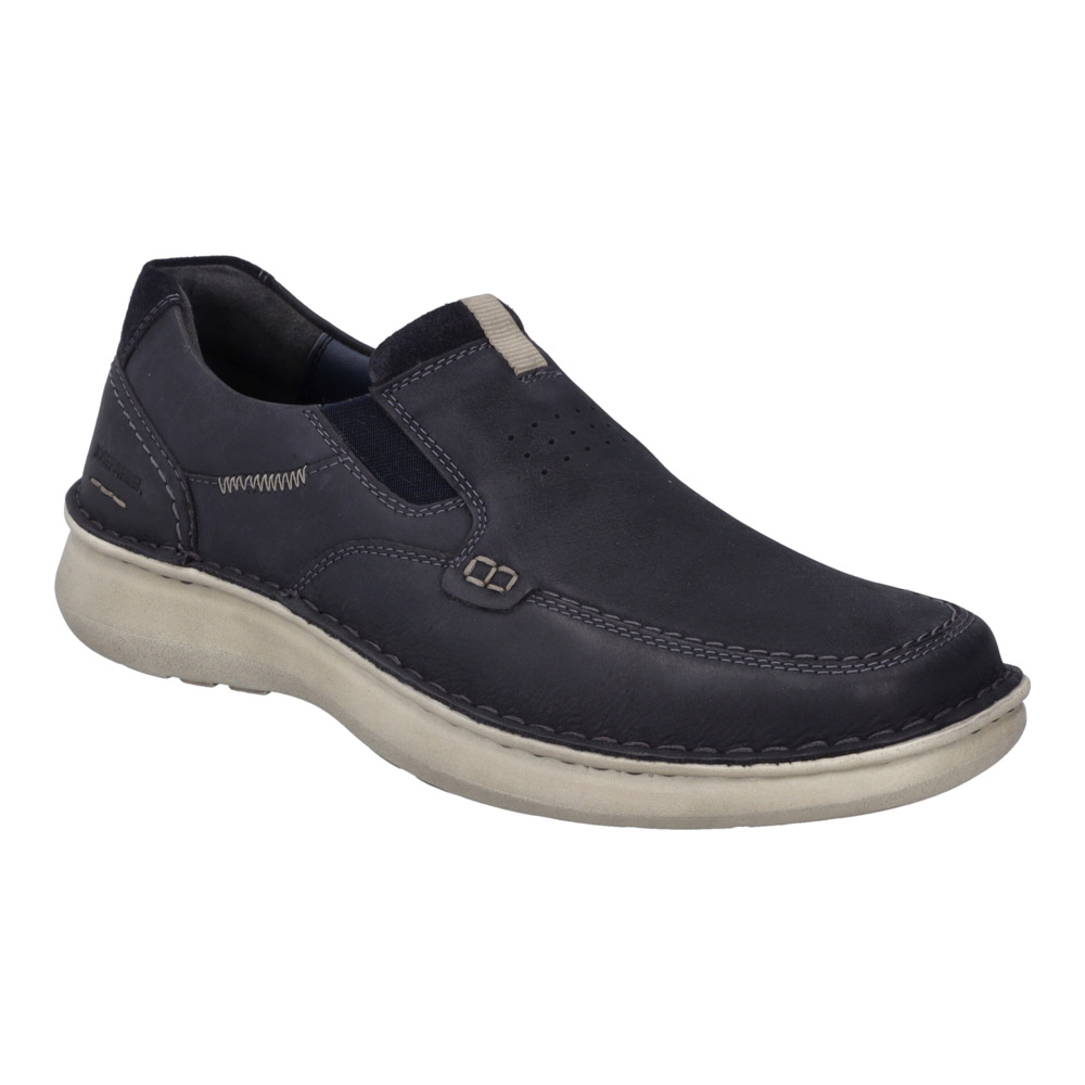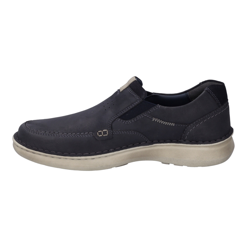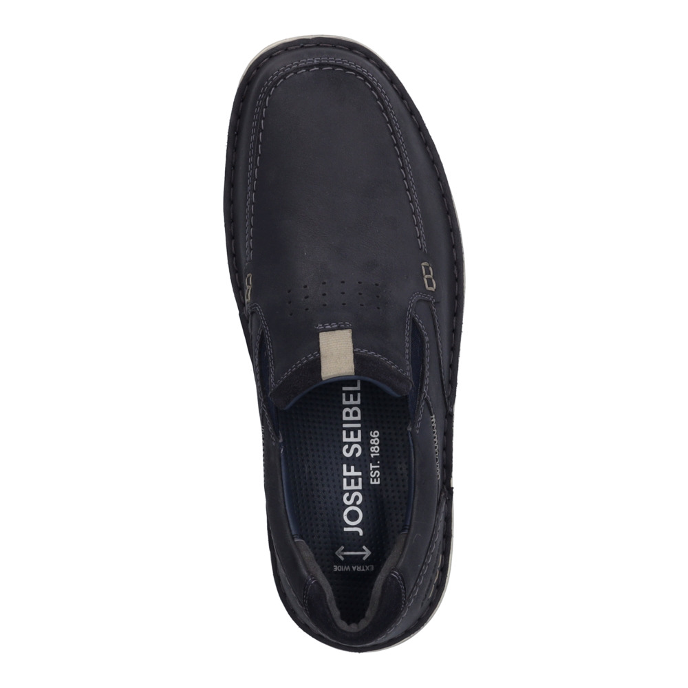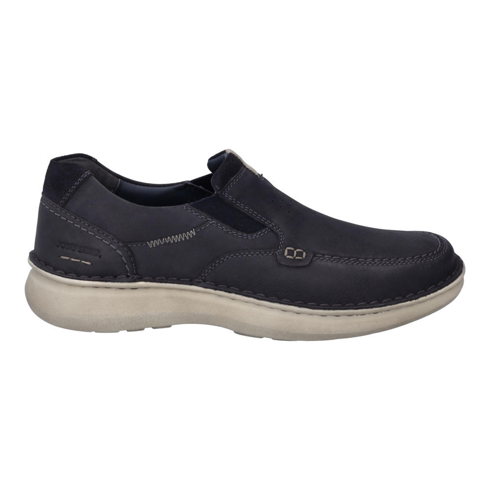Pánské černé mokasíny Josef Seibel. Po snadnější obouvání je z boku boty všitá pružná gumička. Vyjímatelná stélka s koženým povrchem tlumí nárazy a poskytuje dlouhotrvající komfort. Podešev je vyrobena z kvalitního syntetického materiálu.