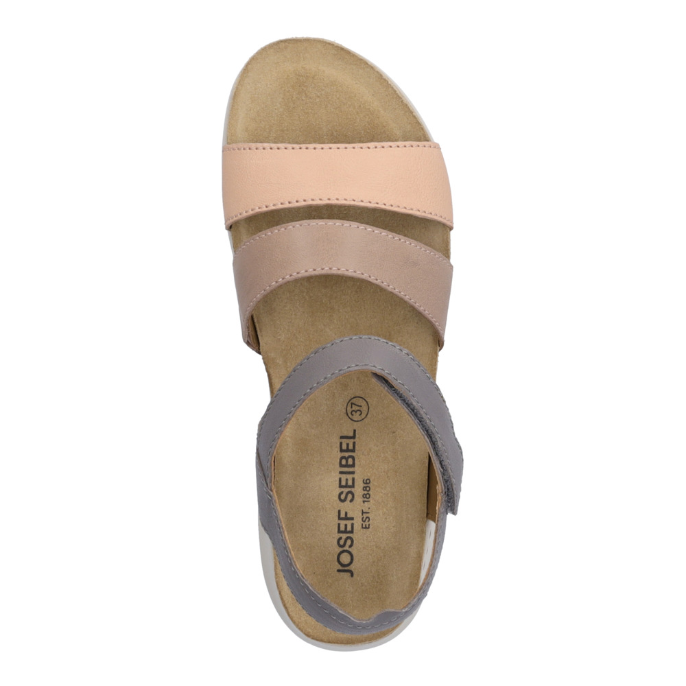 Dámské sandály z kůže značky Josef Seibel. Svrchní materiál tvoří hladká kůže. Obuv má velmi měkkou koženou stélku. Josef Seibel vyrábí boty již více než 130 let ručně, většinou v Evropě. Jejich boty jsou kožené. Díky tomu je obuv z kůže prodyšná a umožňuje noze dýchat.