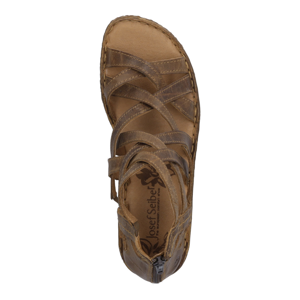 Dámské kožené sandály hnědé barvy značky Josef Seibel. Uvnitř obuvi příjemná kožená stélka. Na patě zip pro snadnější obouvání. Obuv je lehká a flexibilní.