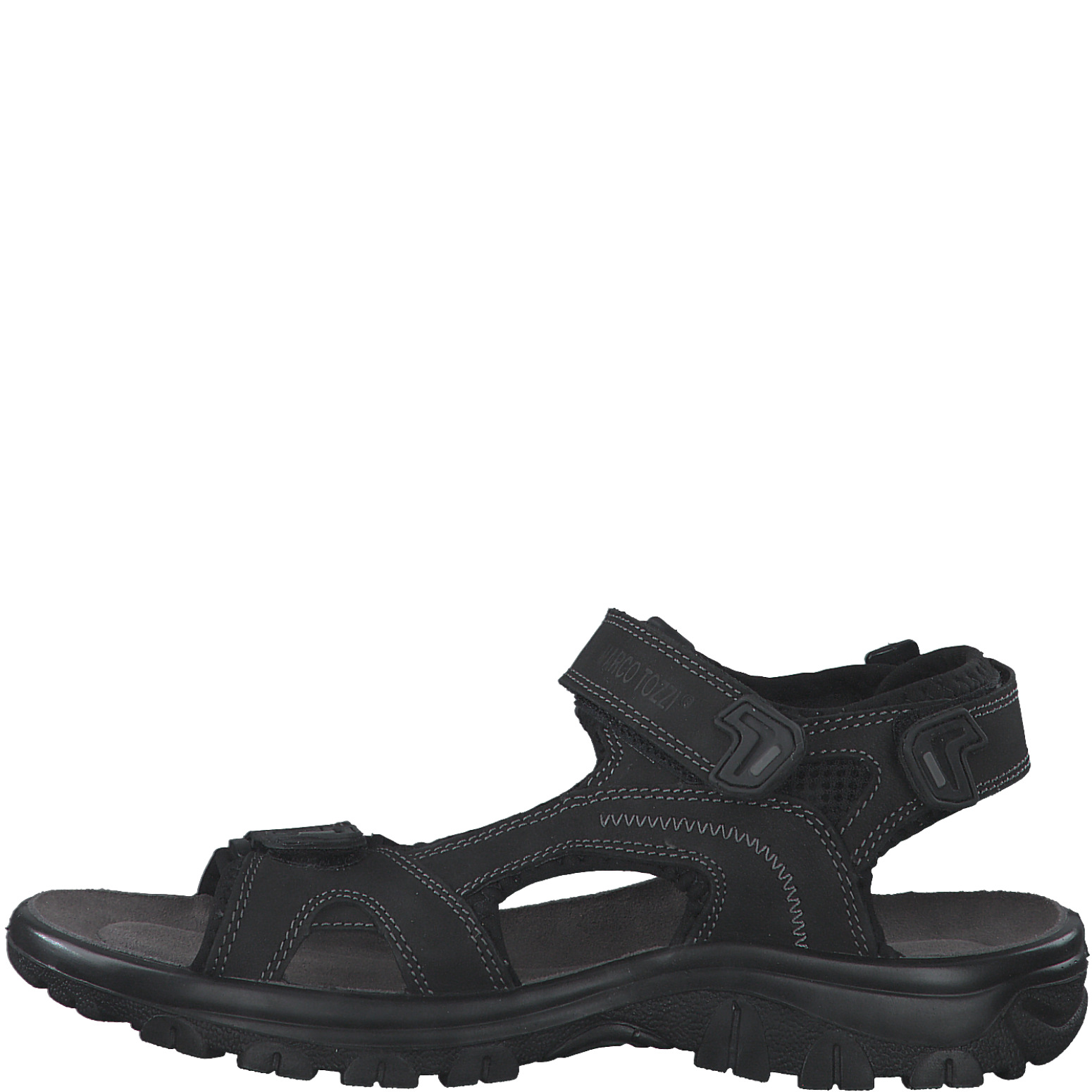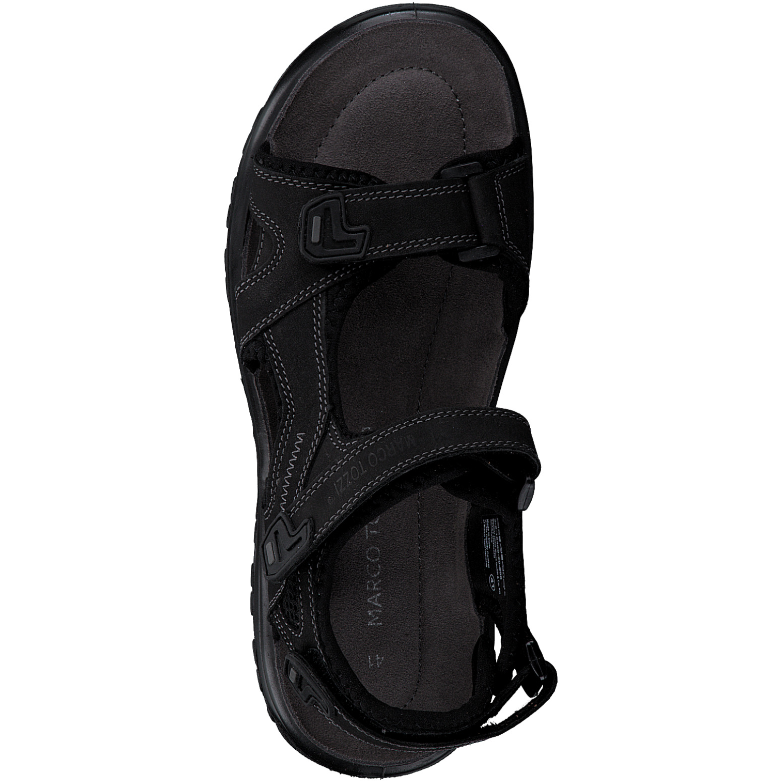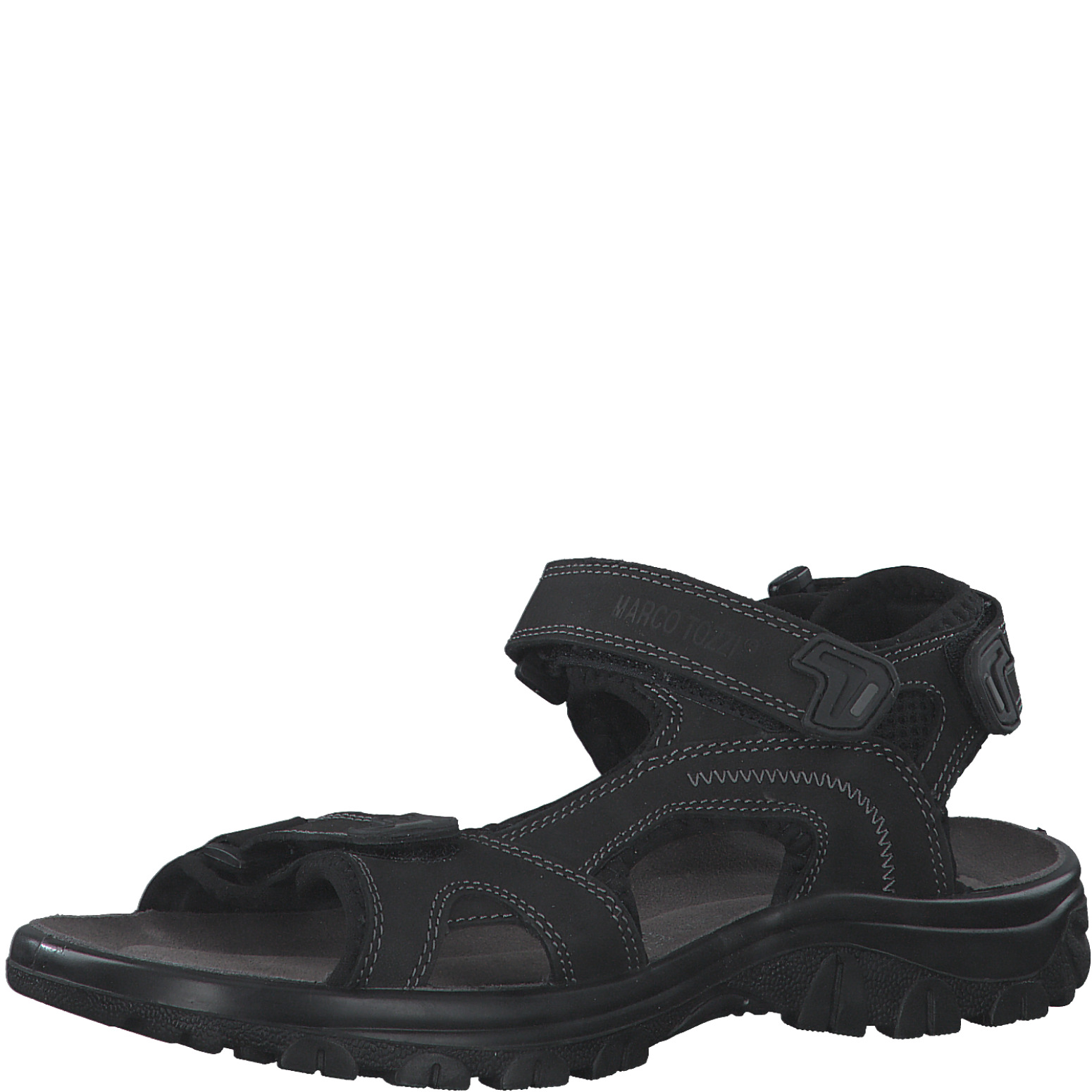 Pánské černé sandály se díky zapínání na suchý zip přizpůsobí šířce a délce chodidla a výšce nártu. Svrchním materiálem je kůže a textil. Kožená polstrovaná stélka je velice pohodlná. Flexibilní podešev zajistí pohodlí při chůzi.