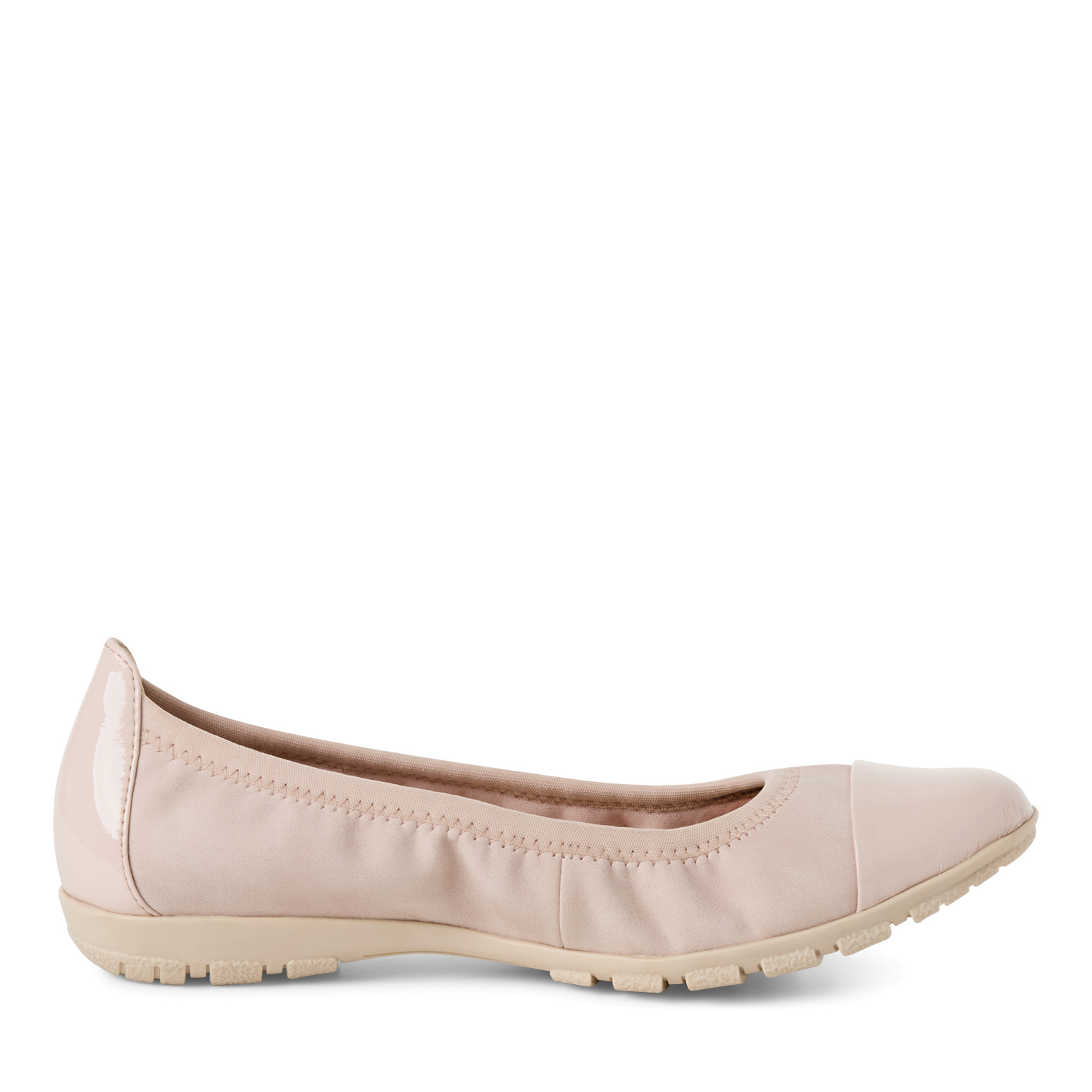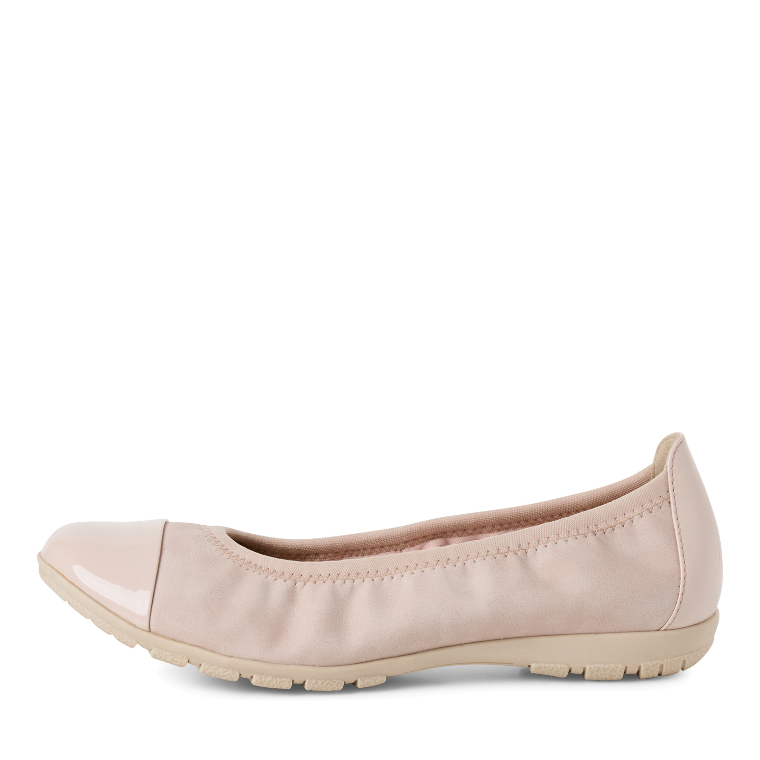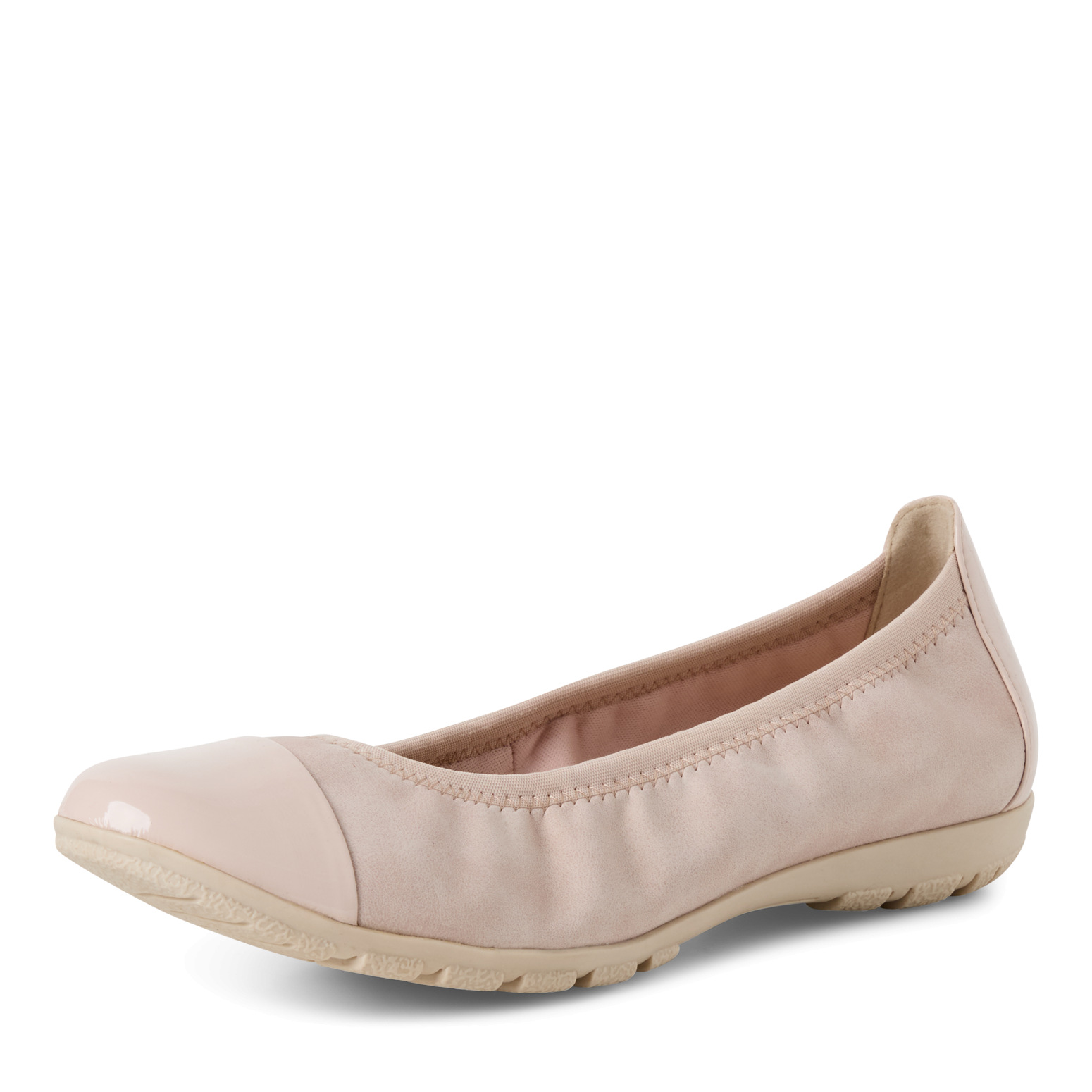 Elegantní dámské baleríny v jemné růžové barvě značky Marco Tozzi. Svrchním materiálem je syntetika. Hladký vzor s lesklou špičkou tvoří nadčasový vzhled. Textilní podšívka nabízí komfort a prodyšnost. Vyměkčená stélka zajišťuje měkký došlap a komfort při nošení. Podešev je vyrobená z kvalitního syntetického materiálu.