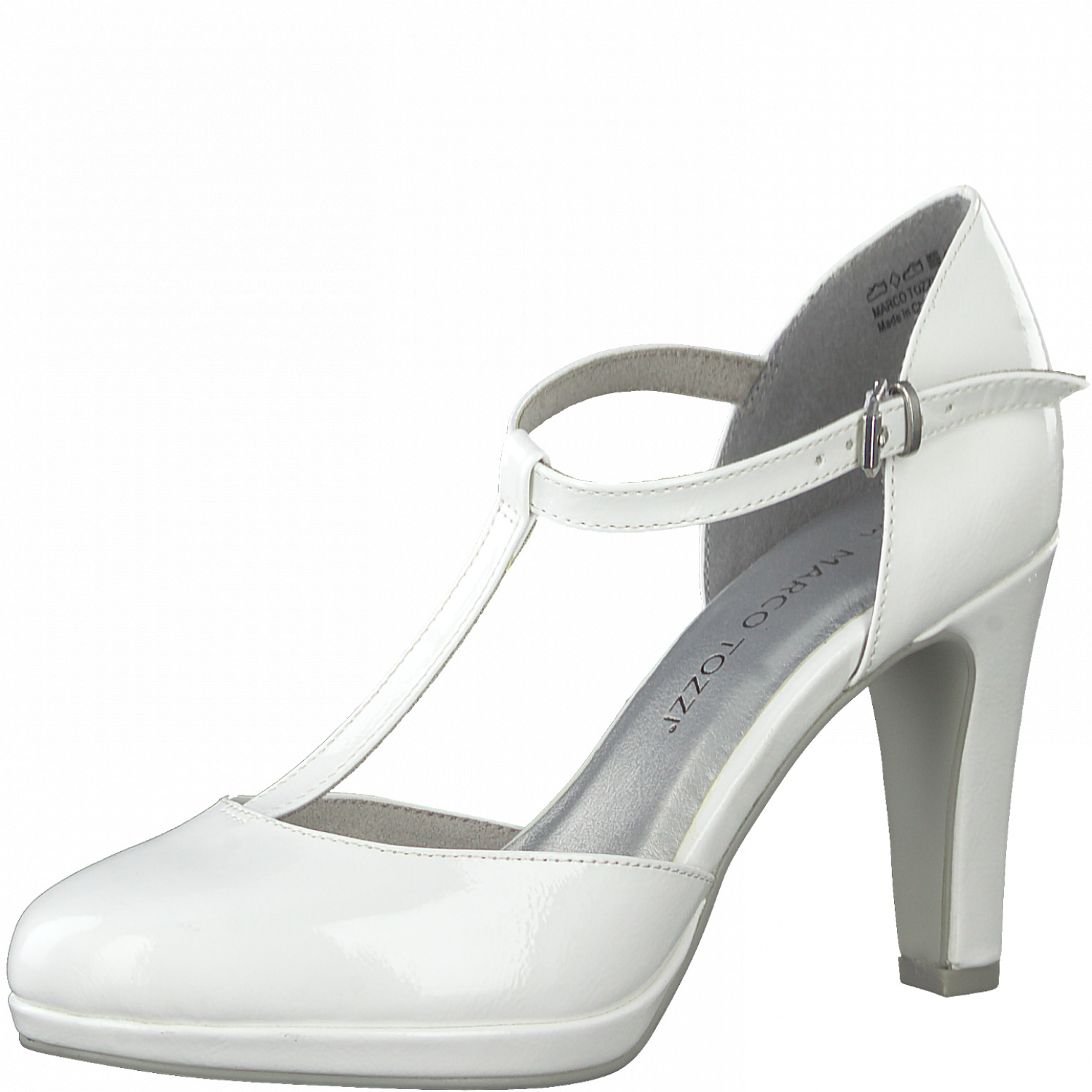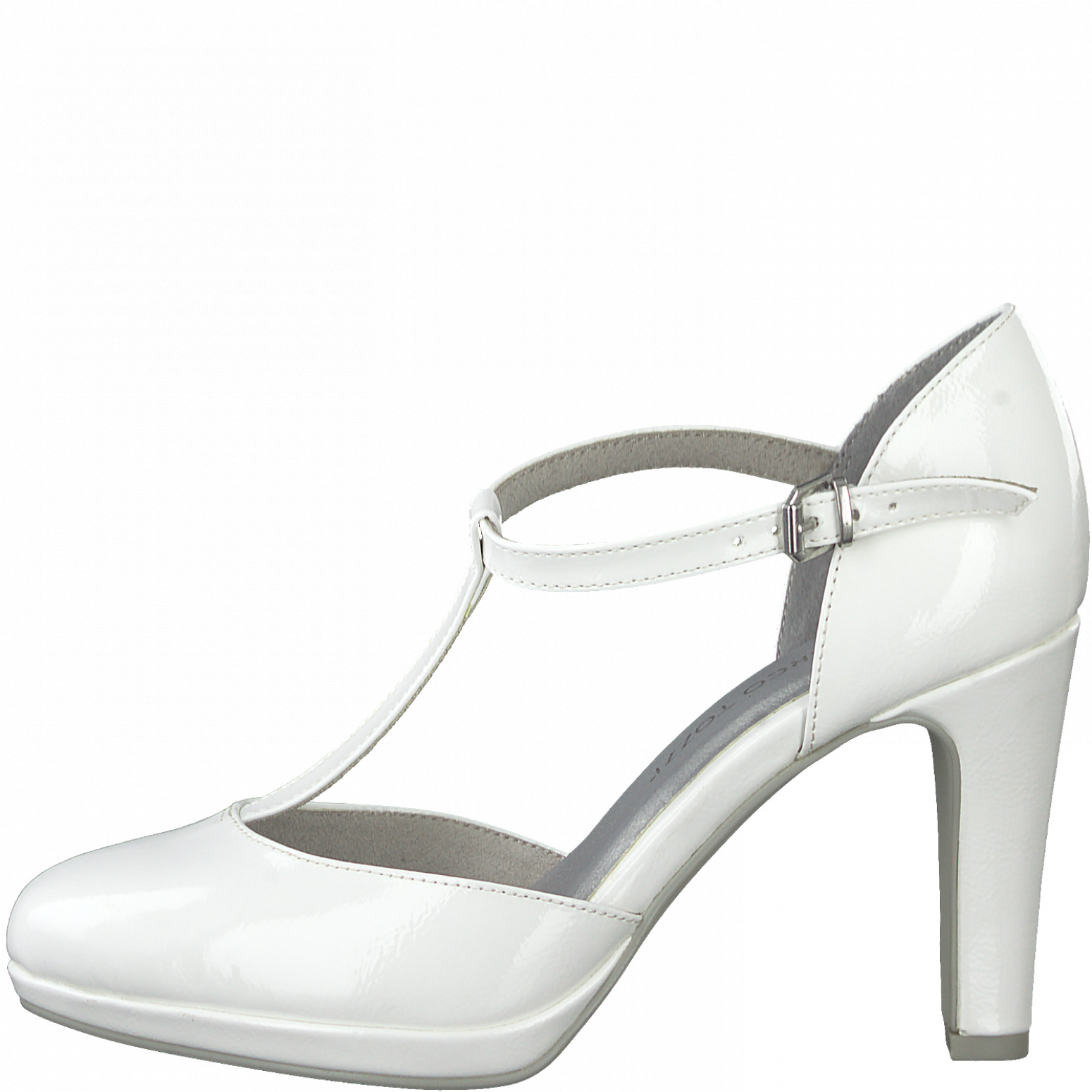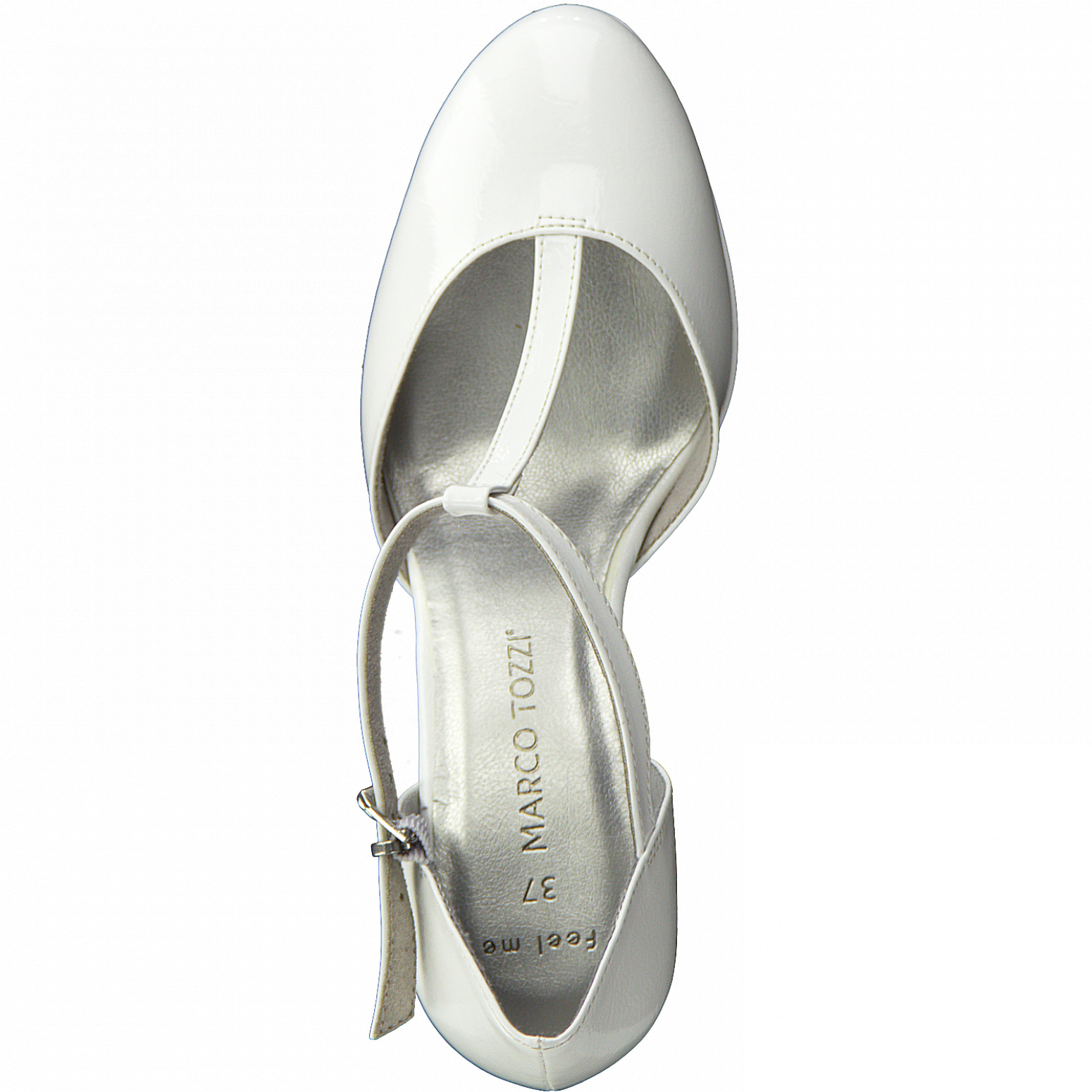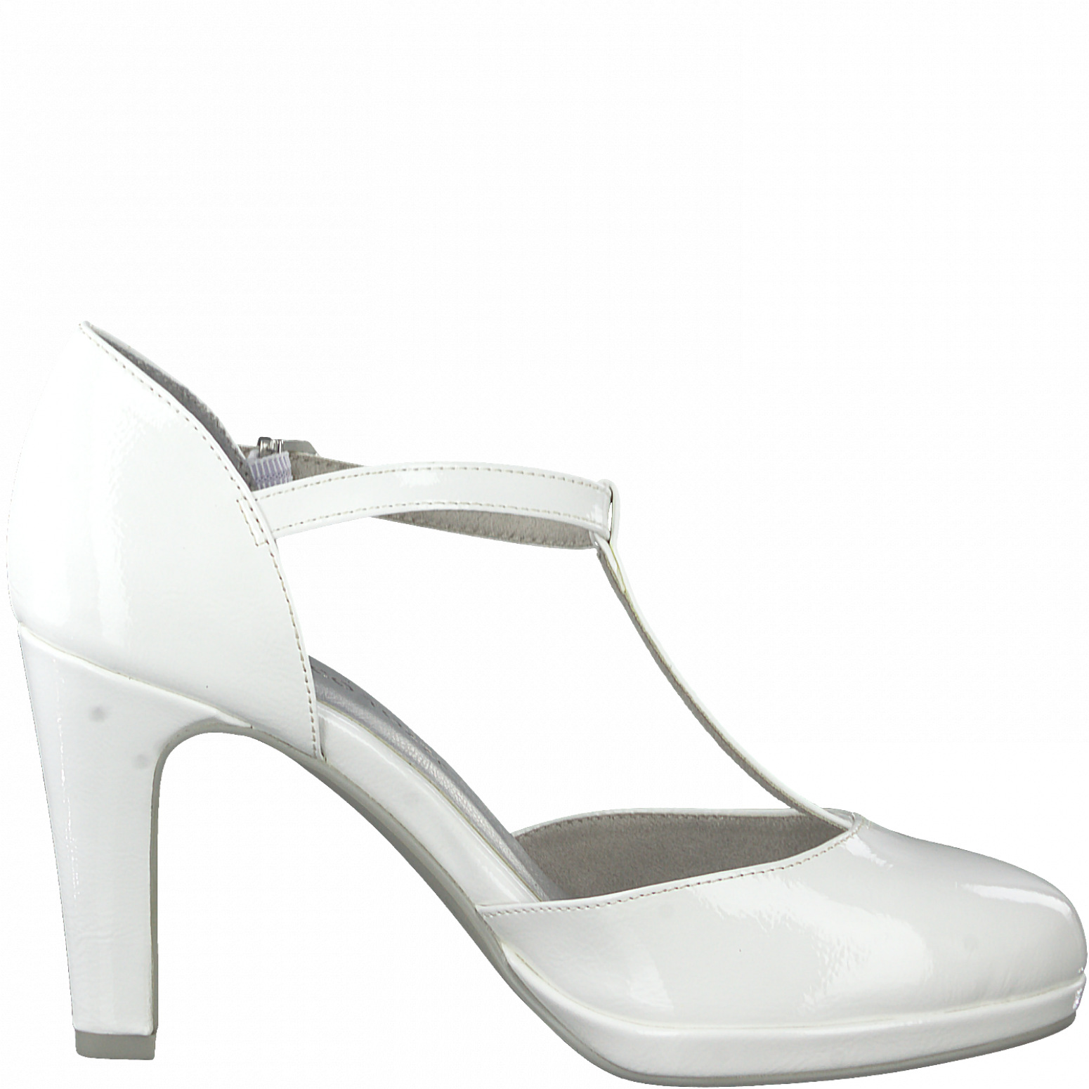 Dámské společenské bílé lodičky na podpatku. Svršek je vyroben ze syntetické kůže v lakovém provedení. Pro příjemný došlap mají lodičky vyměkčenou stélku feel me.