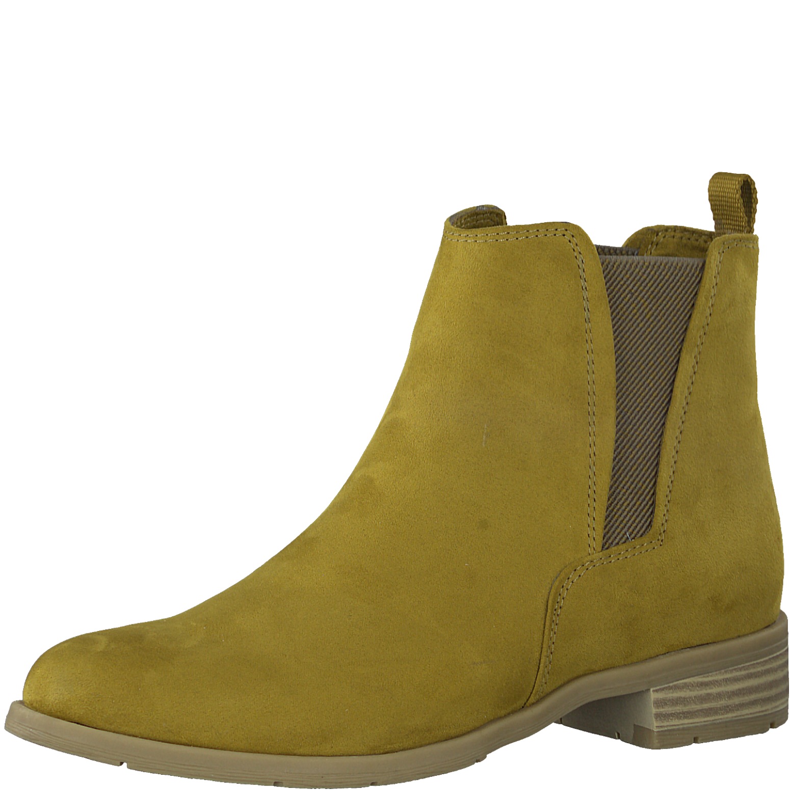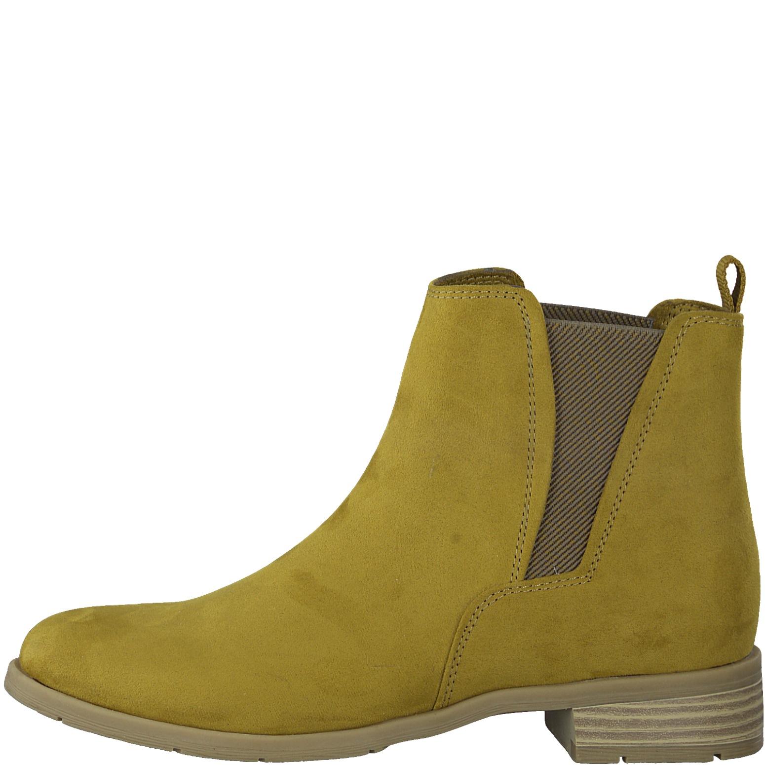 Dámské žluté/hořčicové kotníčkové boty na menším podpatku. Podešev je z kvalitního syntetického materiálu. Elegantní a pohodlná obuv.