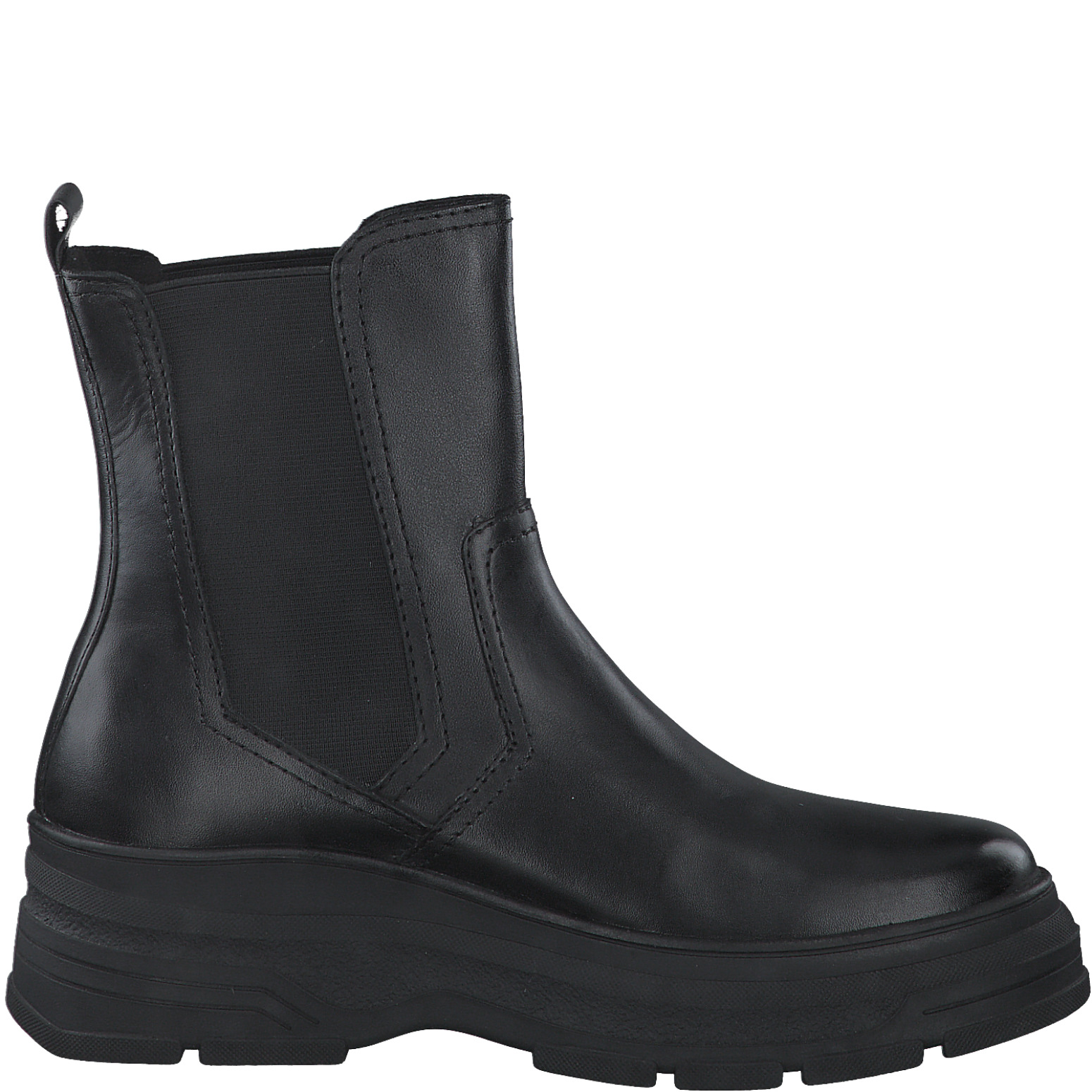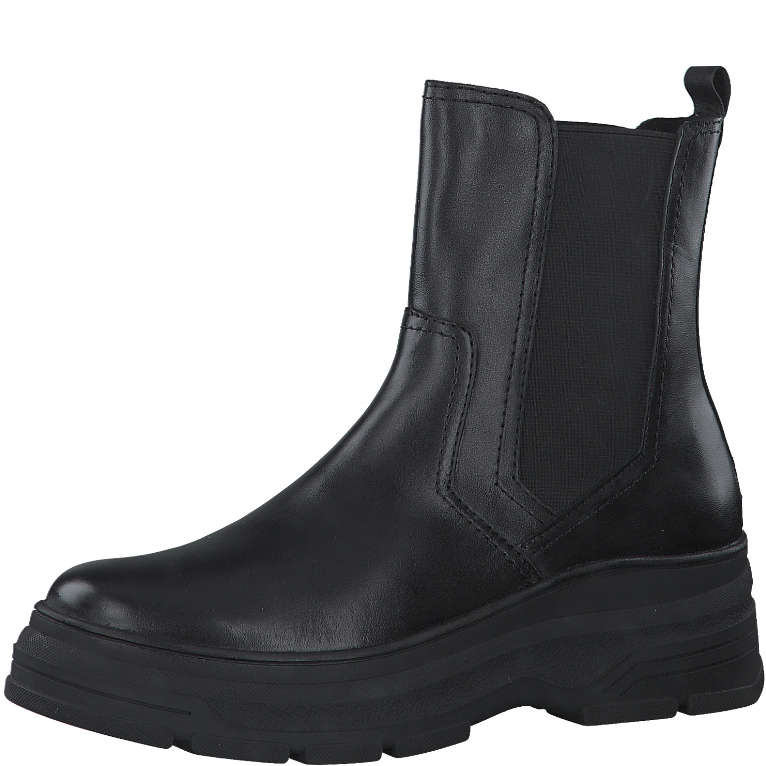 Dámská zimní boty na klínku značky Marco Tozzi v černé barvě. Svršek obuvi je vyroben z kůže. Obuv je zeteplená nízkým vlasem. Podešev je vyrobena z vysoce kvalitního materiálu.