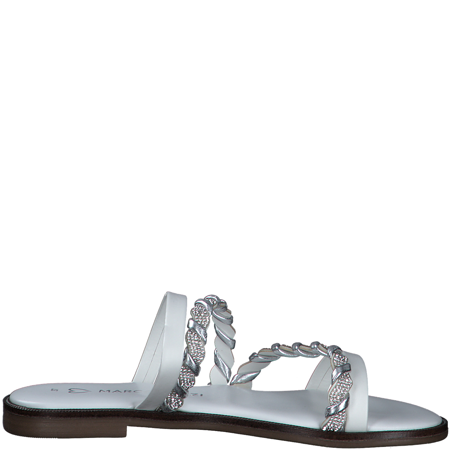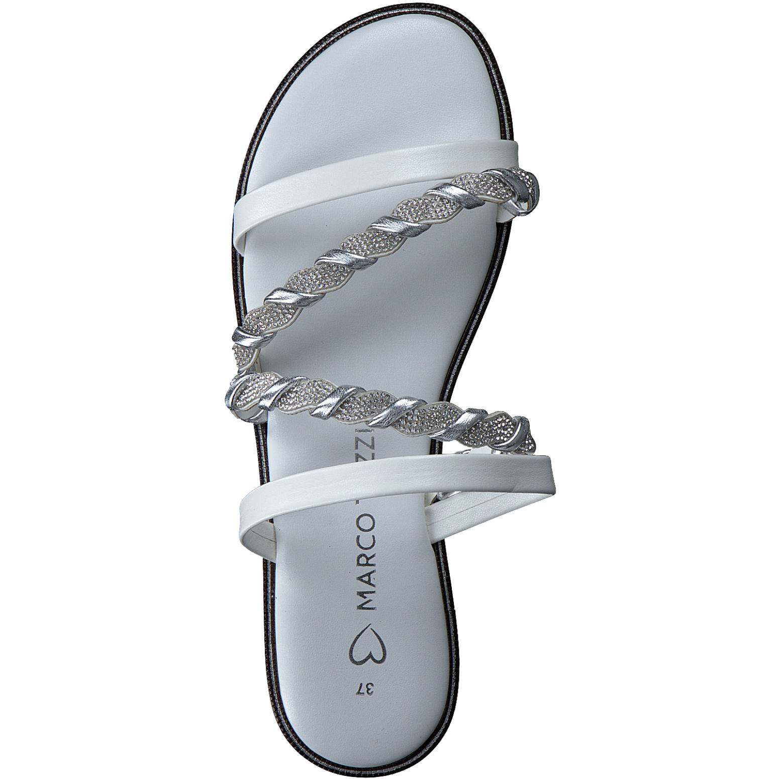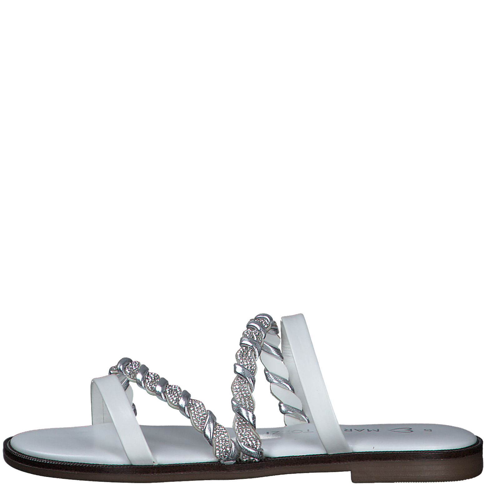 Dámské nazouváky Marco Tozzi v bíle barvě zdobené kamínky. Svrchním materiálem je kombinace syntetiky a textilu. Menší podpatek zajišťuje dokonalou stabilitu.
