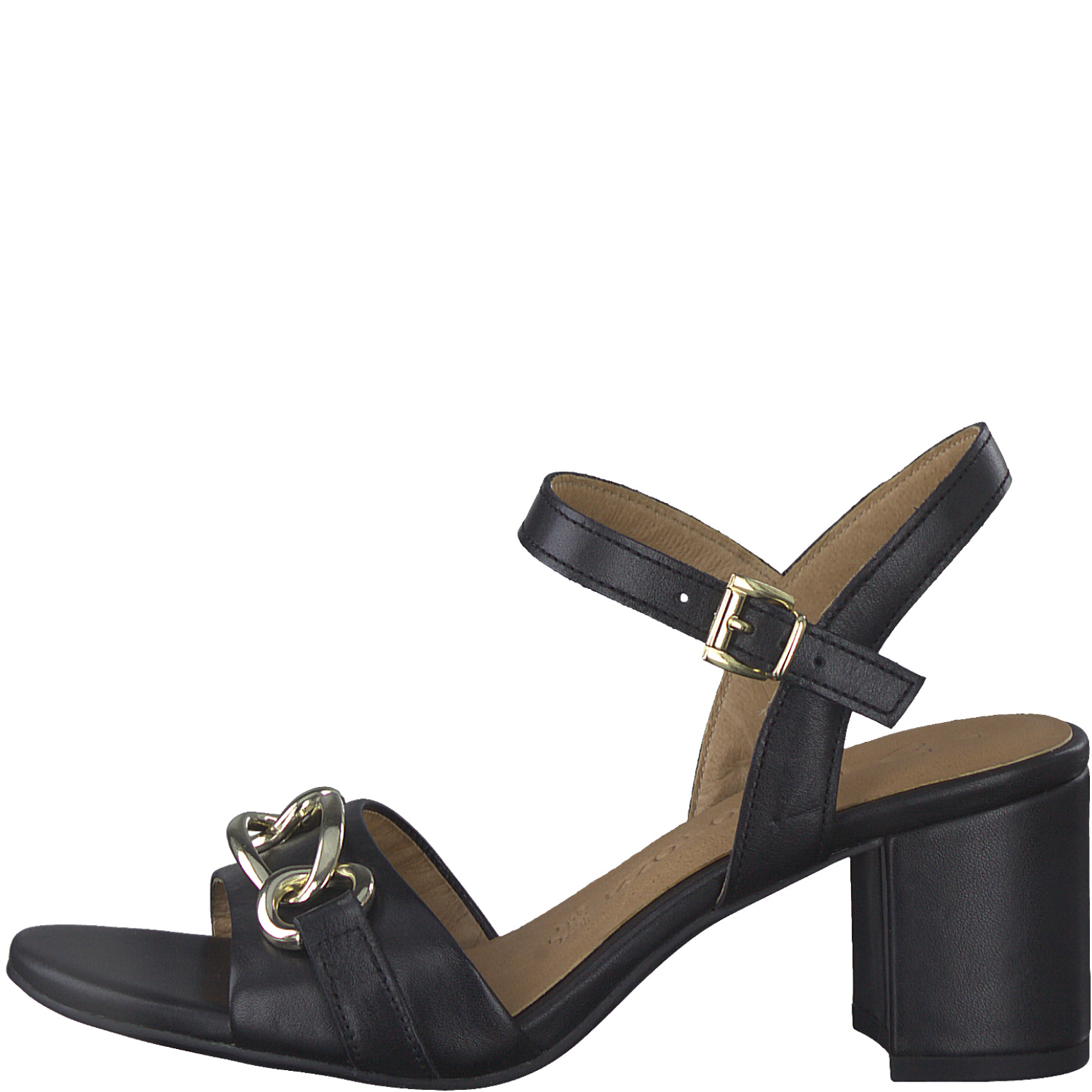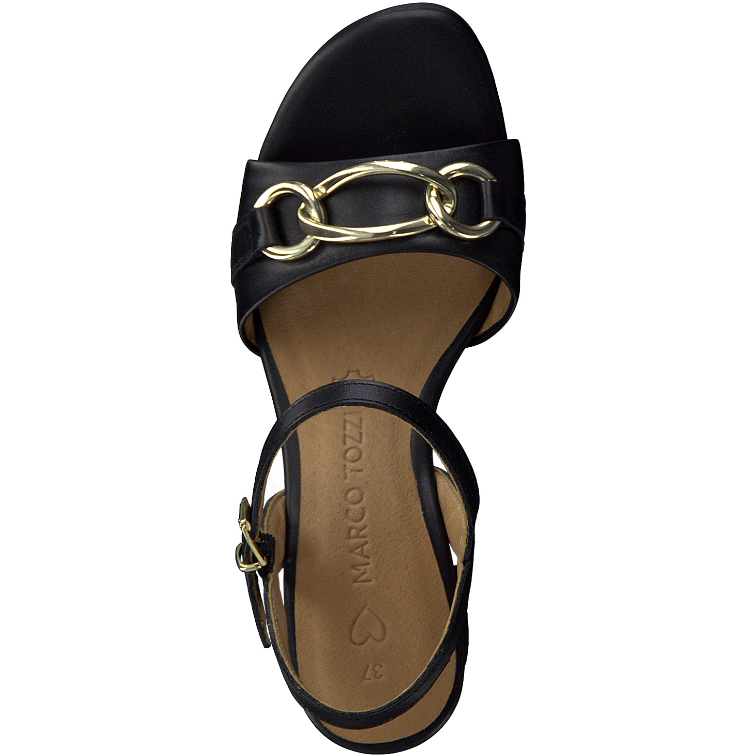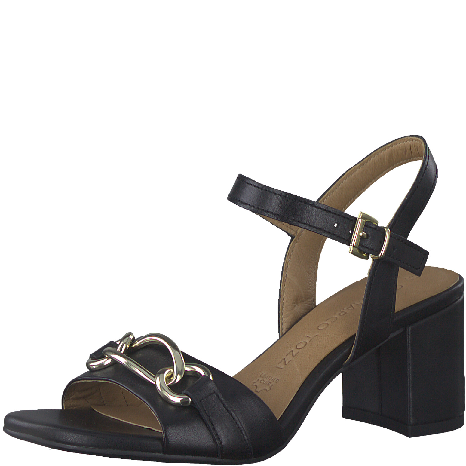 Dámské černé sandály na podpatku Marco Tozzi. Snadno udržovatelným svrchním materiálem je kůže. Boty s blokovým podpatkem jsou ideální volbou, pokud se nechcete vzdát stylu ani pohodlí. Široký podpatek zajišťuje perfektní stabilitu.