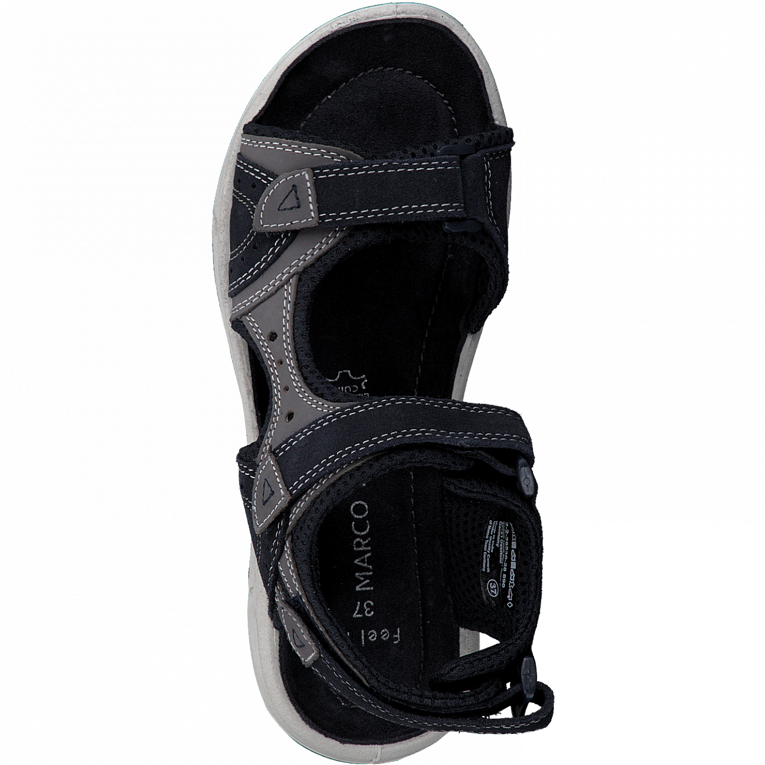 Modré sandály se zapínají na suchý zip a dají se přizpůsobit výšce nártu a šířce chodidla. Obuv má velmi měkkou koženou stélku, která zajistí maximální pohodlí při chůzi. Podešev je flexibilní.