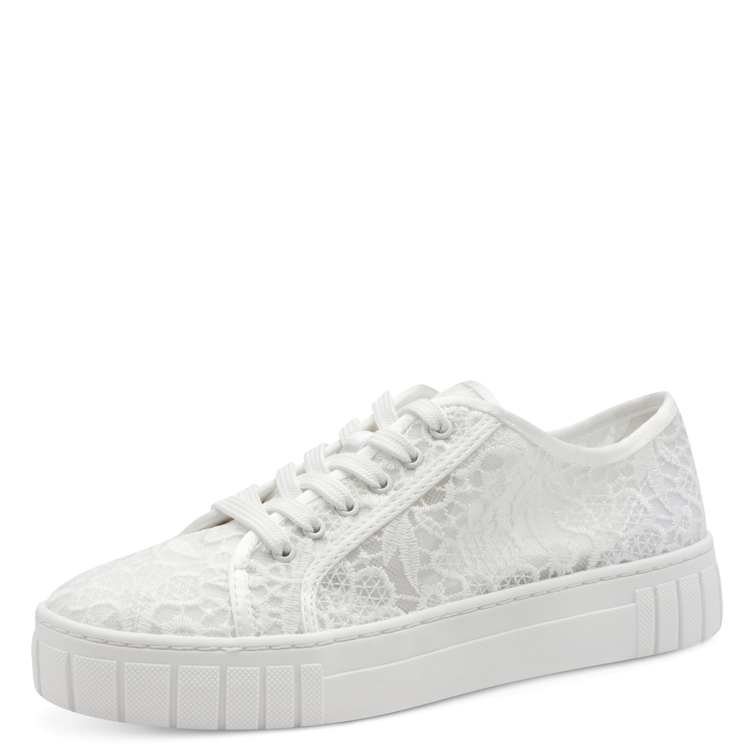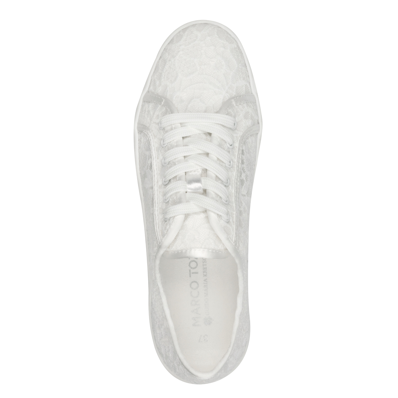 Dámské krajkové tenisky v bílé barvě značky Marco Tozzi. Svršek obuvi je textilní. Uvnitř měkčená stálka MT FEEL ME. Obuv je ideální do horkých letních dnů.