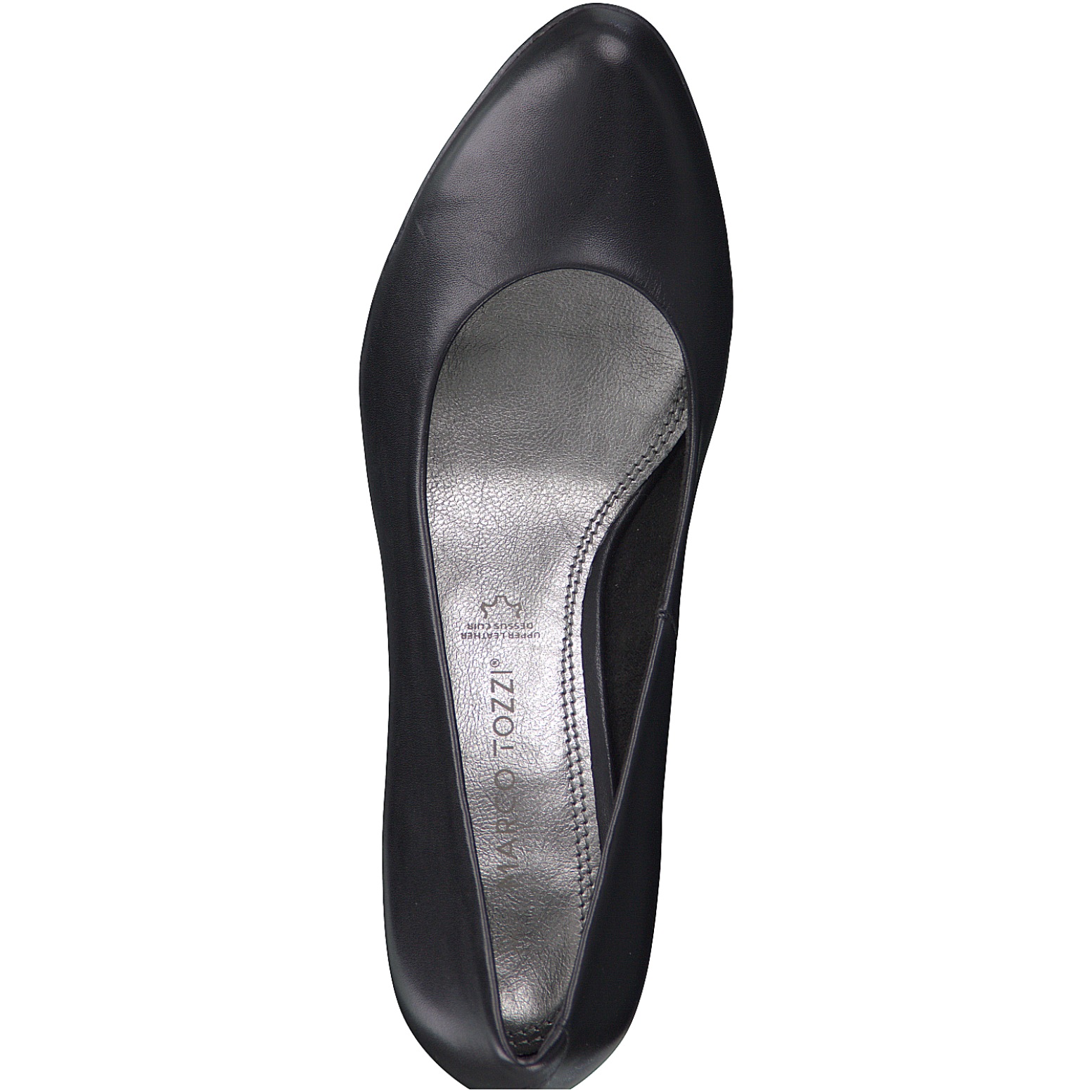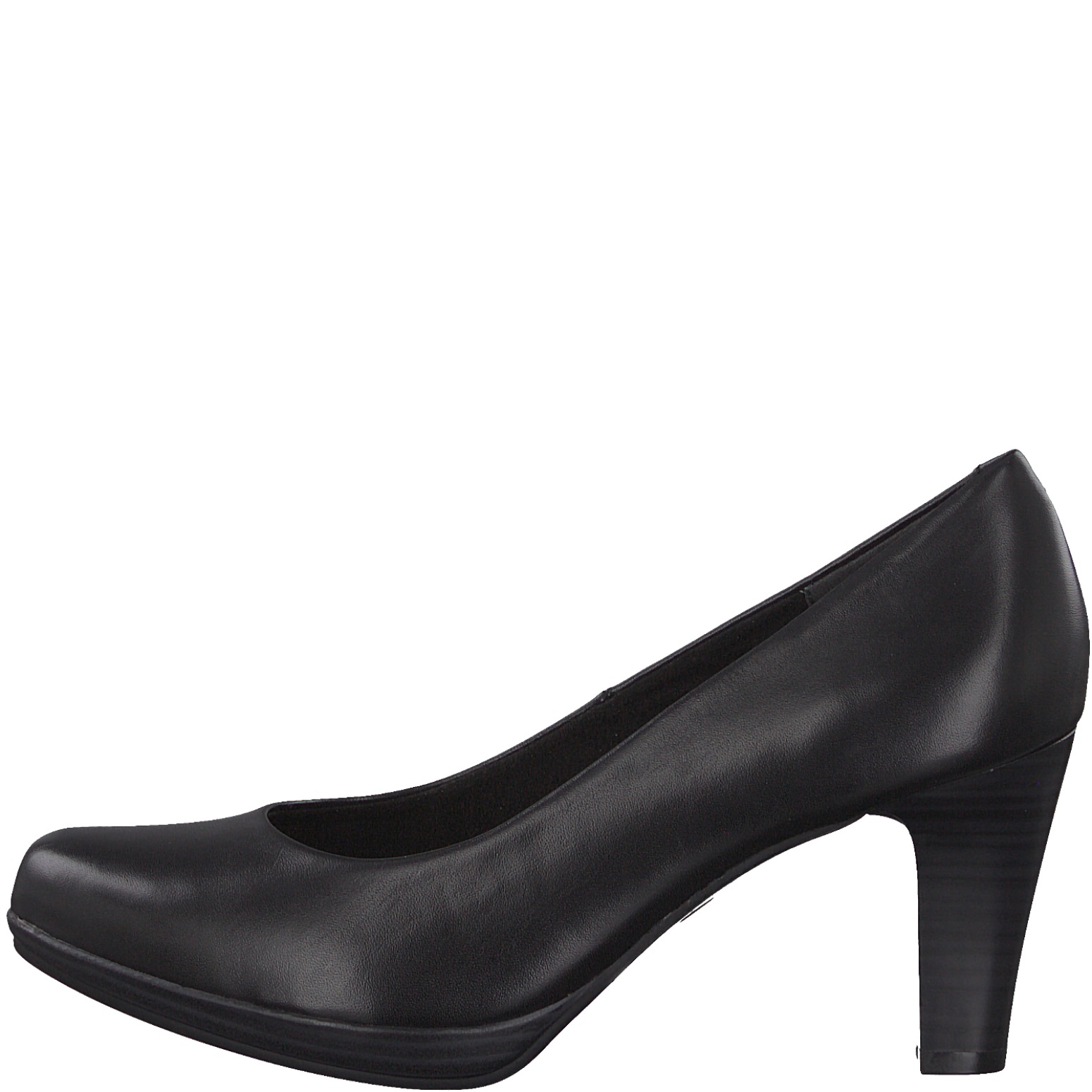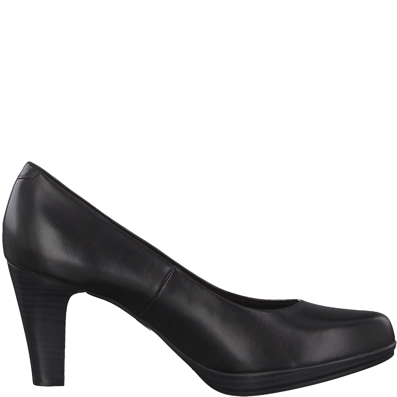 Dámské světle černé kožené lodičky na pohodlné platformě jsou ideální ke každodennímu nošení. Vděčí za to nejen pěnové stélce změkčující došlap, ale i podpatku s odpružením antishokk, jež tlumí nárazy na páteř. Podešev obuvi je s jemným protiskluzovým vzorkem vyrobená ze syntetického materiálu.