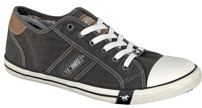 Šedé šněrovací tenisky od značky Mustang. Svršek i podšívka jsou vyrobené z textilního materiálu. Podešev je flexibilní s gumovou špičkou. Obuv vhodná na každodenní nošení.