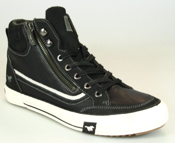 Pánské kotníkové tenisky v černé barvě značky Mustang. Svrchním materiálem je syntetika. Z vnější strany obuvi zip pro snadnější obouvání. Obuv je lehce zateplená - vhodná na podzim nebo mírnější zimu.