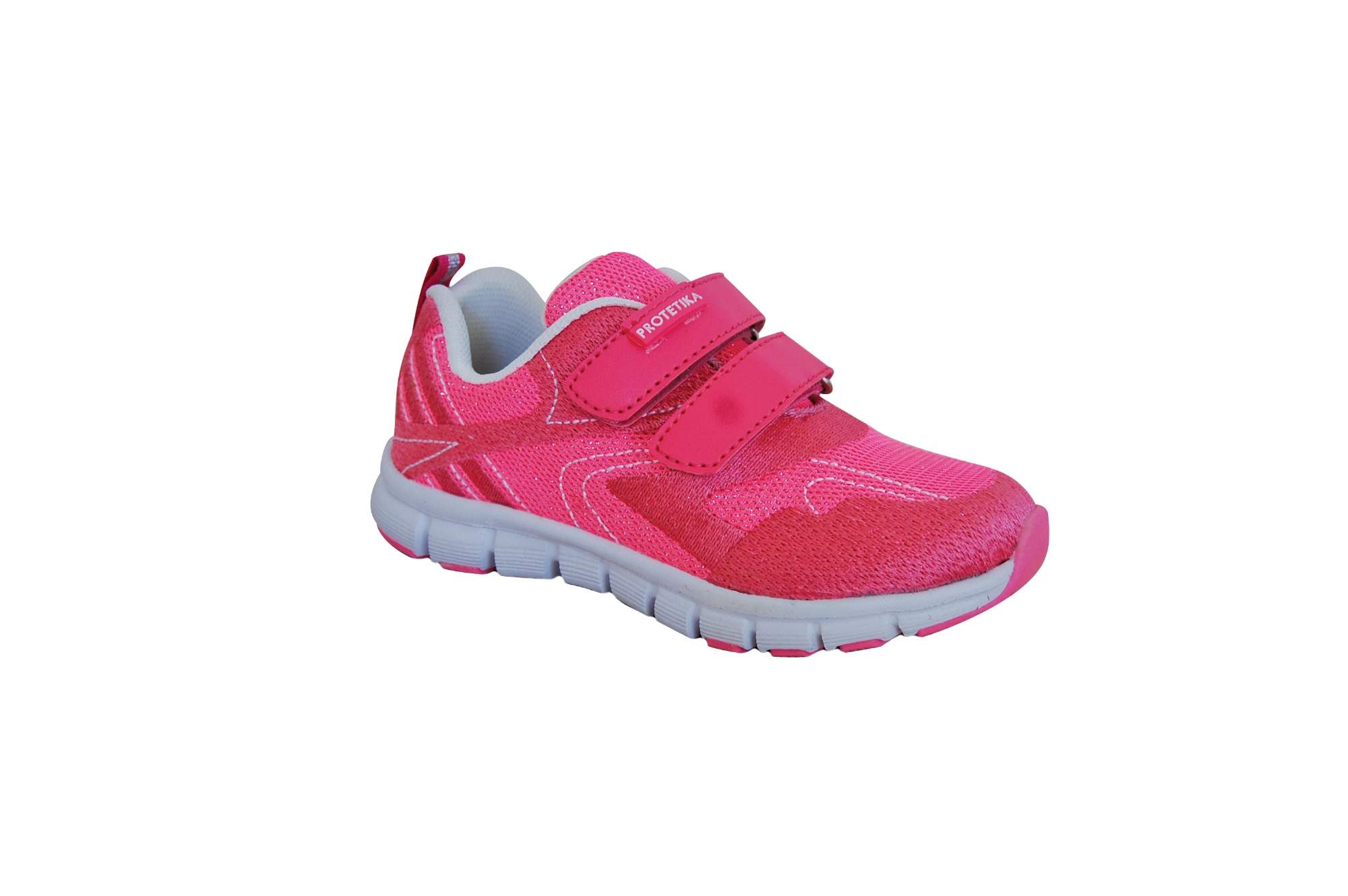 Dívčí textilní tenisky v růžové barvě se zapínáním na dva suché zipy. Jsou vyrobeny z přírodní kůže a textilu. Obuv má vyjímatelnou tvarovanou stélku a je velmi lehká, vhodná do haly (bílá podrážka) i na ven.