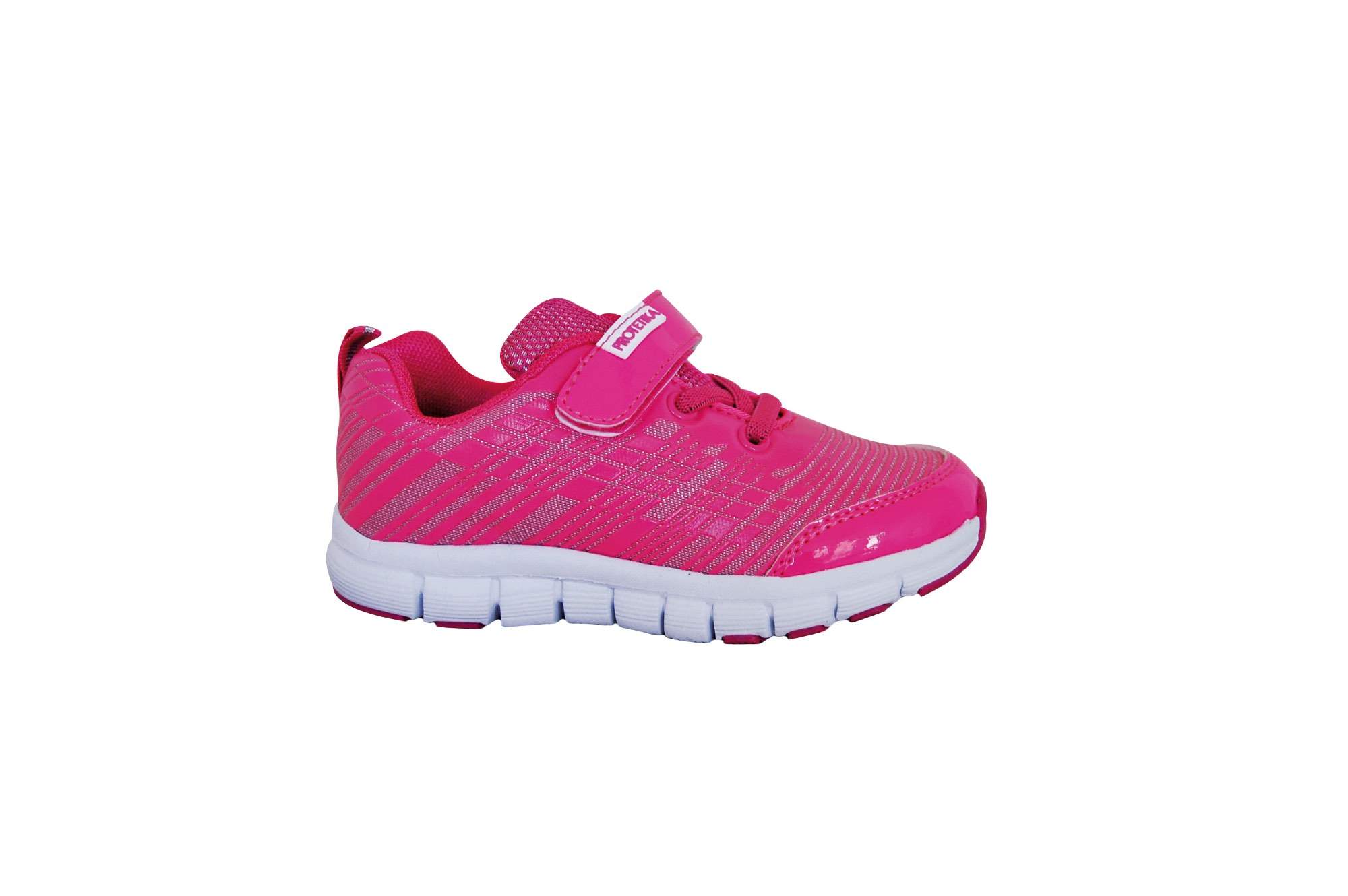 Dívčí tmavě růžové sportovní tenisky mají svršek z prodyšné textilie. Mají anatomicky tvarovanou vyjímatelnou měkčenou koženou stélku. Flexibilní podrážka nezanechává šmouhy, a proto je vhodná do haly. Obuv je zdravotně nezávadná.
