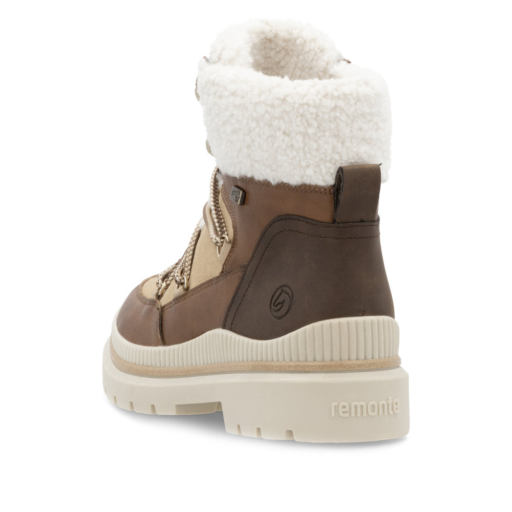 Obuv REMONTE – jedná se o vyšší řadu značky RIEKER. Tato obuv se vyznačuje vynikající kombinací svrchních materiálů. Tyto hnědé kotníkové boty Rieker jsou kouskem, který zaručeně přitáhne Vaši pozornost svou barevnou kombinací svršku. Zdobené jsou decentním prošíváním, bílým kožíškem a logem značky. Vyjímatelná thermo stélka zadržující teplo a podšívka z pravé ovčí vlny zaručí, že Vám bude vždy teplo a příjemně. Boty jsou také nepromokavé a mají protiskluzové prvky na podešvi, což umožňuje bezpečnou chůzi i na kluzkém povrchu. Díky komfortní šířce budete mít v botě dostatek místa pro Vaše nohy. Tyto boty jsou ideální volbou pro ženy, které hledají stylovou a vysoce praktickou obuv na zimu, kterou mohou snadno sladit s jakýmkoli outfitem.