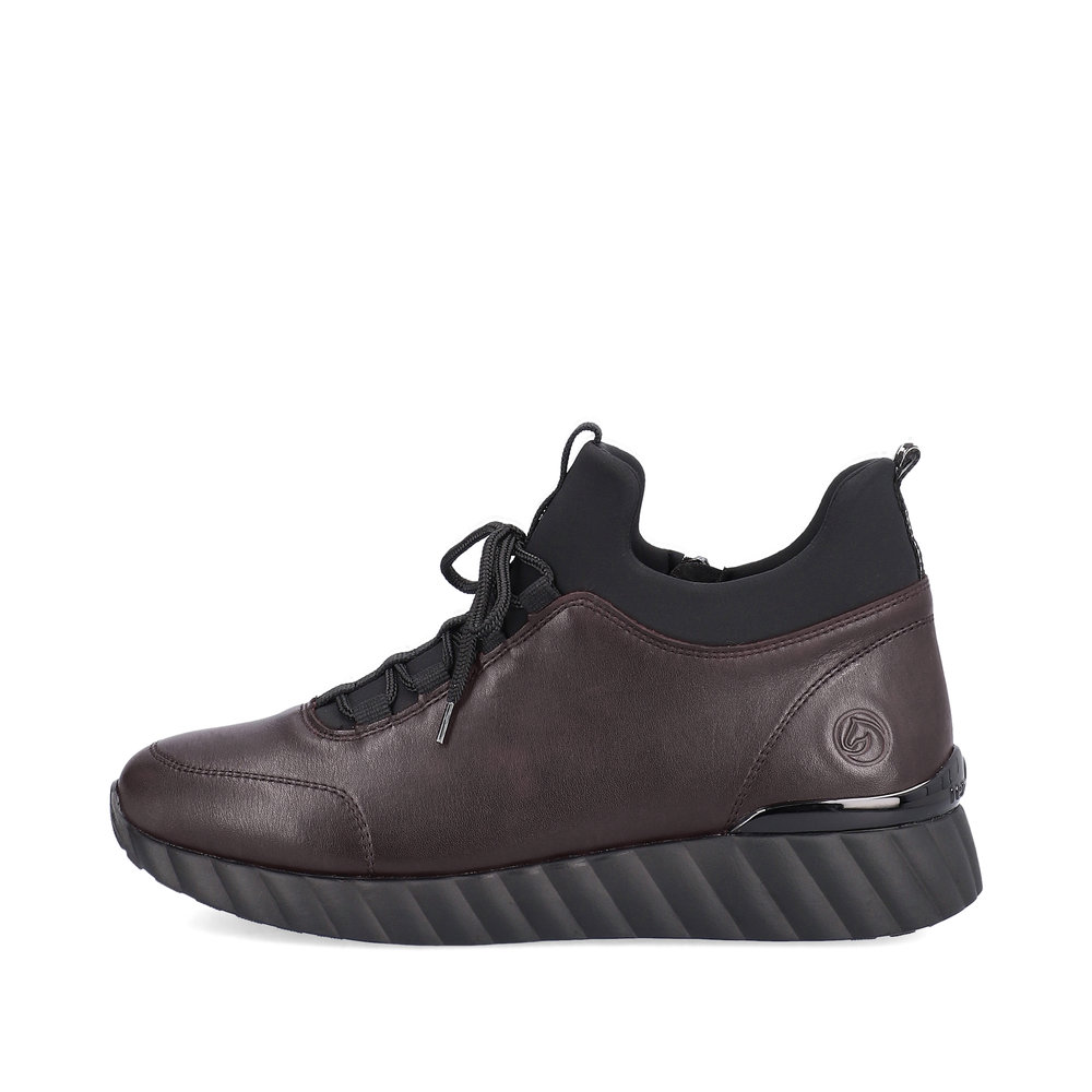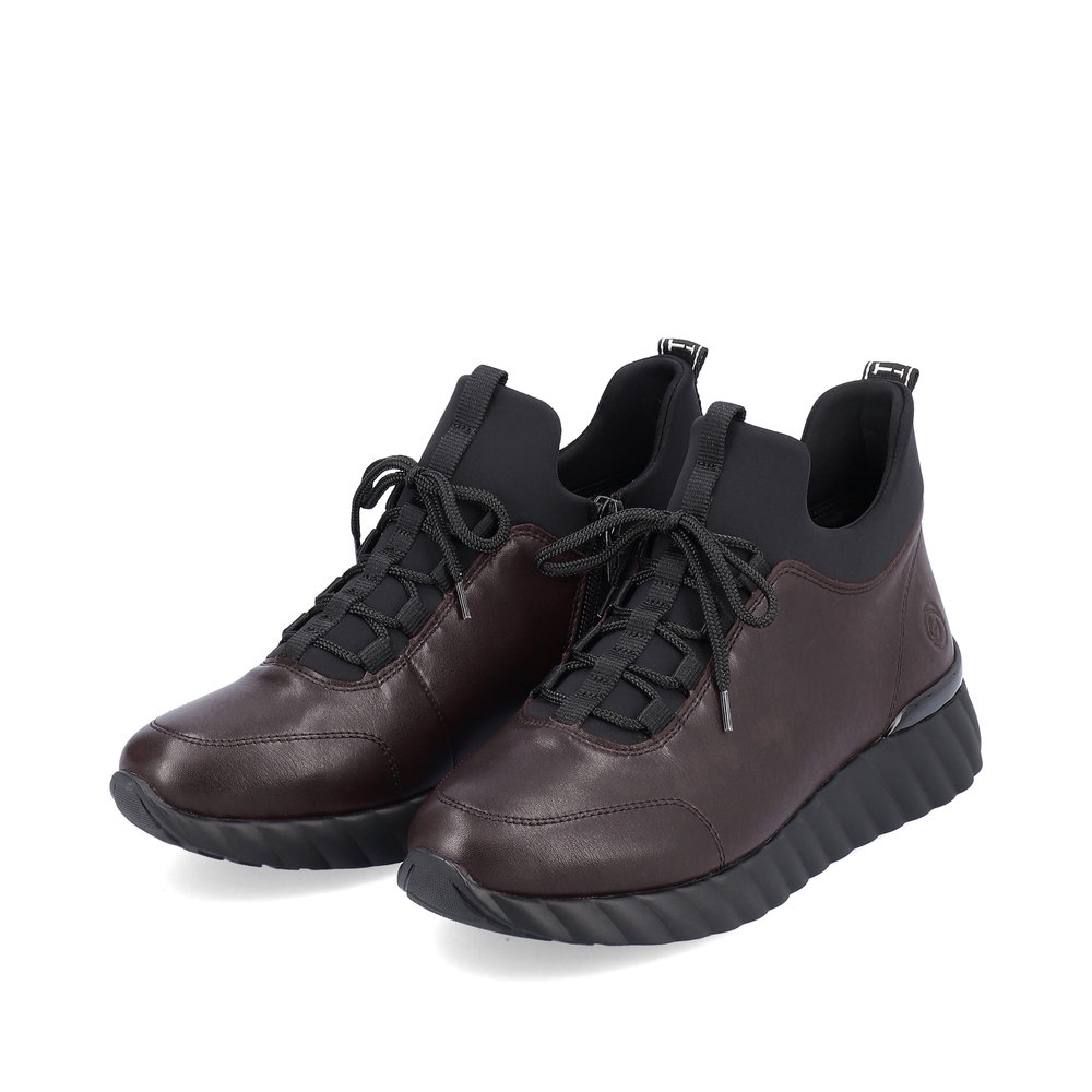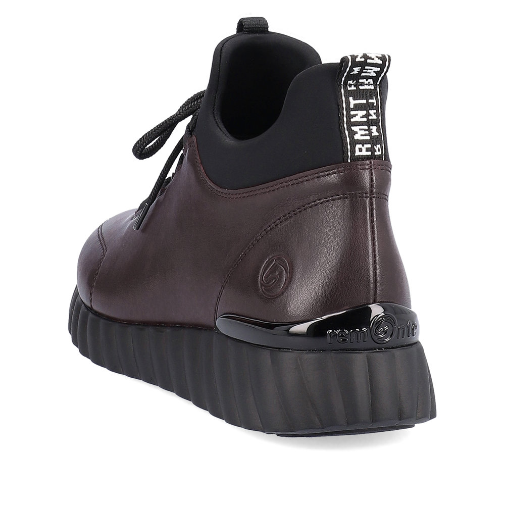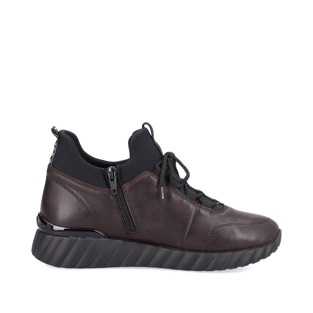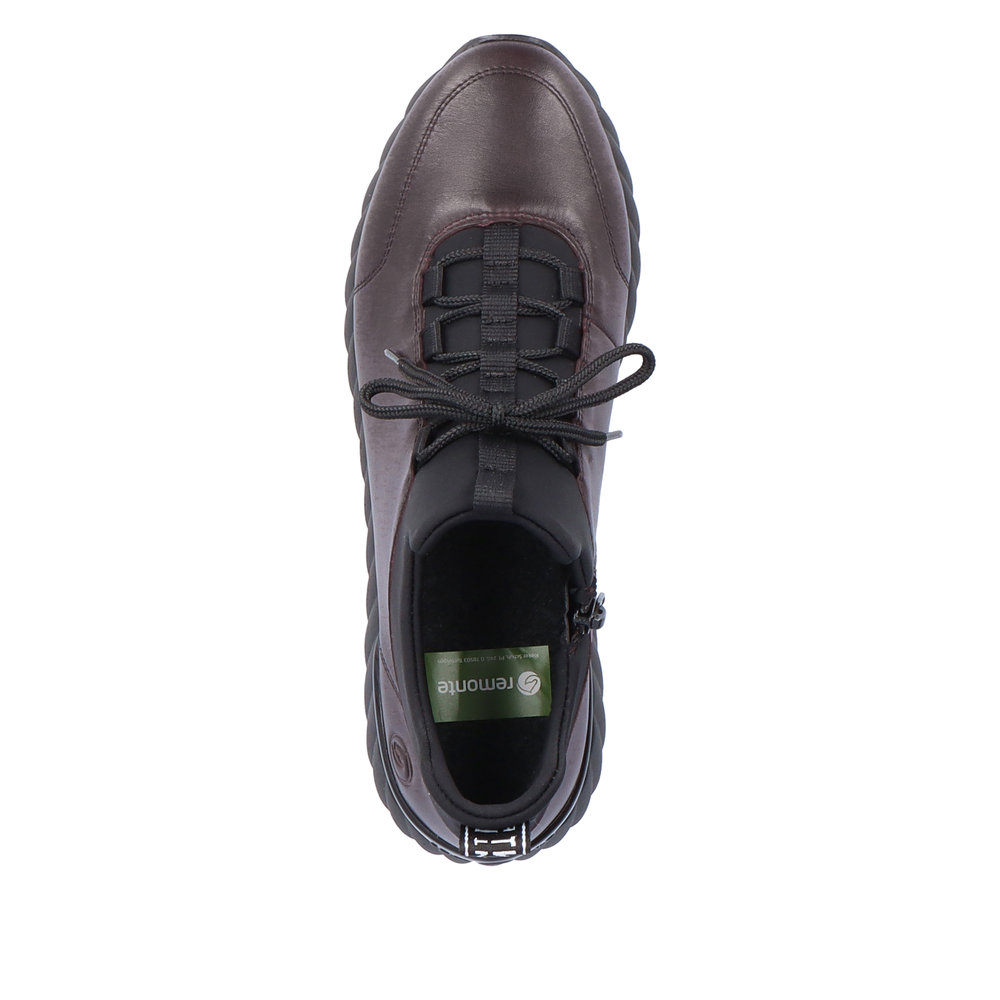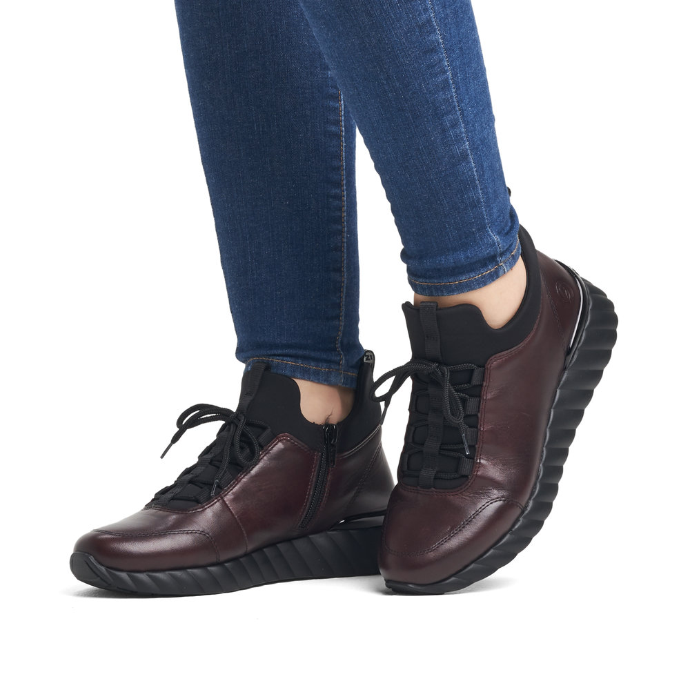 Dámské vínové tenisky značky REMONTE. Jedná se o vyšší řadu značky Rieker. Svrchním materiálem je kůže. Pro snadnější obouvání je z boku obuvi zip. Měkká vyjímatelná stélka je vyrobena z paměťové pěny. Obuv je zateplená příjemnou kožešinovou podšívkou. Podešev je díky technologii Antistress lehká, flexibilní, absorbuje nárazy při došlapu a snadno se přizpůsobí každé noze. Obuv vhodná pro každodenní nošení.