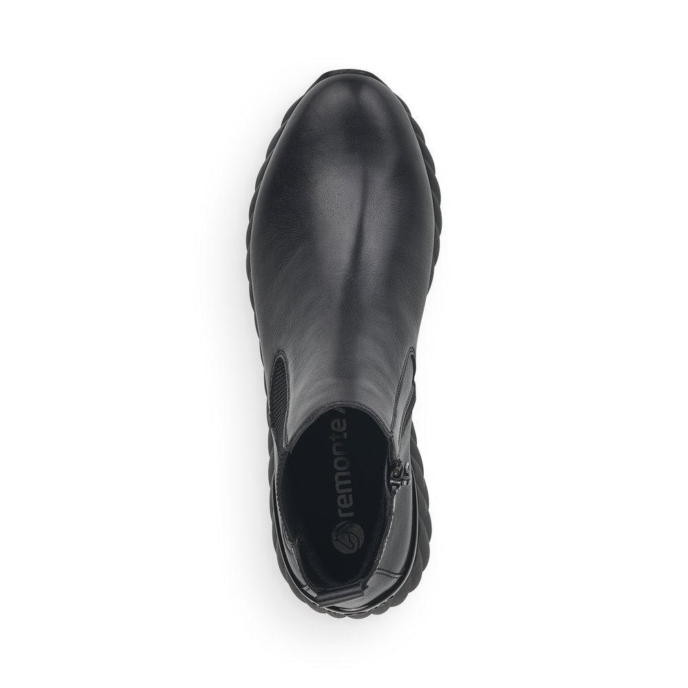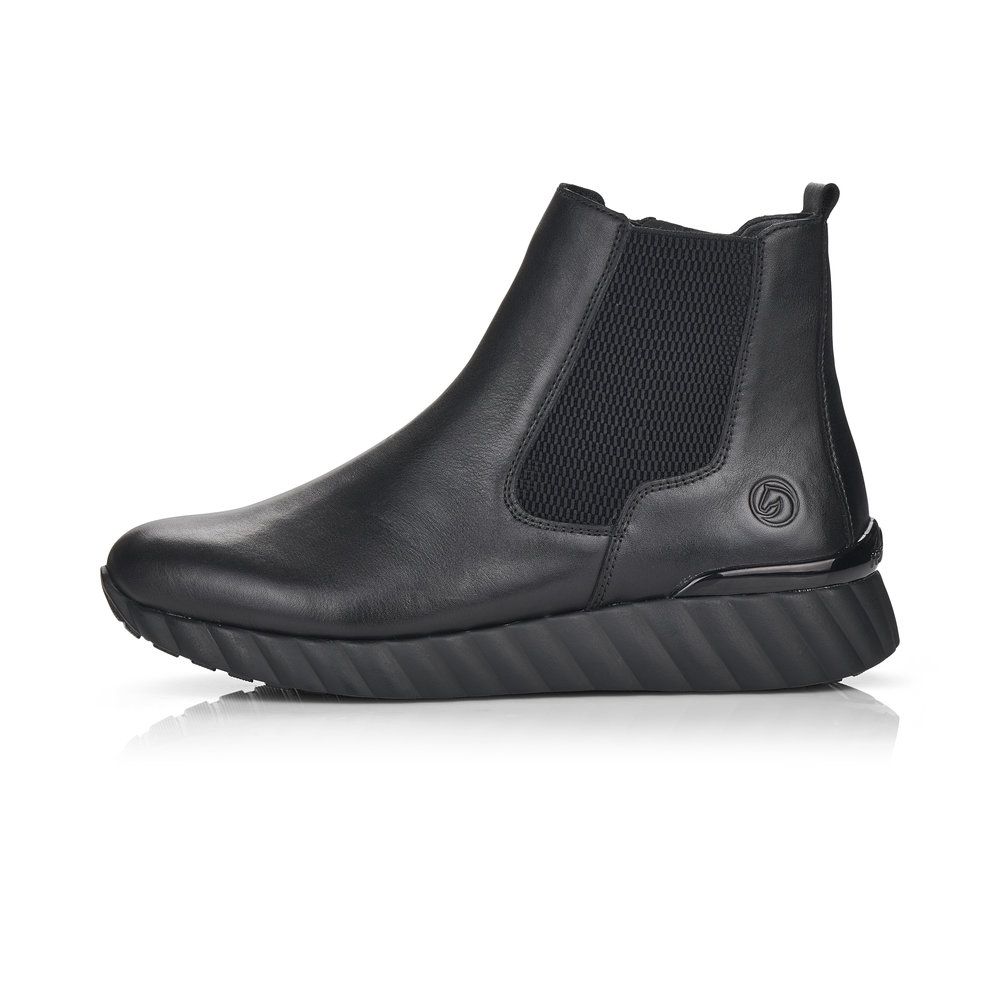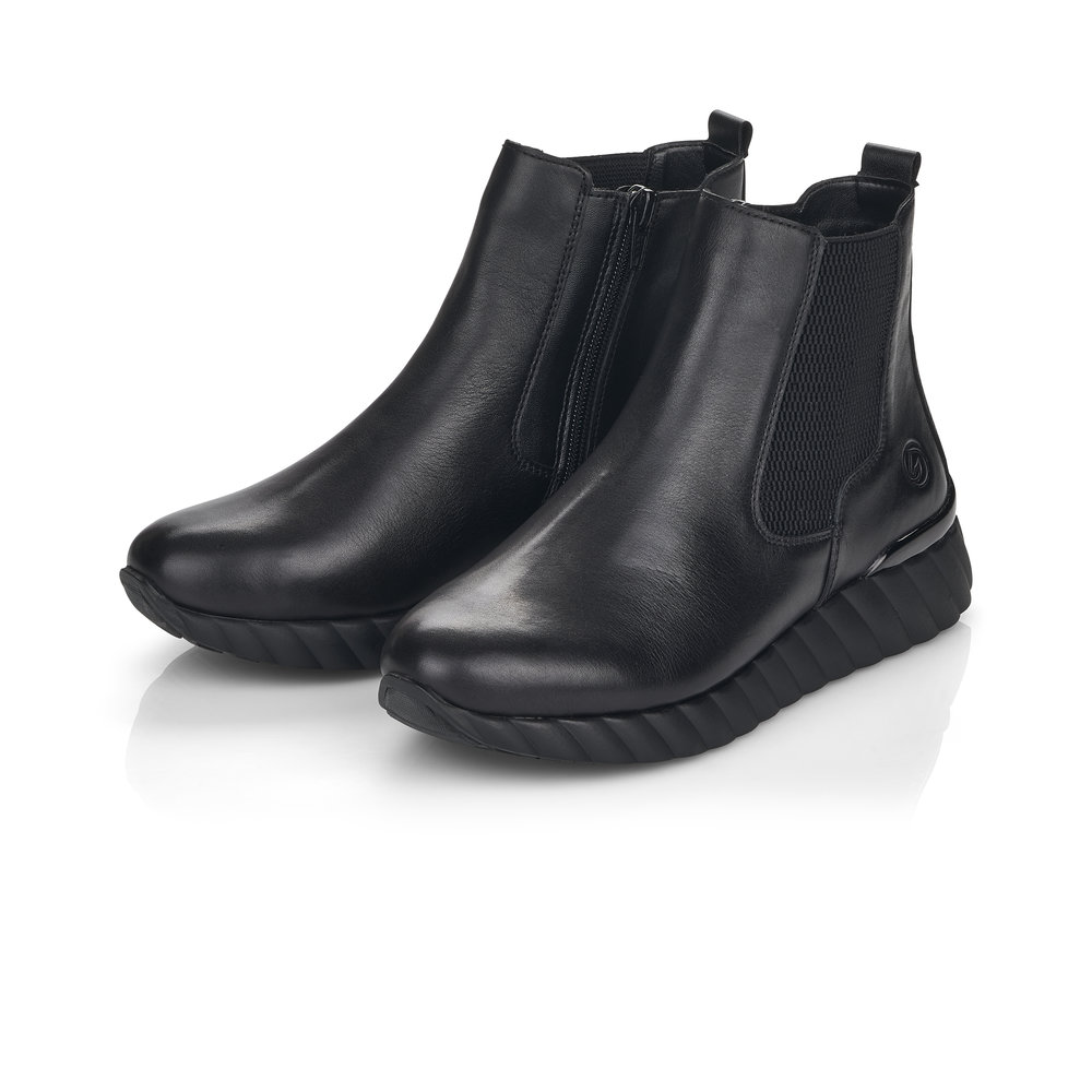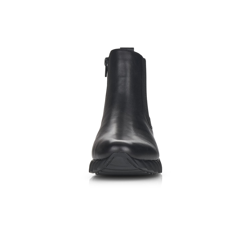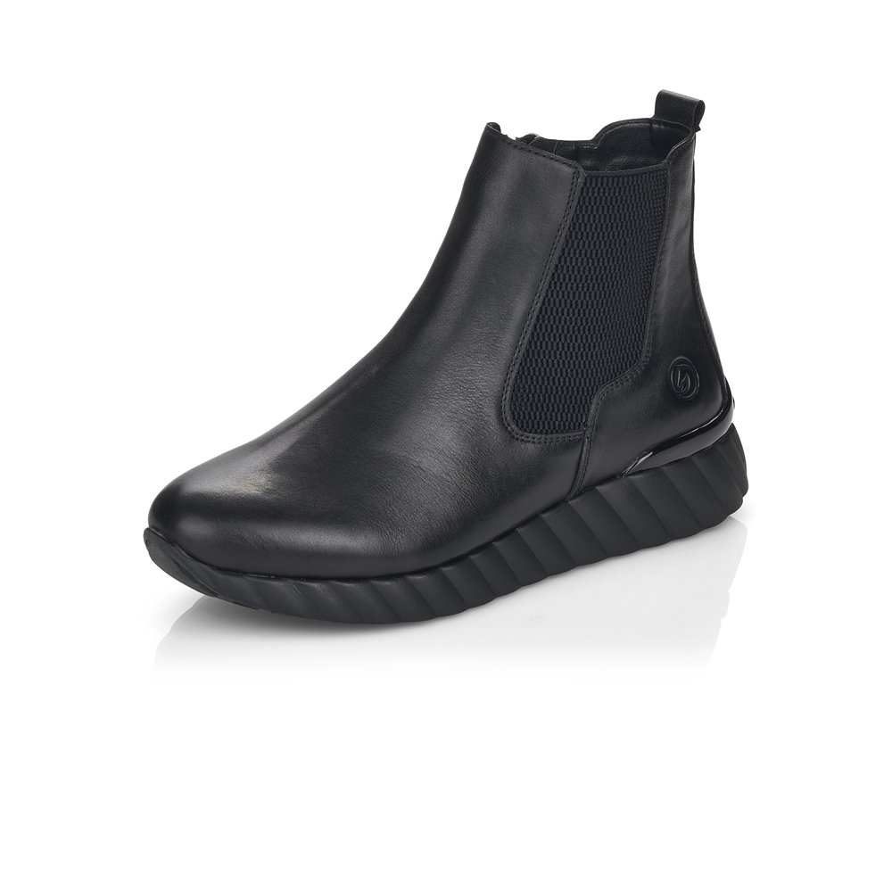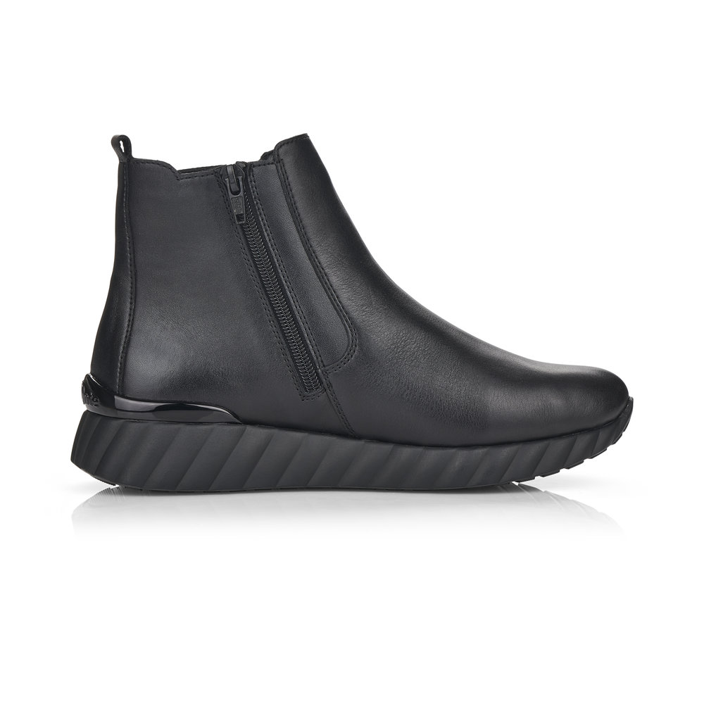 Dámská kotníková obuv vyrobena z hladké kůže značky REMONTE. Pro snadnější obouvání je z boku obuvi zip. Měkká vyjímatelná stélka je vyrobená z paměťové pěny. Obuv je lehce zateplená. Podešev je díky technologii Antistress lehká, flexibilní, absorbuje nárazy při došlapu a snadno se přizpůsobí každé noze. Obuv je vhodná pro každodenní nošení.