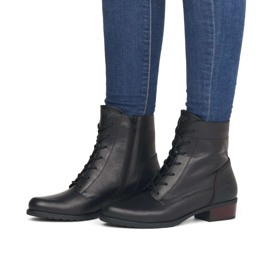 Dámská kotníková obuv značky REMONTE. Obuv REMONTE je vyšší řadou značky RIEKER, obuv se vyznačuje kvalitou použitých materiálů. Svrchním materiálem je kombinace syntetiky a kůže. Z boku obuvi funkční zip pro snadnější obouvání. Vyjímatelná stélka zajistí pohodlí a teplo po celý den.