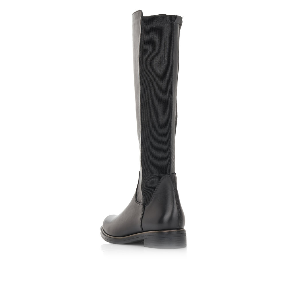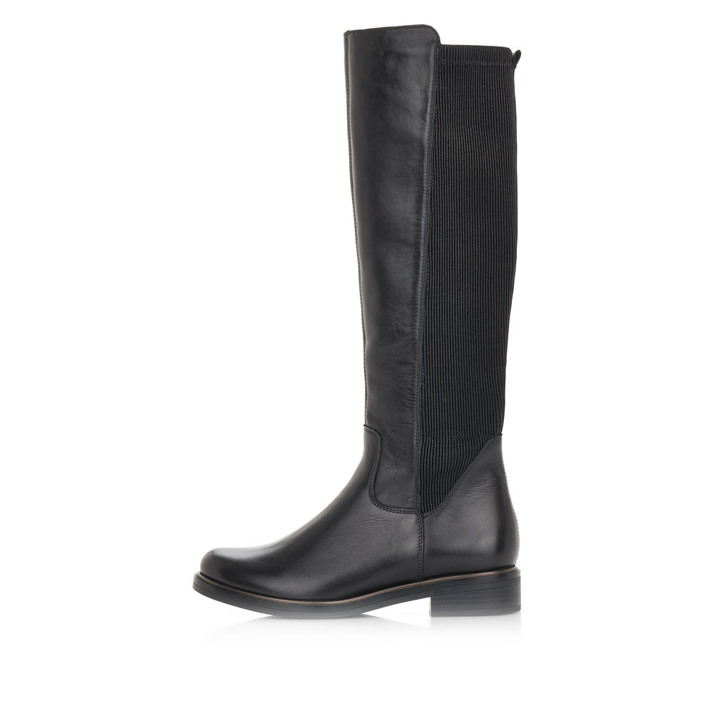 Obuv REMONTE – jedná se o vyšší řadu značky RIEKER. Tato obuv se vyznačuje kvalitou použitých materiálů. Tyto dámské kozačky se hodí k jakémukoliv Vašemu outfitu. Mají hladký povrch, užší kulatou špičku a v zadní části pružný materiál žabkového provedení, díky kterému se krásně boty přizpůsobí Vašemu lýtku. Pro jednodušší obutí naleznete z vnitřní strany po celé délce všitý funkční zip. Díky lehkému zateplení v nich můžete vyrazit za každého počasí. Stélku lze snadno vyjmout. Designově olemovaná podešev z kvalitního syntetického materiálu doladí vzhled obuvi. Kozačky budou skvěle vypadat s úzkými kalhotami, ale třeba i s dlouhými šaty.