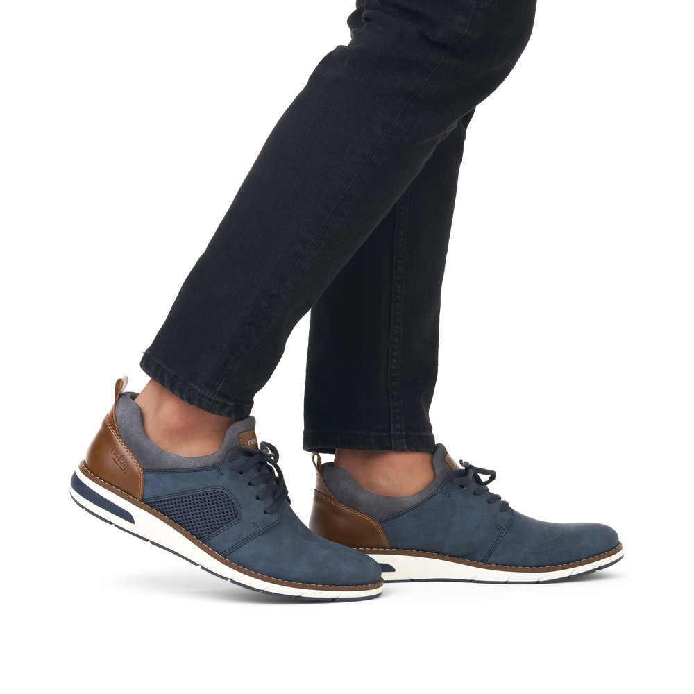 Pánské polobotky v modré barvě značky Rieker. Díky šněrování si obuv upravíte dle svých požadavků. Měkká stélka zajistí pohodlí po celý den.