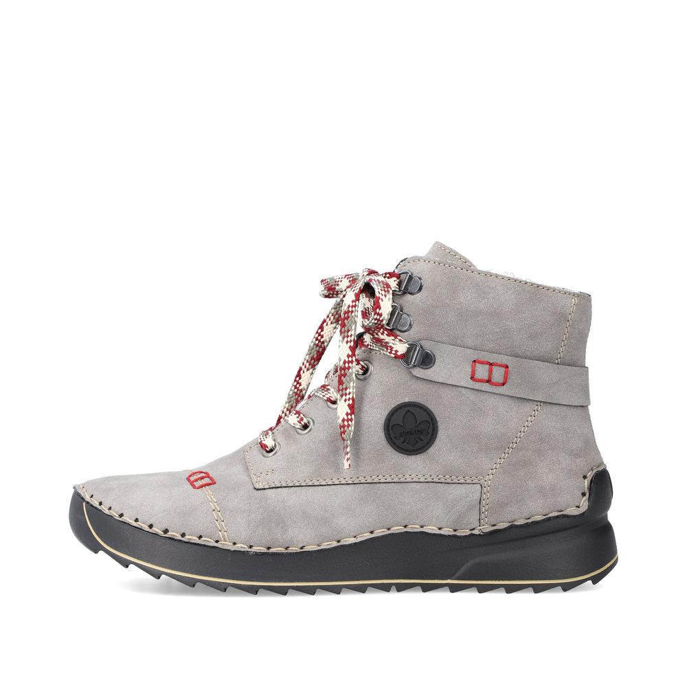 Dámská kotníková obuv v šedé barvě značky Rieker. Díky tkaničkám si obuv přizpůsobíte dle svých potřeb. Uvnitř hřejivá podšívka. Z boku obuvi zip pro snadnější obouvání. Podešev je díky technologii antistress lehká, flexibilní, abosrbuje nárazy při došlapu a snadno se přizpůsobí každé noze.