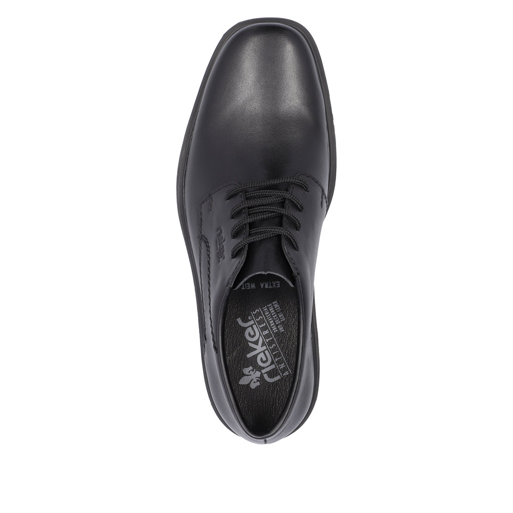 Pánské černé polobotky se šněrováním, mají měkčenou koženou stélku pro maximální komfort. Kožený svršek s jemným prošíváním a logem značky vytváří nadčasový vzhled. Obuv je lehká, flexibilní a prostorná. Absorbuje nárazy při chůzi. Je vhodná pro celodenní nošení.