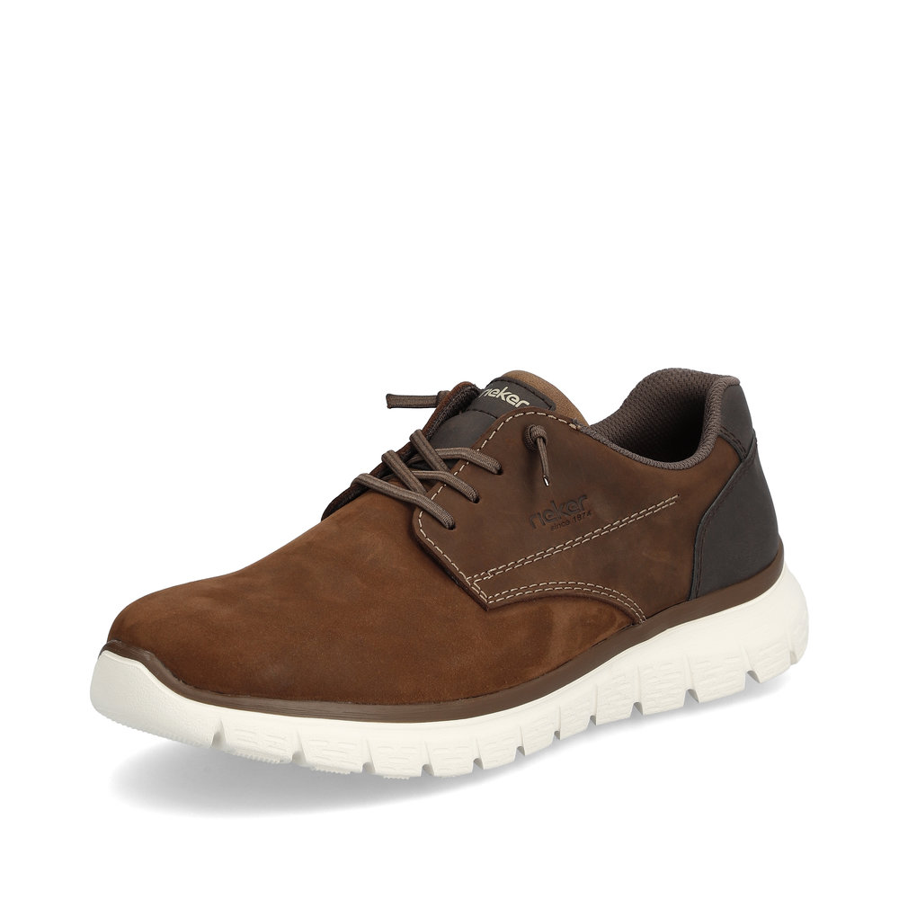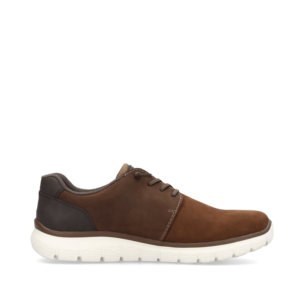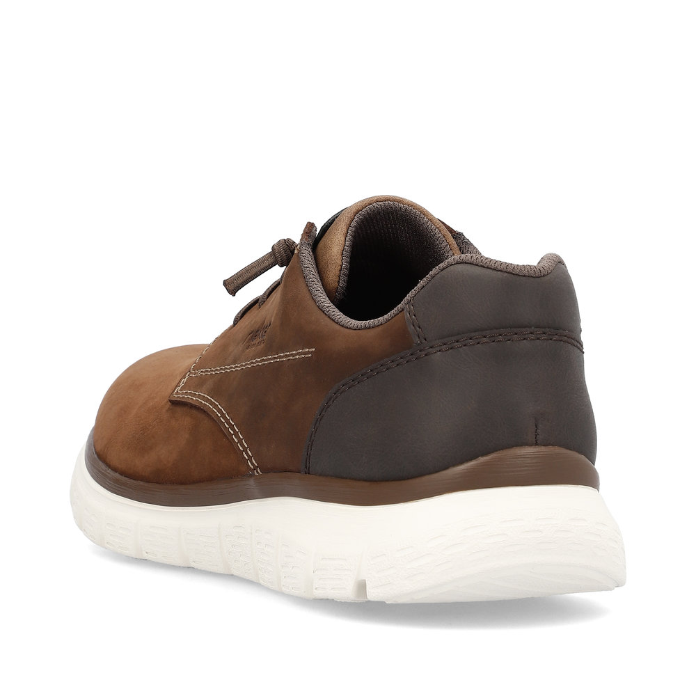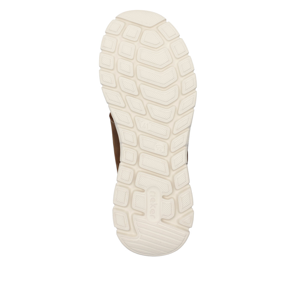 Pánské hnědé polobotky s kontrastní podešví značky Rieker. Obuv se bude lehce nazouvat díky šněrování na gumičku. Měkkou stélku oceníte zejména při celodenních pochůzkách. Tyto boty jsou vhodné pro muže, kteří hledají kombinaci elegantního vzhledu a optimálního pohodlí.