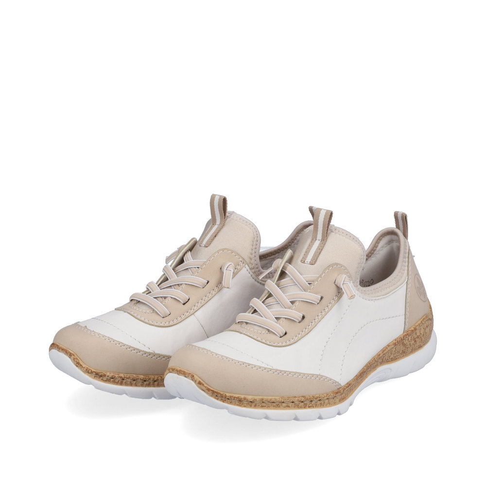 Dámská bílá teniska od značky Rieker. Kvalitní paměťová stélka Vám zaručí pohodlí a komfort při celodenním nošení. Podešev je díky technologii Antistress lehká, flexibilní, absorbuje nárazy při došlapu a snadno se přizpůsobí každé noze. Obuv je vhodná pro každodenní nošení.