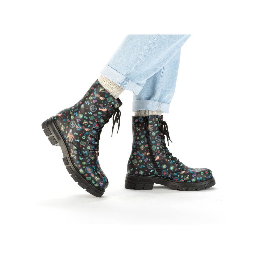 Dámská kotníková zimní obuv Rieker. Z boku obuvi funkční zip pro snadnější obouvání. Podešev s hrubším vzorkem zajistí stabilitu a tlumí nárazy při chůzi.