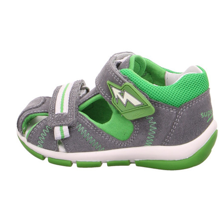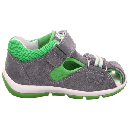 Chlapecké letní celokožené šedé sandály mají zapínání na suchý zip. Vnitřní stélka je vyrobena z jemné kůže. Boty jsou lehké, ohebné, s pevnou patou a mají krytou špičku. Jsou vhodné pro střední a štíhlé nožky.